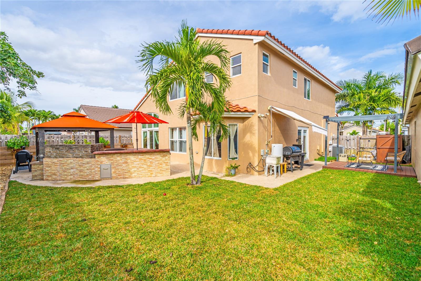 Discover comfort and style in this inviting 4-bed, 2.5-bath, 2-story home nestled in Pembroke Pines. A thoughtfully designed floor plan offers spacious living and dining areas, perfect for both relaxation and entertaining. Impact doors and windows throughout. Outside, find a backyard oasis with a grilling area and covered sitting space, ideal for summer gatherings. The master suite is a private retreat, and three additional bedrooms provide ample space for family and guests. Recently replaced roof in 2020 and security cameras for added peace of mind. Conveniently located near supermarkets, highways, shopping centers, and A-rated schools. This home seamlessly combines modern living with outdoor charm. Don't miss the chance to call this Pembroke Pines residence your own!