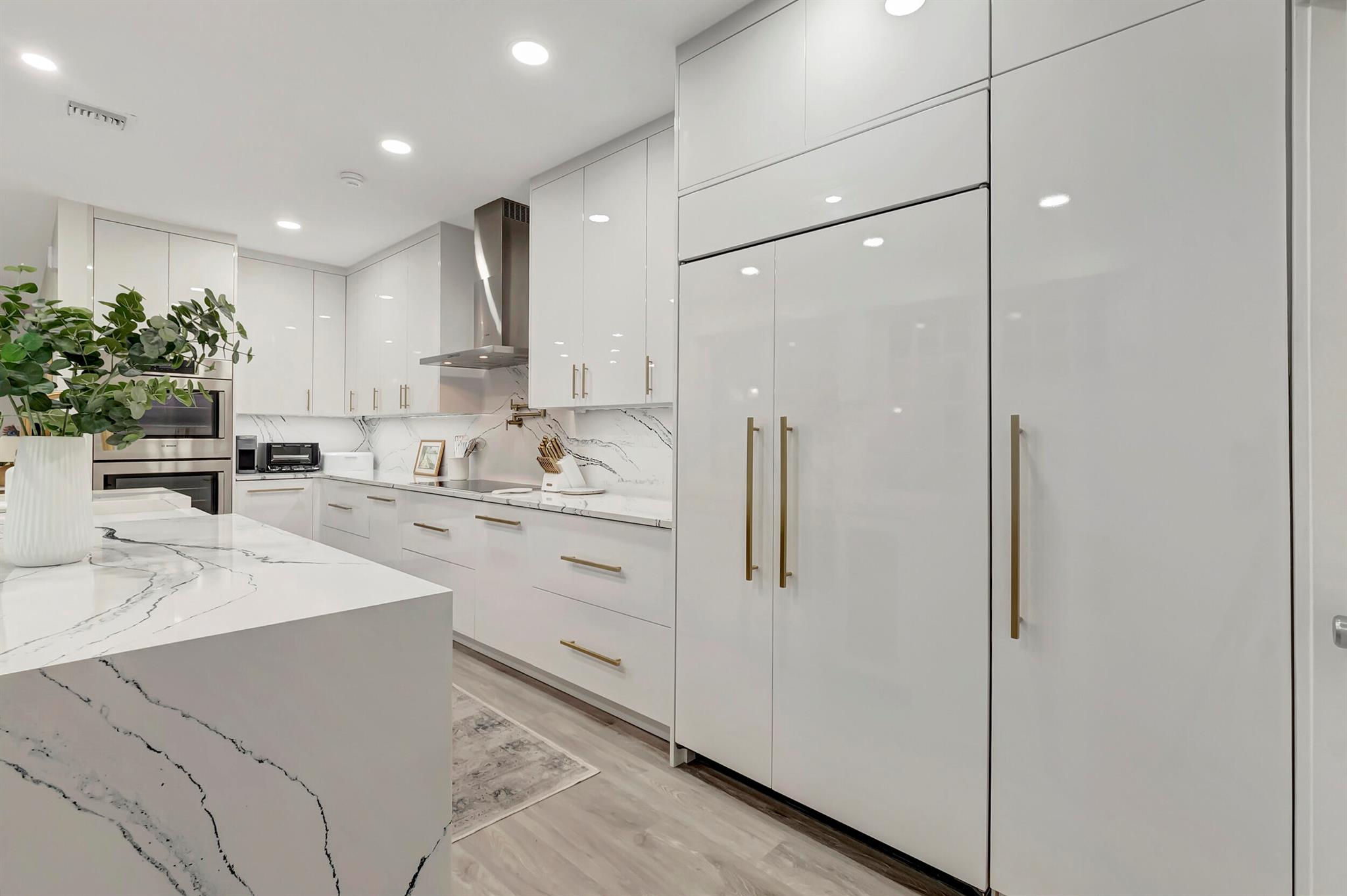 Beautiful water view home in a quiet, mid-block location. That this is largest model in Cambridge with 3.5 baths 1.5 baths on first floor. The home was fully renovated in 2022. New Custom kitchen redone with top-of-the-line finishes & equipment. Cabinetry with 48'' uppers, quartz farmhouse sink, built in Sub-Zero refrigerator & freezer, Bosch hood & double wall oven, Viking dishwasher, Jenn-Air induction cooktop, pot filler, Uline wine & beverage refrigerator, & Sharp microwave drawer. Cambria Quartz countertops & backsplash. Waterfall island seats 5. Luxury Vinyl Plank flooring in living areas. All new baths with Toto toilets, Kohler sinks, Porcelanosa & Kohler faucets & fixtures, Quartz countertops, frameless shower doors, new quiet fans. Thermostatic temperature controls in shower.