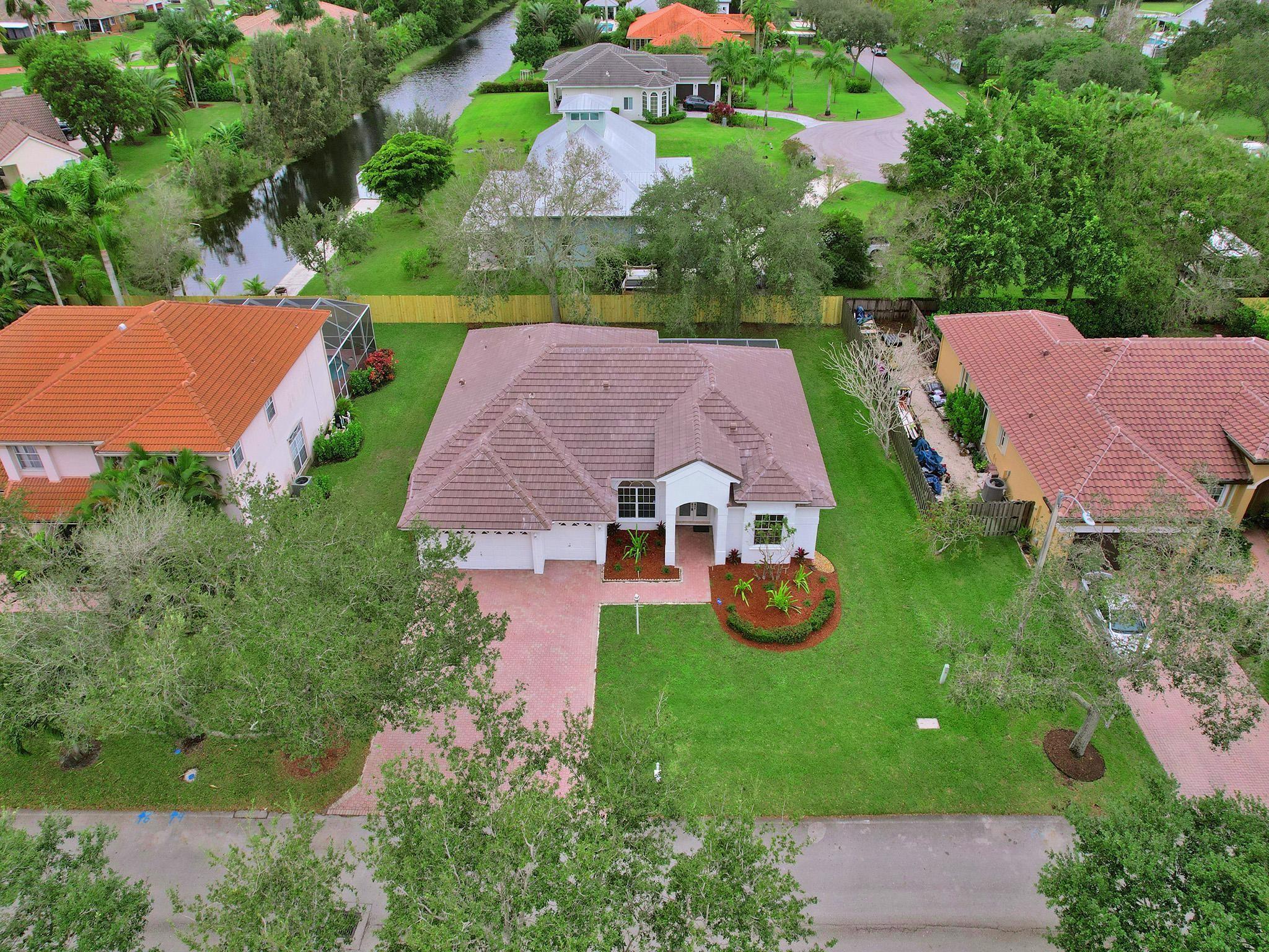 Brand New tile Roof recently completed in October 2023. Dramatic foyer entry with volume ceilings, formal living and dining room, big eat-in kitchen and family room. Large layout with split plan featuring 3 Bedrooms 2 Baths and 3 car garage on oversized 91 foot wide lot that backs to SW Ranches. Similar interior to the 4 Bedroom 3 Bath model w 3 car garage. Just painted inside & out, new carpet in bedrooms, newer 2019 AC. Master Suite with walk-in closet and generous sized bath, Bedrooms 2 & 3 both good sized. Big living areas, covered & screened patio, huge yard with plenty of room for a pool & playground. Great gated community with low HOA dues, all lots are a minimum of 90 feet wide. Great schools, A rated elementary school on the corner, close to shopping and easy access to I-75.