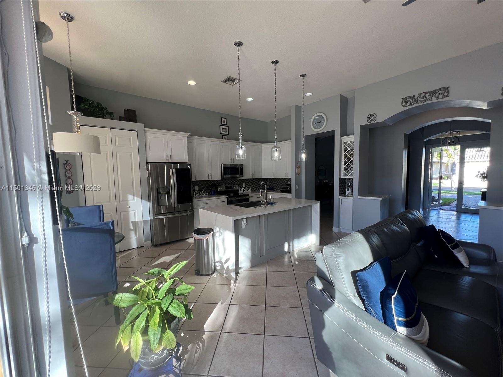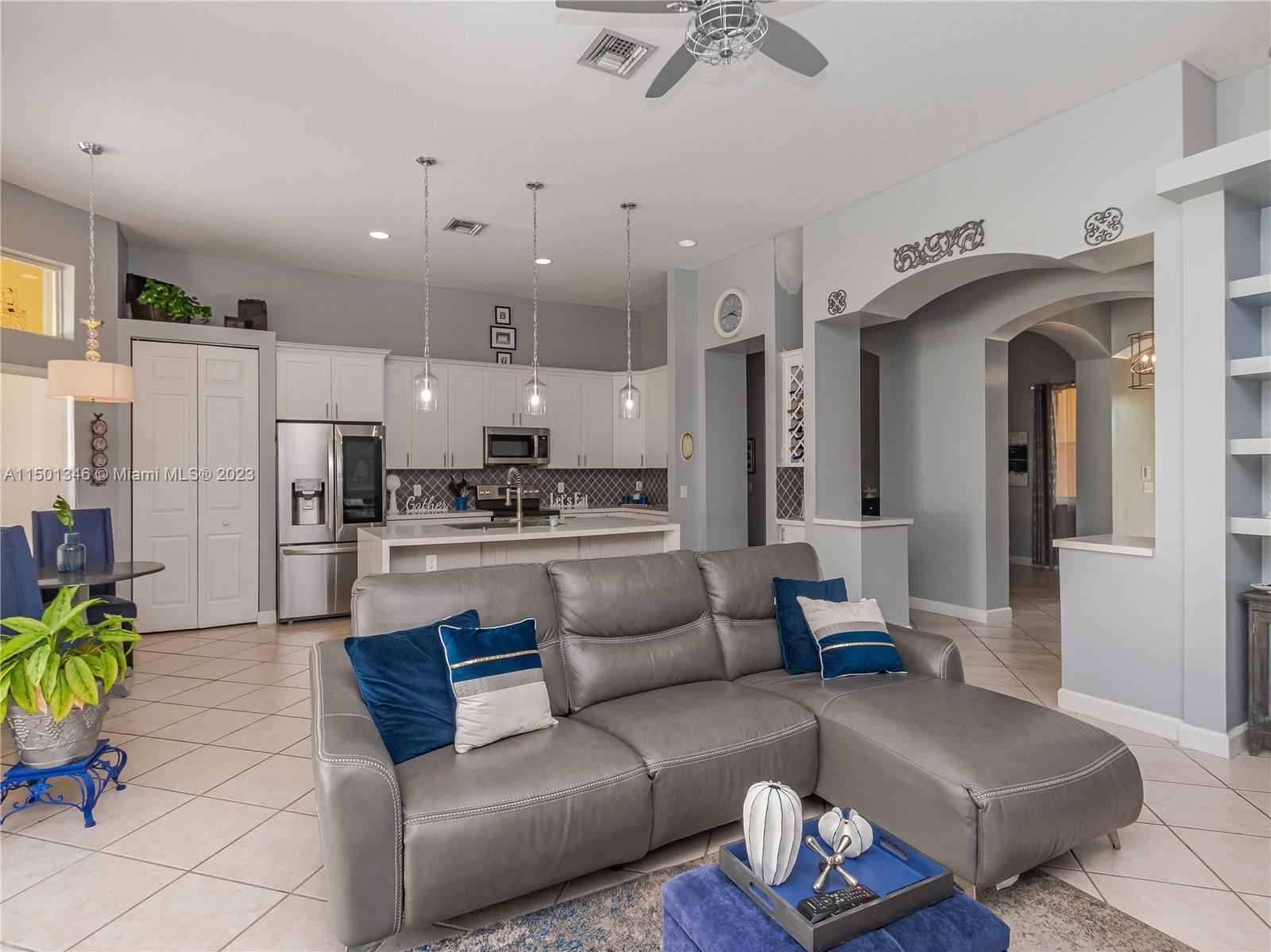 4 BDRM, 3 BATHS, THEATRE ROOM, 2 CAR GAR ONE STORY HOME W/ GREAT OPEN FLOOR PLAN. BUILT IN 2001. RECENTLY REMODELED KITCHEN W/WATERFALL QUARTZ ISLAND. APPLIANCES LESS THAN 2 YRS, BREAKFAST AREA, LG FAM RM, WORK STATION AREA, 11' CEILINGS, TILE FLOORS THROUGHOUT, OVERSIZE MASTER BEDROOM W/ADDTL SITTING AREA & LG WALK IN CLOSET. PREVIOUSLY REMODELED BATHS, A/C (2021), IMPACT DOUBLE ENTRY GLASS DOORS,FARMHOUSE SINK IN LAUNDRY ROOM W/FRONT LOAD WASHER & DRYER. ACCORDIAN SHUTTERS, 65X13 CEMENT PATIO AREA PERFECT FOR ENTERTAINING, CIRCULAR DRIVEWAY, GUARD GATED COMMUNITY W/GYM, TENNIS CTS, VOLLEYBALL,BASKETBALL, PLAYGROUND, OLYMPIC SIZE POOL, KIDS POOL & MORE.