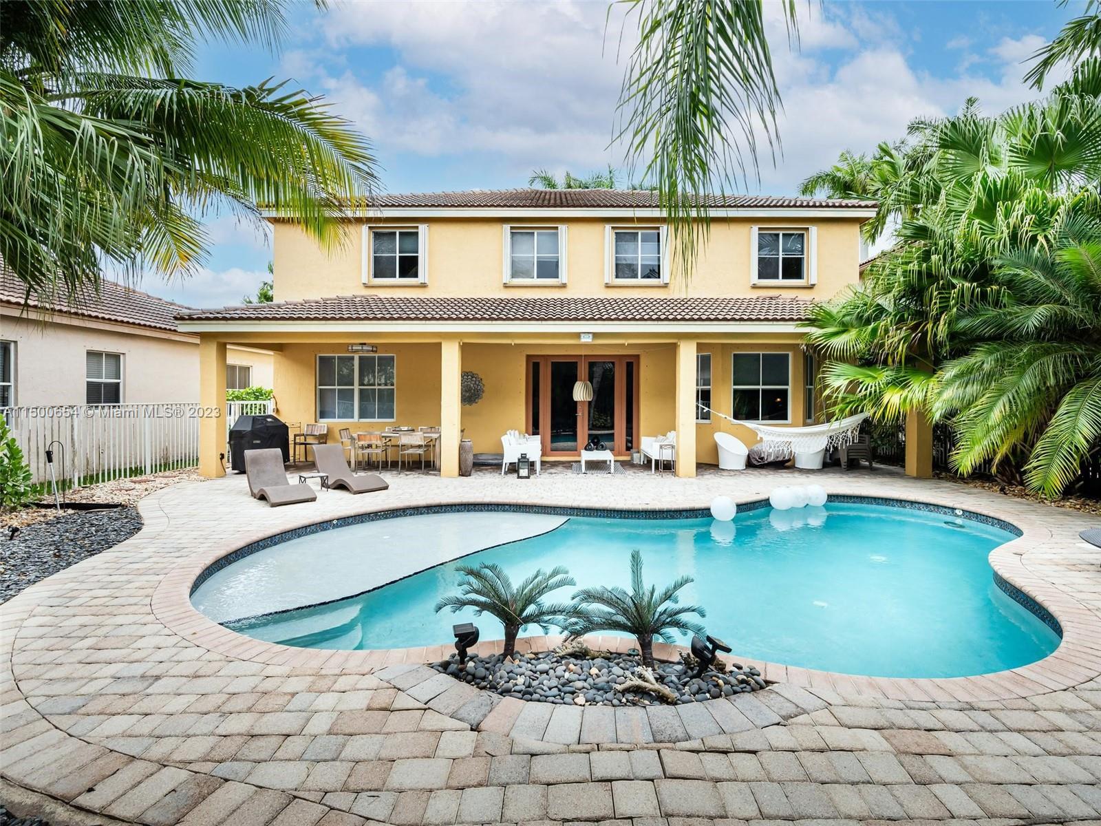 Welcome to this tastefully renovated home featuring five-bedroom, four-bathroom in the sought-after Savanna, Weston. This two-story boasts porcelain floors downstairs and laminated floors upstairs. Spacious master suite with a well-appointed ensuite and custom cabinetry in all the closets. The heart of the home is the updated kitchen featuring a large island, granite countertops, stainless steel appliances and contemporary cabinetry integrated into a spacious family room. Step outside to discover a saline pool surrounded by lush landscaping. Two-car garage & accordion shutters. New floors and baths remodeled (2019), AC ducts replaced (2019). The proximity to top-rated schools is a plus. This gated community offers resort-style amenities and security patrol 24/7. A Delightful living!