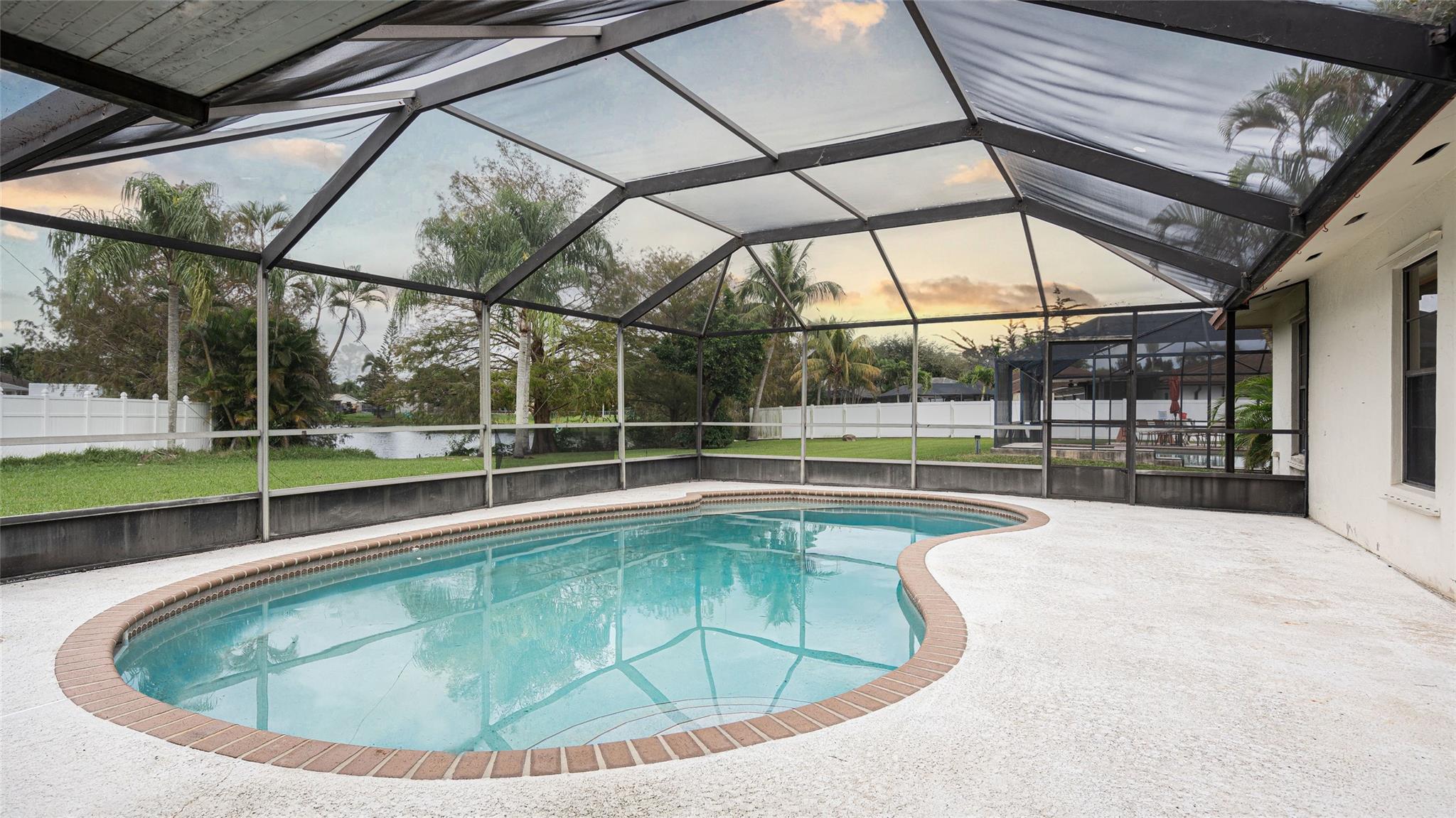 A MUST SEE! Highly desirable neighborhood with NO HOA, spacious 3/2 with 2 car garage & storm shutters. Waterfront, Pool home on over 11,000 sq ft. double lot. Open floor plan with huge backyard for sports & fabulous family entertaining, dining on a grand scale with enough room for an RV. Pet friendly community. Fenced on two sides for privacy. Situated in a quiet and majestic setting overlooking the pool, spacious patio and tranquil lake. With some TLC this sought-after location can be the home dreams are made of. Make your offer for this wonderful paradise to come home to daily. No appliances, Vacant, move in ready, professionally cleaned. Incredible potential for Air BnB with excellent income possibilities. Near great schools, parks, shopping & dining. All major highways minutes away.