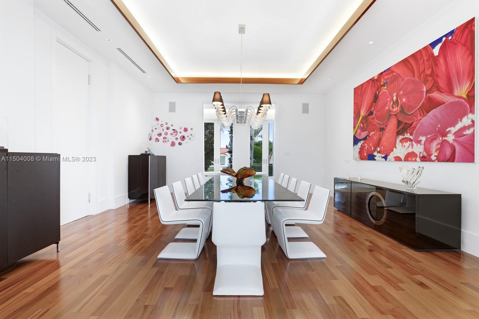 Situated at 1470 Daytonia Rd, this property boasts a significant land area totaling 33,750 square feet. Within this estate lies over 14,000 square feet of livable space. Comprising seven bedrooms, two dens, and eight and a half bathrooms. Also, the property features an impressive 225 feet of linear water frontage, providing a picturesque view and access to the water. The amenities include a pool, gym, spa, movie room, and two docks. The property is equipped with state-of-the-art features including a Crestron system, Miele appliances, an industrial fridge and freezer, as well as a subzero fridge. With an asking price of $29,999,999, this residence serves as an extraordinary opportunity.