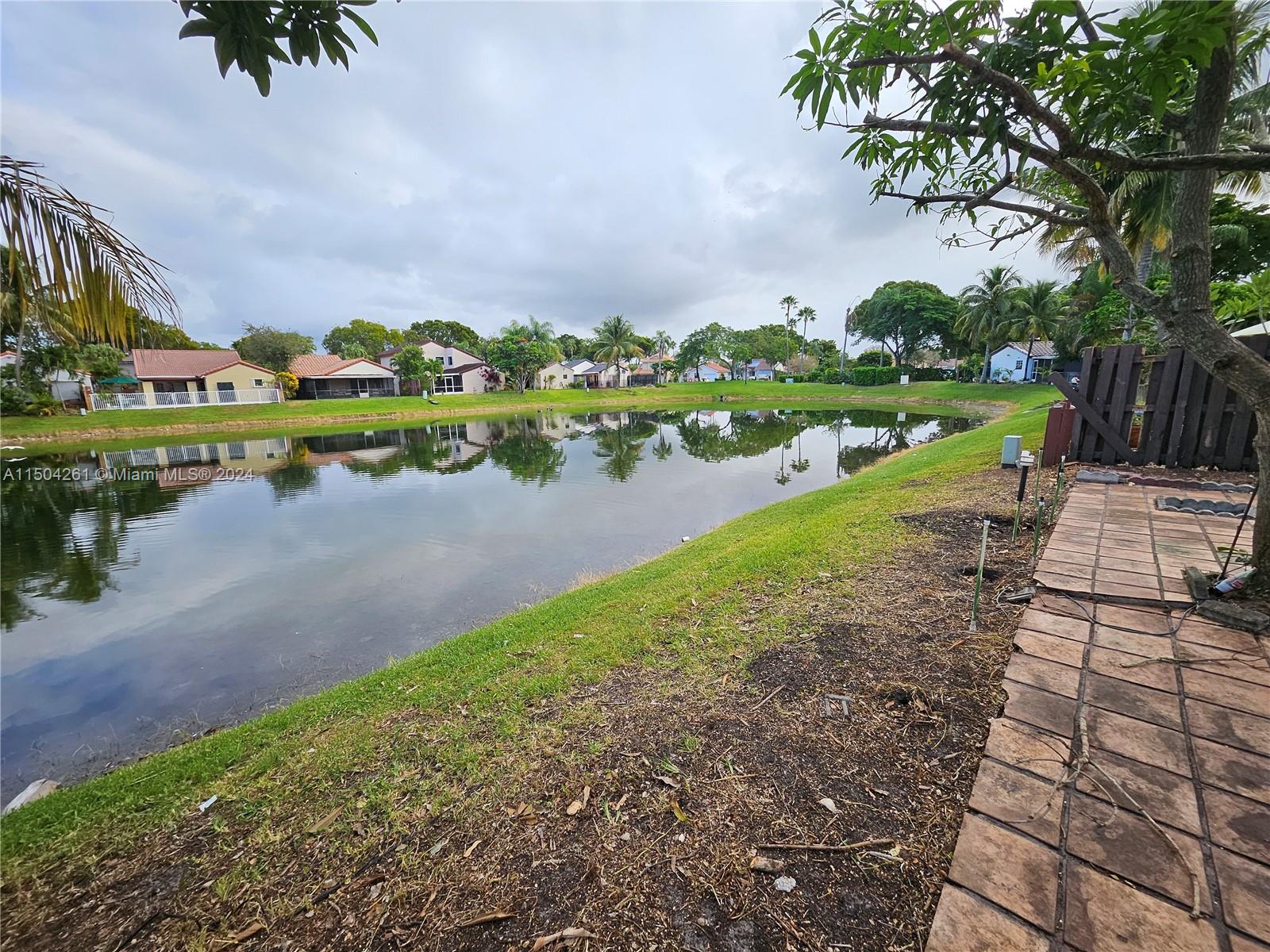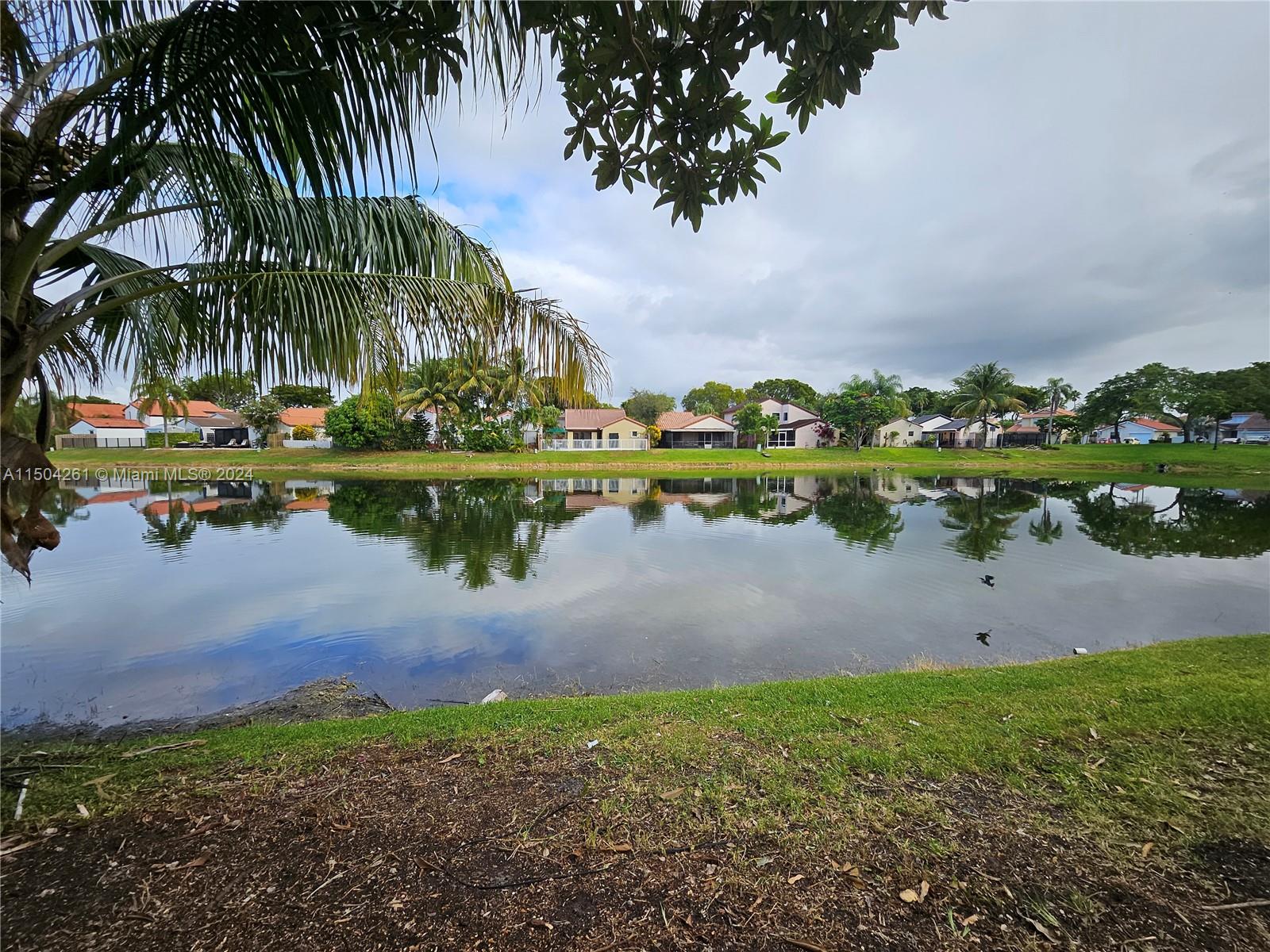 enjoy this peaceful lake front view in quiet neighborhood , featuring 2 bedrooms , 2 baths, hurricane shutters, garage and extra parking, community pool, tennis courts, gym, gated community. one parking space garage available and 2 extra carport spaces in front of the house.