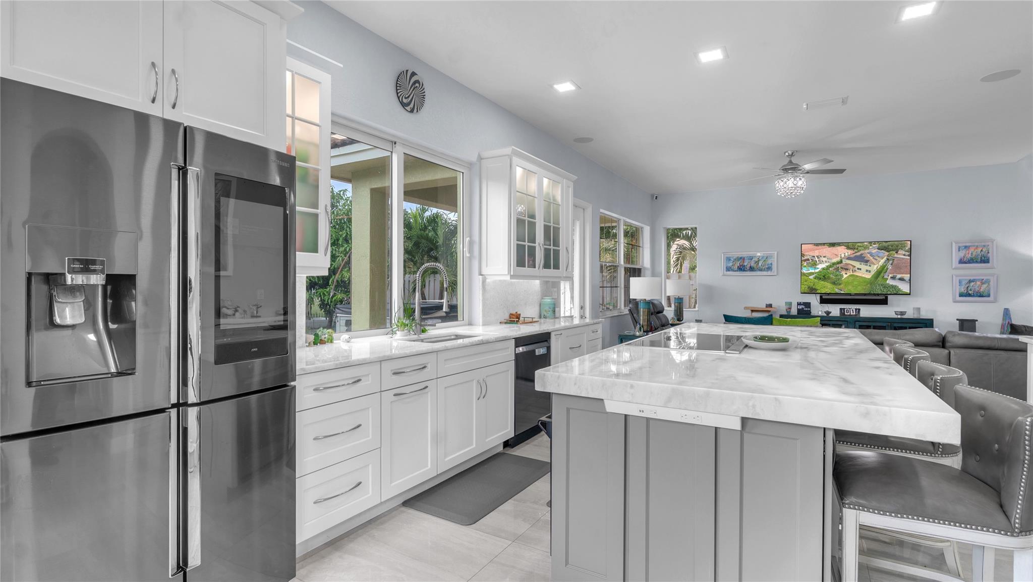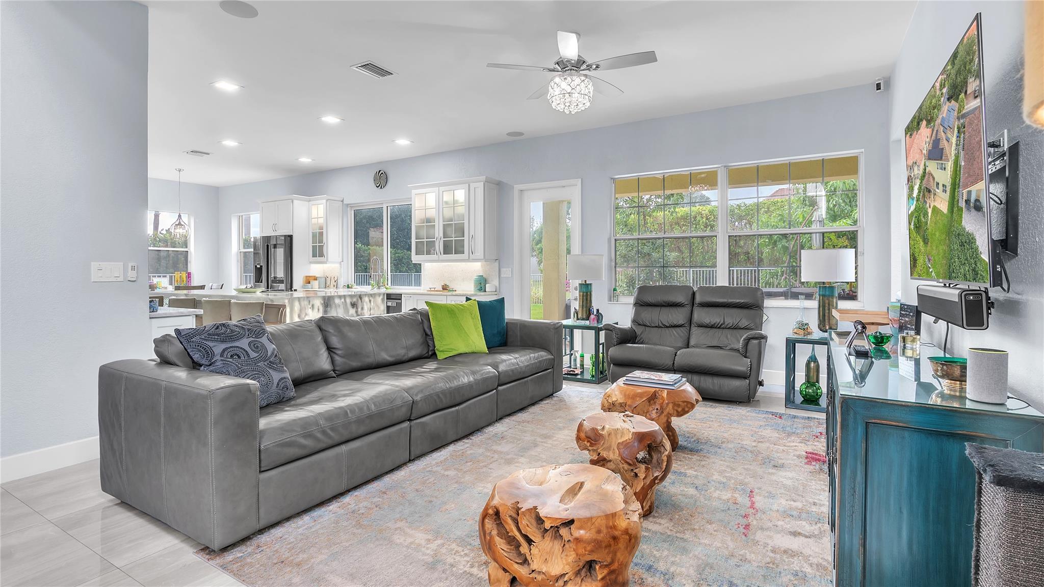 Step into the grandeur of the largest home in the exclusive Walnut Creek gated community. State-of-the-art kitchen with LED backlit counters & Samsung Smart Fridge, double pantry w/ pull-outs + so much more! The expansive layout includes 5 bdrms, 3.5 baths, high ceilings, formal dining, family room + loft w/ study. Spa-like bathrooms complete with high-end tiles, double vanities + master suite with jacuzzi heated soak tub. Fully powered by solar panels, smart home features controlled via Alexa. Second master bedroom downstairs + converted garage space, perfect for various uses. Beautifully landscaped backyard, offering partial lake views. Association covers Gated and maned security+ lawn, cable, hi-speed fiber optic internet + clubhouse, pool, tennis courts & more resort style amenities.