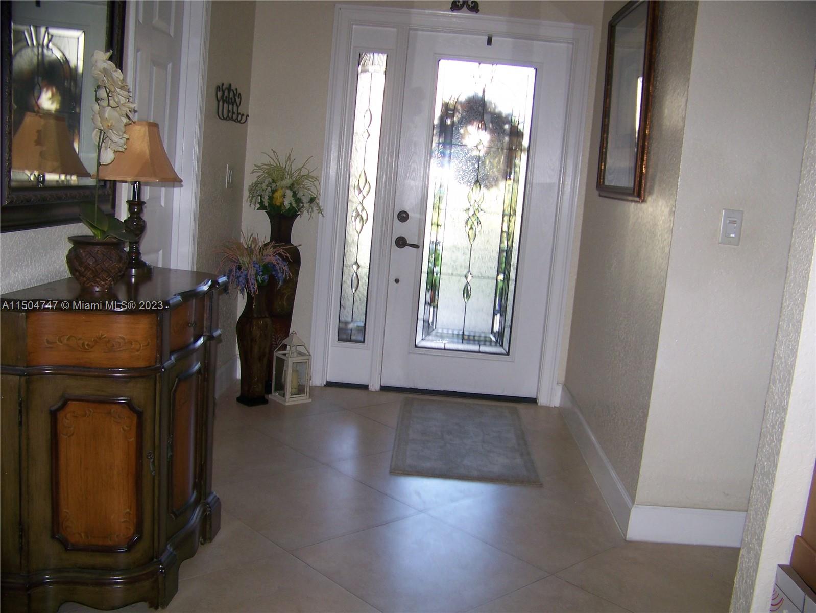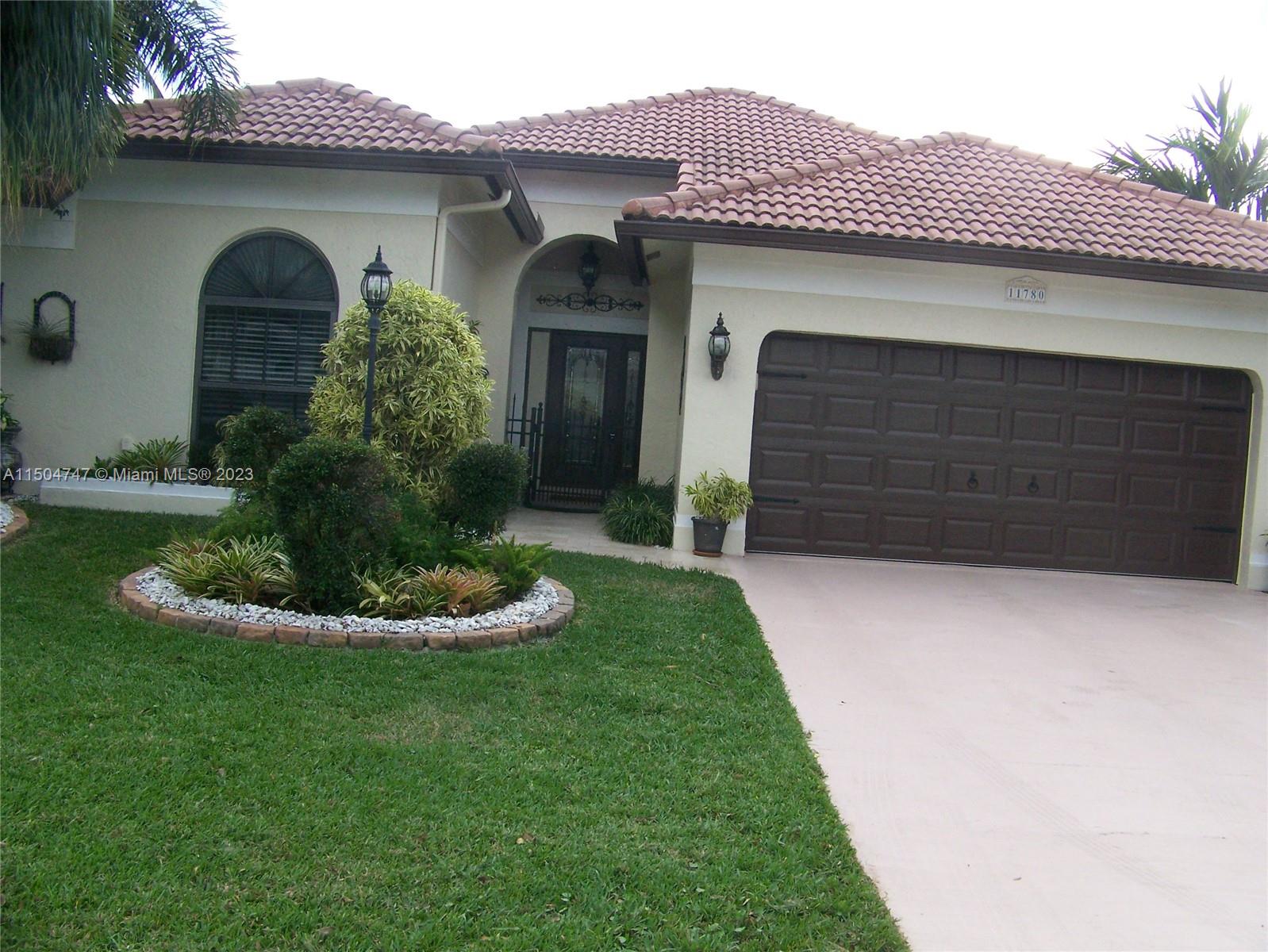 Home is very spacious located on a cul-de-sac street, lakefront lot overlooking winding lake with a desired north/south exposure. Neutral colors, texture walls, large porcelain tiles with 5 1/2 in. baseboards and crown molding, large primary bedroom with 2 closets one walk in, bedrooms 2 & 3 also have walk in closets, updated kitchen seamlessly flows into a cozy family room, large covered screen lanai and extended back patio with a trellis to enjoy magnificent lake views, indoor laundry area, impact windows, storm impact garage door and hurricane resistant rated glass entry door. A/C unit replaced in April 2023. Prime location for all your shopping needs, medical care, in Cooper City which has the best schools in the district K-12. Move in ready.