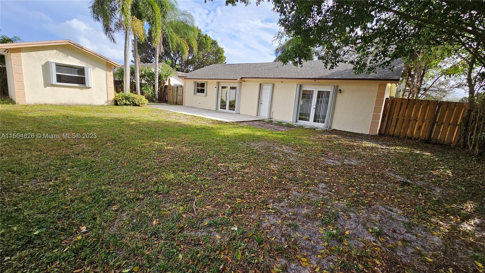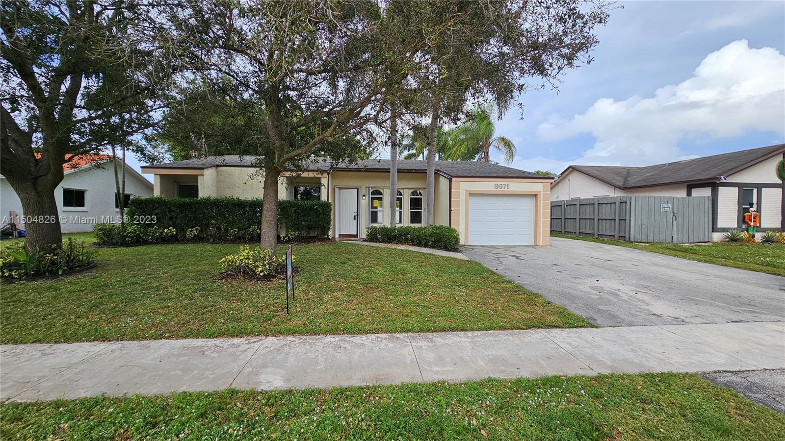 Awesome single family residence in Pembroke Pines! 3 bedrooms and 2 baths. Spacious living areas with vaulted ceilings. Tastefully updated throughout. Newer kitchen cabinets, granite counters and appliances. Newly installed roof in 2023. New garage door. Large outdoor patio ideal for entertaining. Separate utility shed that can be used as a work shop or an office. Large back yard with plenty of room for a custom swimming pool. Generous side entrance access with ample space for parking a large RV or boat. No HOA! Completely fenced. Centrally located in a quite and fully established neighborhood.