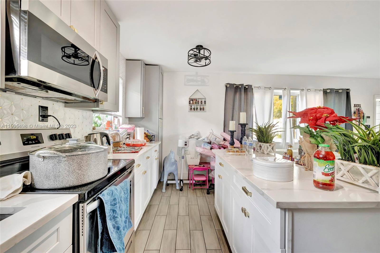 Absolutely stunning! This fully renovated 2-bed, 1-bath gem is a dream come true for a first-time homebuyer or savvy investor. Enjoy peace of mind with NEW plumbing, electrical, roof, A/C, appliances and water heater — no worries, just pure comfort! Step into the heart of the home—a dazzling open kitchen boasting brand-new cabinetry, sleek stainless steel appliances, and elegant quartz countertops - perfect for hosting gatherings and creating culinary masterpieces. The renovated bathroom is a true retreat, featuring a stylish walk-in shower that adds a touch of luxury to your daily routine. This property does not disappoint!