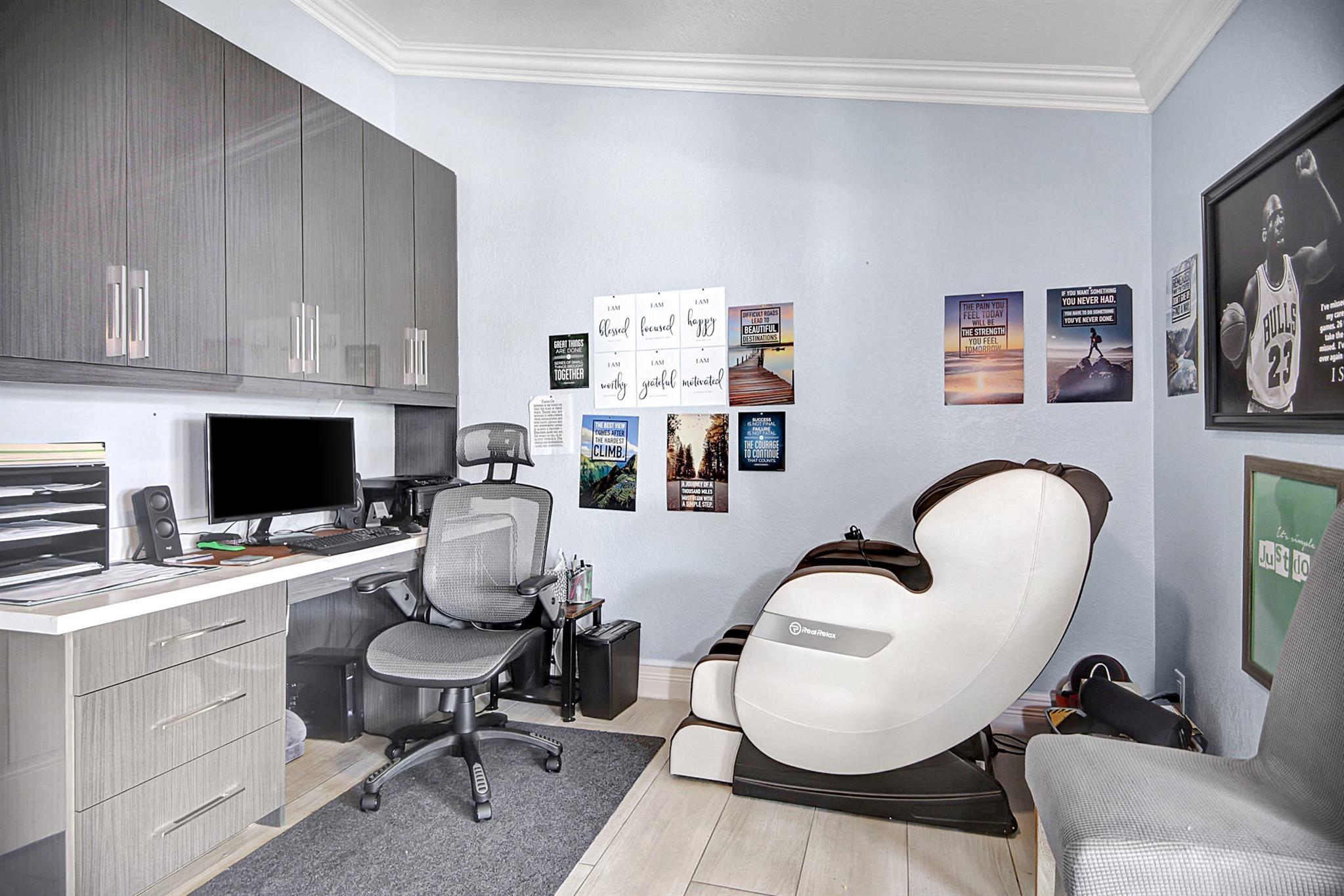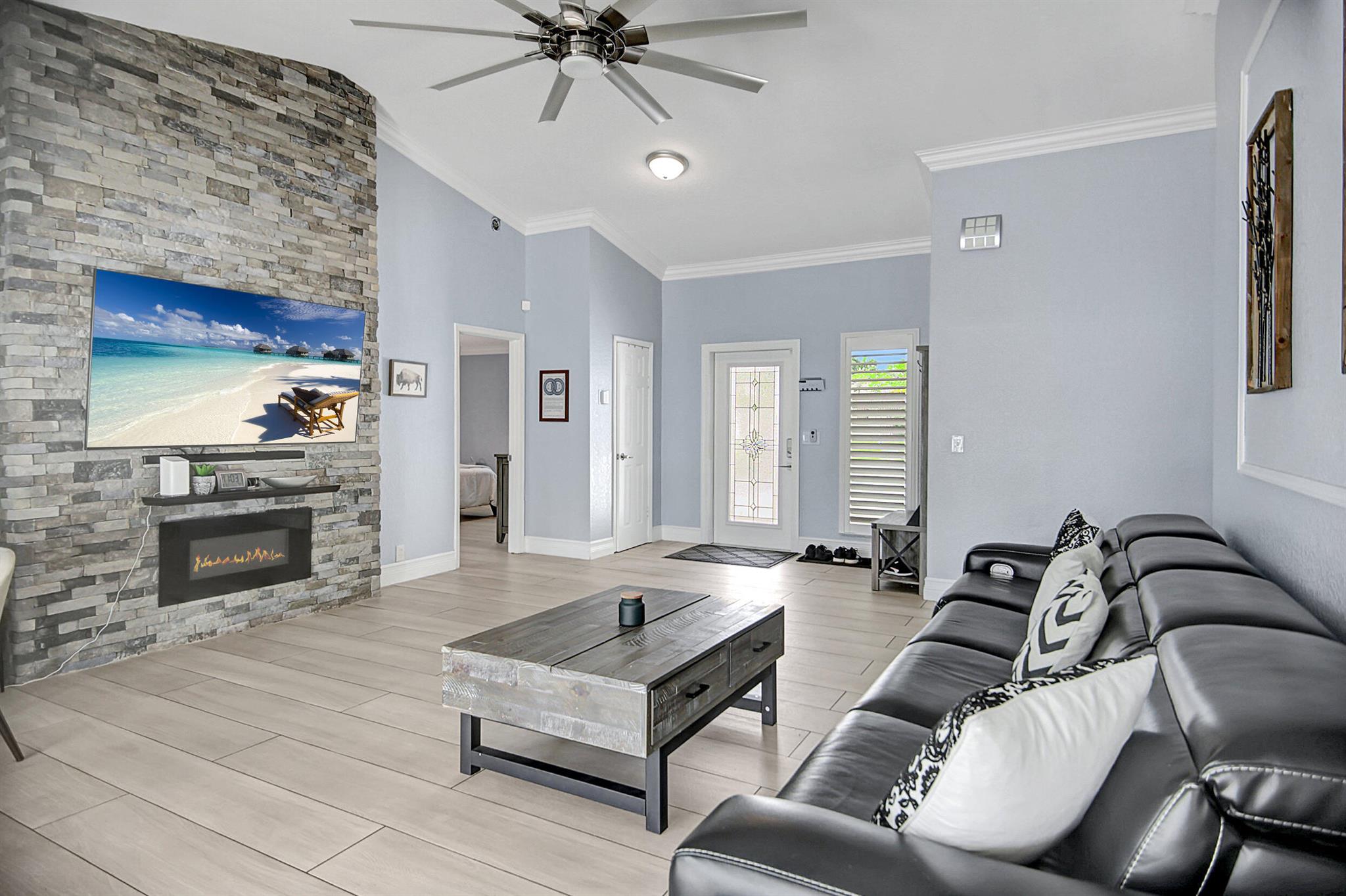 Welcome to the epitome of luxury living! A meticulously maintained 1990 block home nestled in the prestigious Hawkes Bluff neighborhood. With 3 full bedrooms, a formal office, and a formal dining room, this 2,439 gross sq ft residence offers a perfect fusion of timeless elegance and modern amenities. Situated on over a quarter acre, this home boasts a host of features that redefine comfort and sophistication. From the moment you arrive, the curb appeal is enhanced by the allure of all impact windows, impact doors, and a skylight, creating a secure and naturally lit environment. Step inside, and the luxury continues with all-tile flooring, plantation shutters, and crown & picture frame molding throughout. The whole house has been freshly painted creating a pristine canvas for you to make