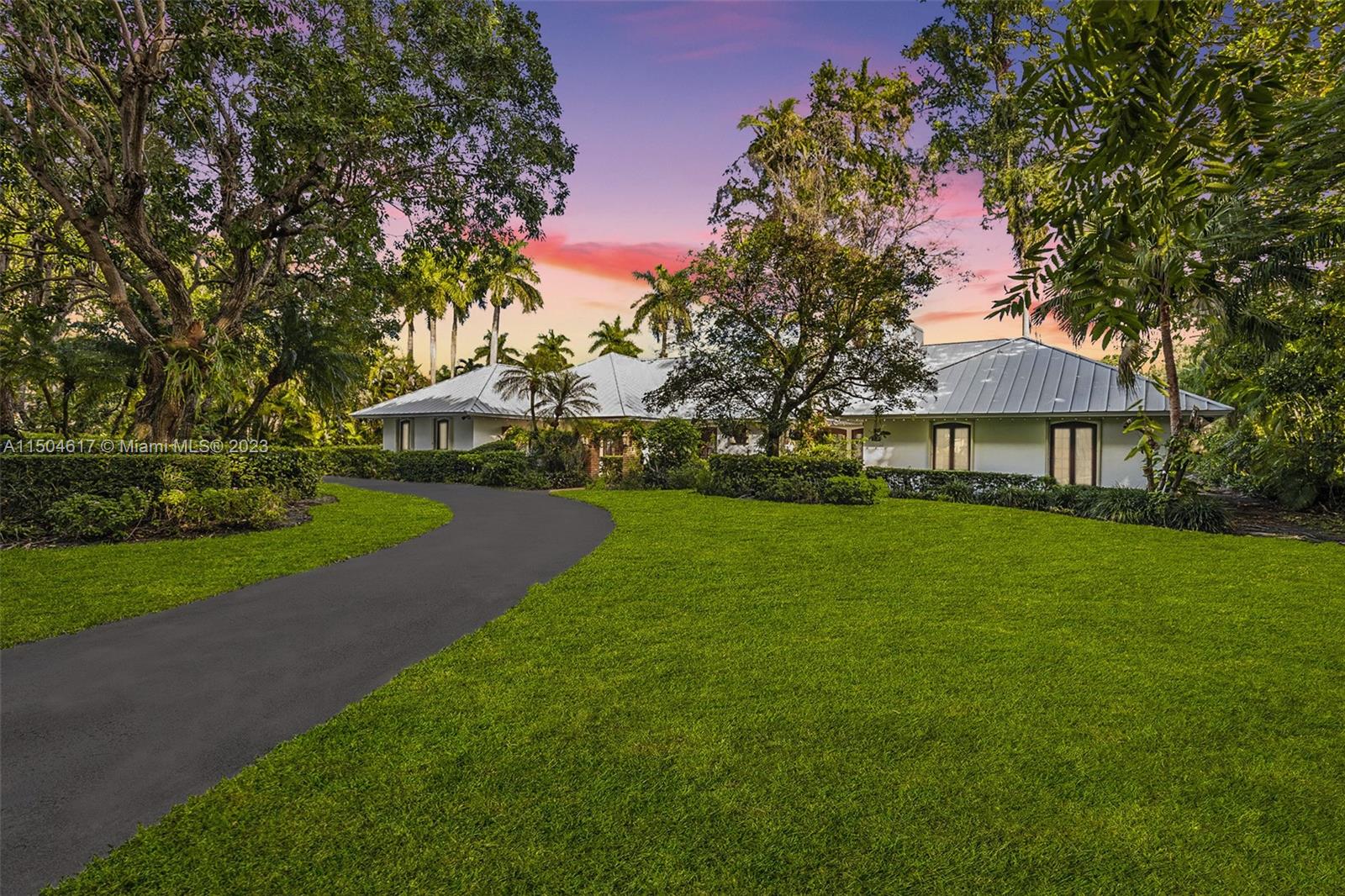 This exclusive North Pinecrest gated residence awaits! Nestled on nearly an acre of lush tropical landscape, featuring an array of fruit bearing trees (papaya, mango, avocado, noni, banana, etc.), screened in patio with an oversized pool, expansive covered terrace, tiki hut, basketball, and tennis court. Come inside and enjoy comfortable living spaces, vaulted tongue and groove ceiling, a fully equipped bar, double sided brick fireplace, and French doors leading to alfresco spaces, perfect for entertaining. Retreat back to your spacious primary bedroom with his/her bathrooms and a sauna. Enjoy privacy and peace of mind with a metal roof, a new septic tank and a whole house generator. This home has been meticulously cared for ensuring its status as a gem in the esteemed Pinecrest community.