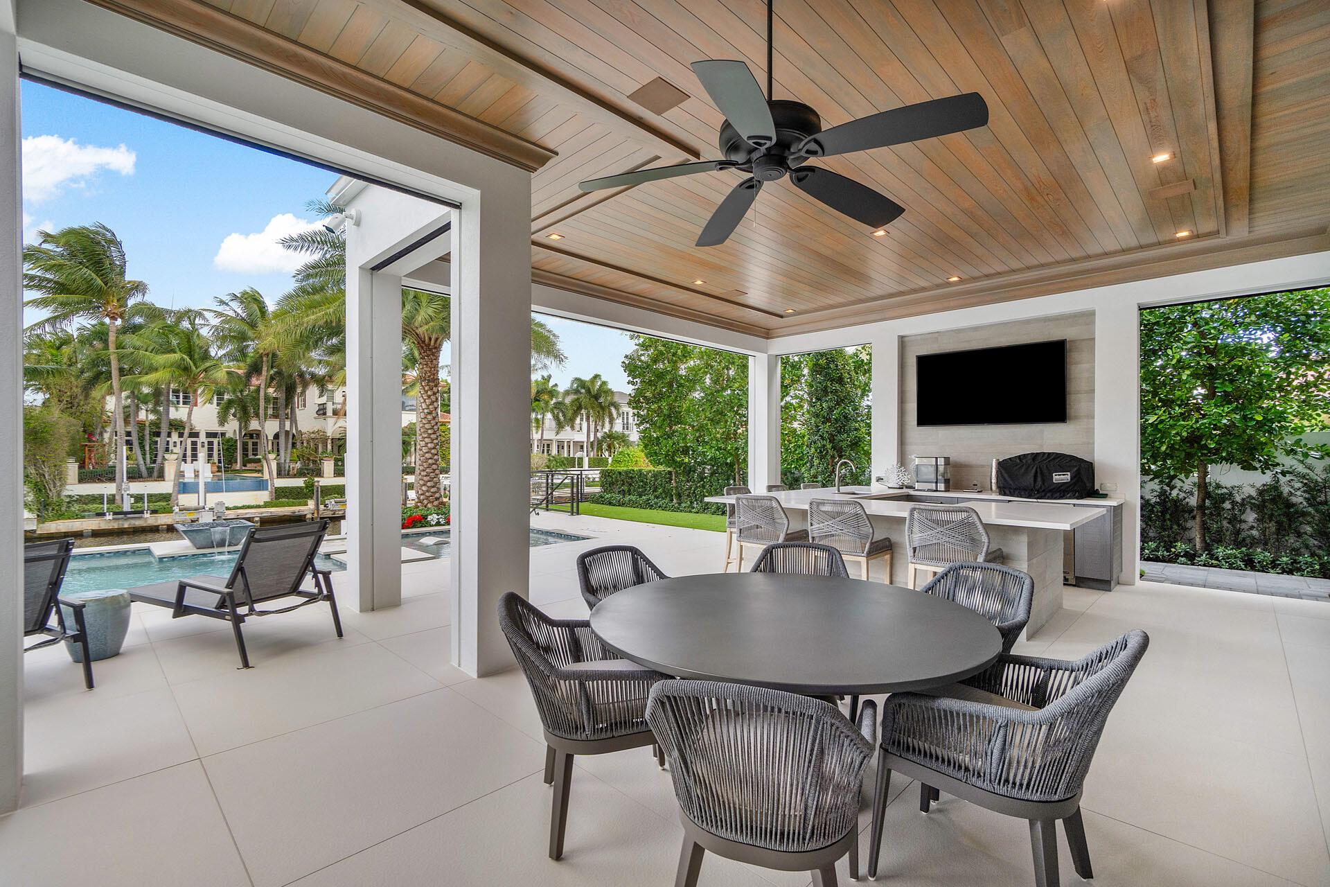 Nestled along 100 feet of the Butterfly Palm Waterway, this prestigious and custom SRD Building Corp. 5-bedroom residence is a masterpiece where every detail is meticulously curated for the discerning homeowner.Picture yourself setting sail from your backyard, exploring serene waters, or enjoying a sunset cruise. Your sanctuary extends beyond the private dock into a resort-grade backyard. The zero-edge pool and spa are the focal points of this outdoor haven, accompanied by an expansive covered terrace and enchanting fire bowls. Whether hosting intimate gatherings or grand celebrations, this versatile space seamlessly merges indoor and outdoor living with its fully retractable screen enclosure.Indoors, the sophisticated open floor plan unveils a stunning eat-in bright white