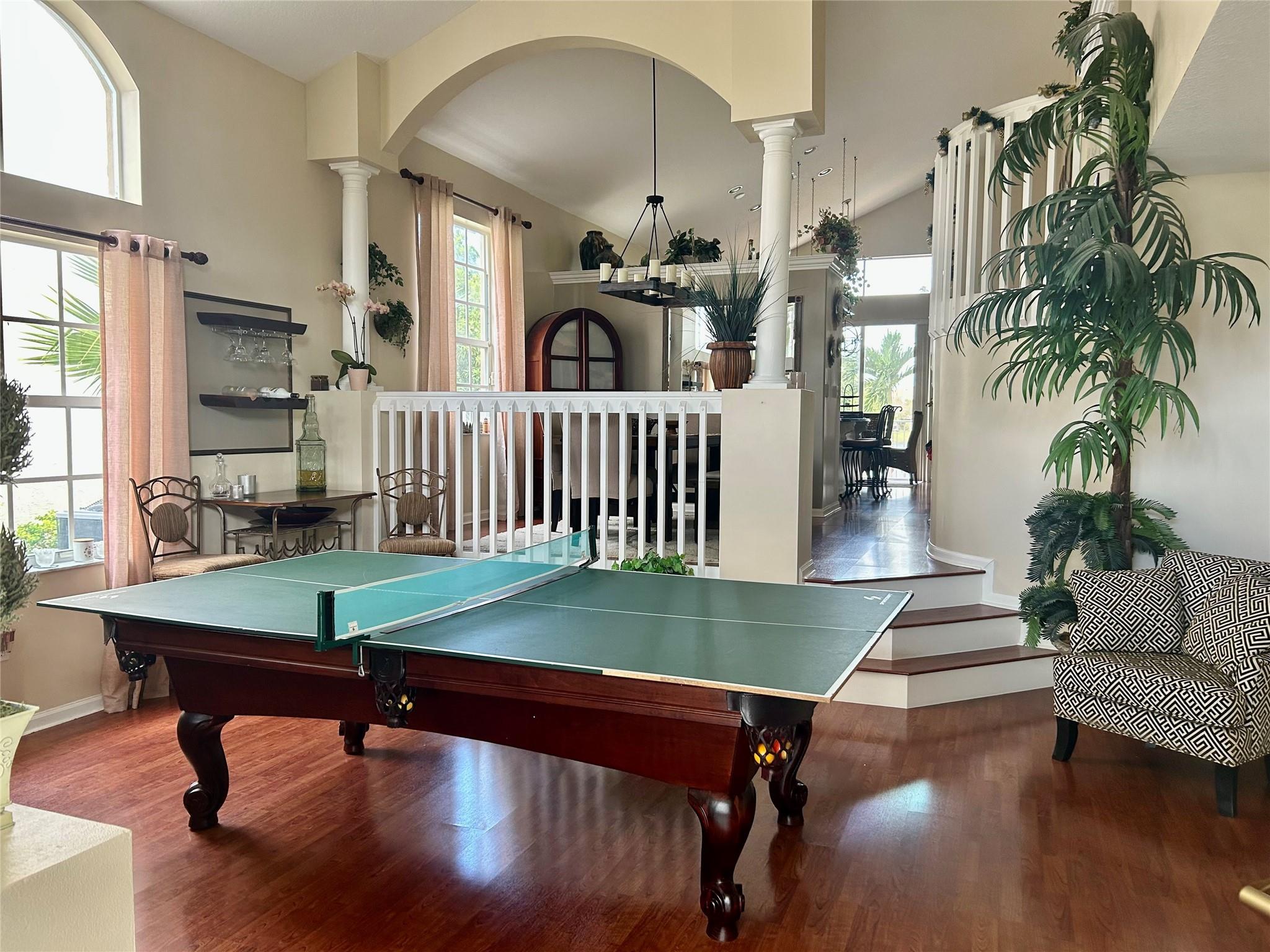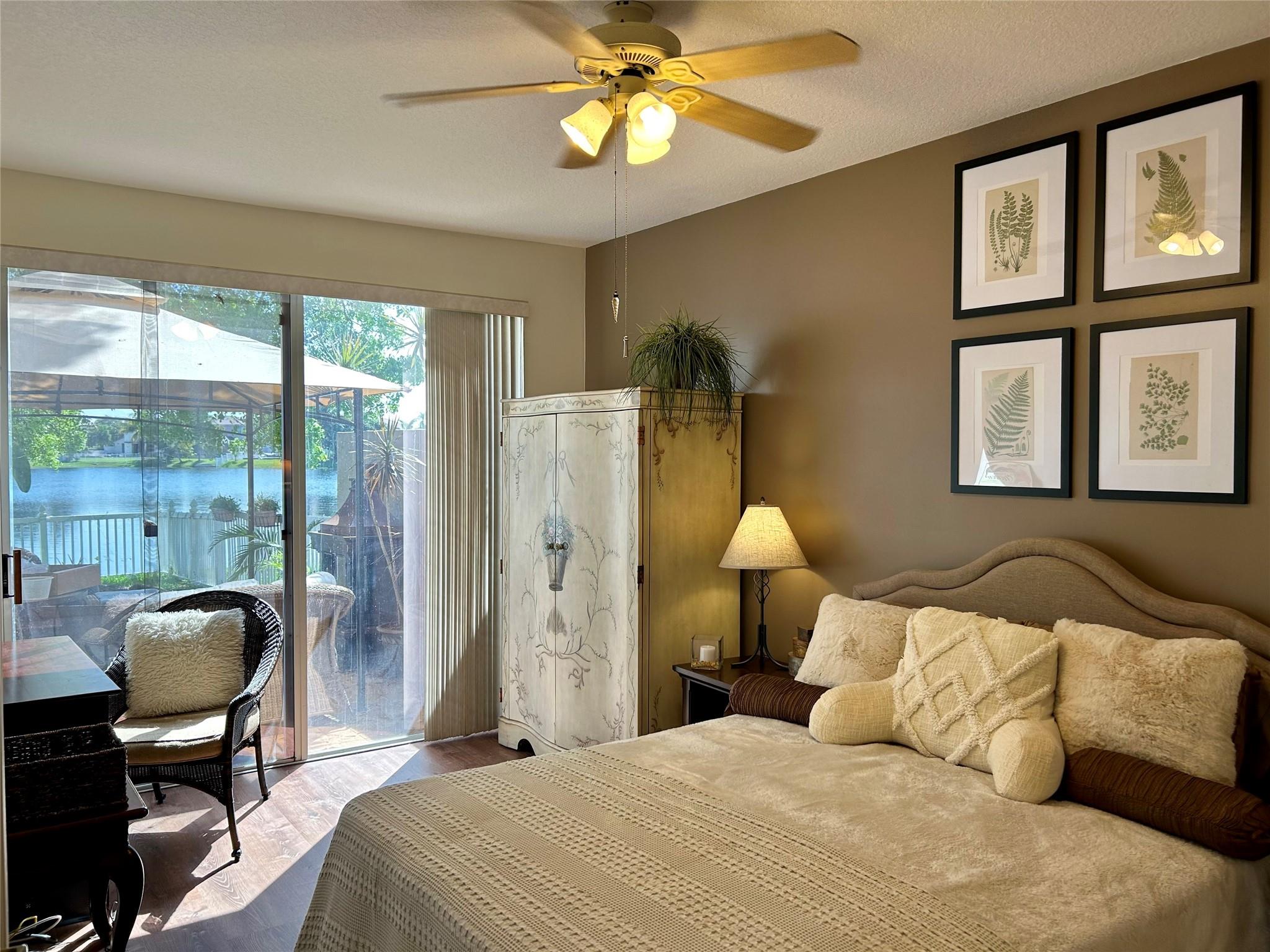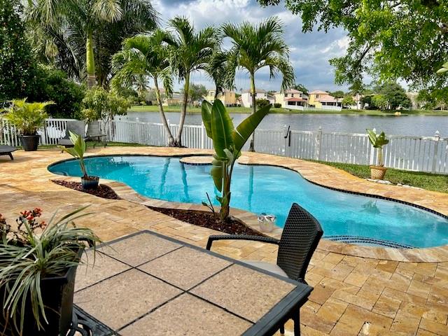 Come see this beautiful waterfront 2-story home. This 4 bedroom/3 bathroom home has a spectacular custom-built pool overlooking a wide lake with a fountain. The home has laminate floors in all living areas and bedrooms and has recently been redecorated in beautiful neutral colors. The master bedroom is extremely large with a sitting area. There is one bedroom downstairs with a full bathroom just outside the room. The kitchen, with brand-new stainless steel appliances, is open to a large family room. Enjoy the open-concept floor plan with high ceilings throughout. This home is located in the desirable gated Canary Bay at Towngate. Close to dining, shopping, and major highways.