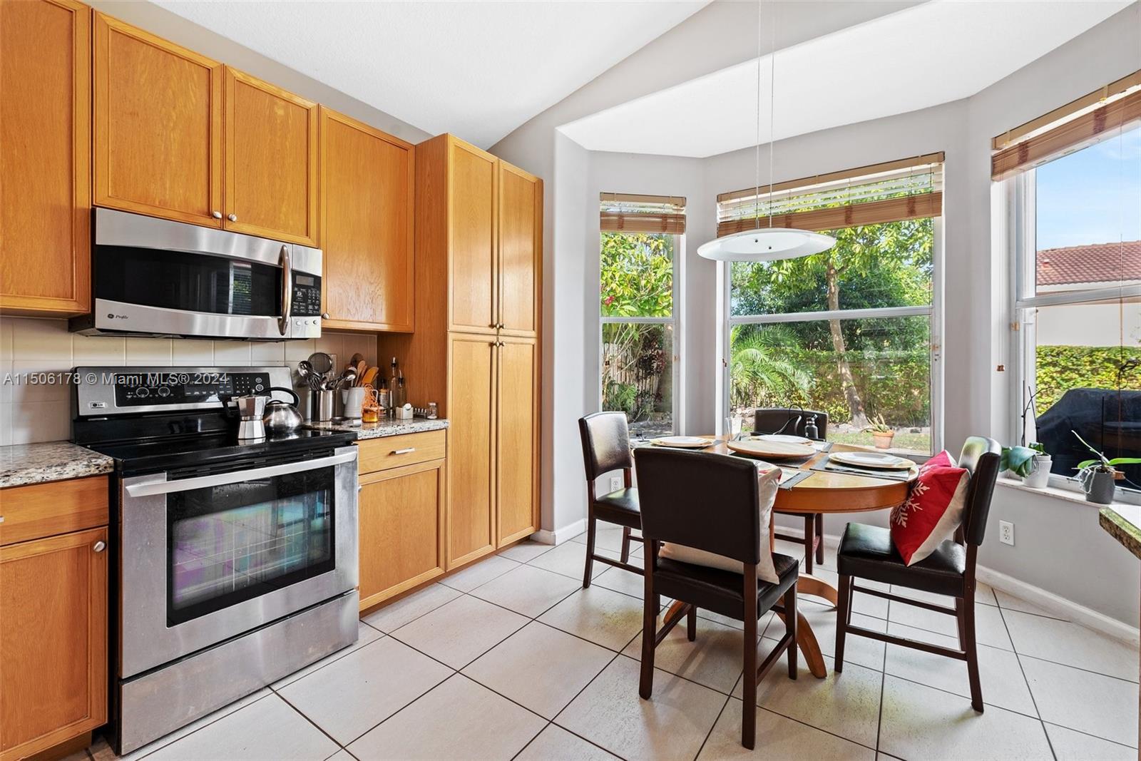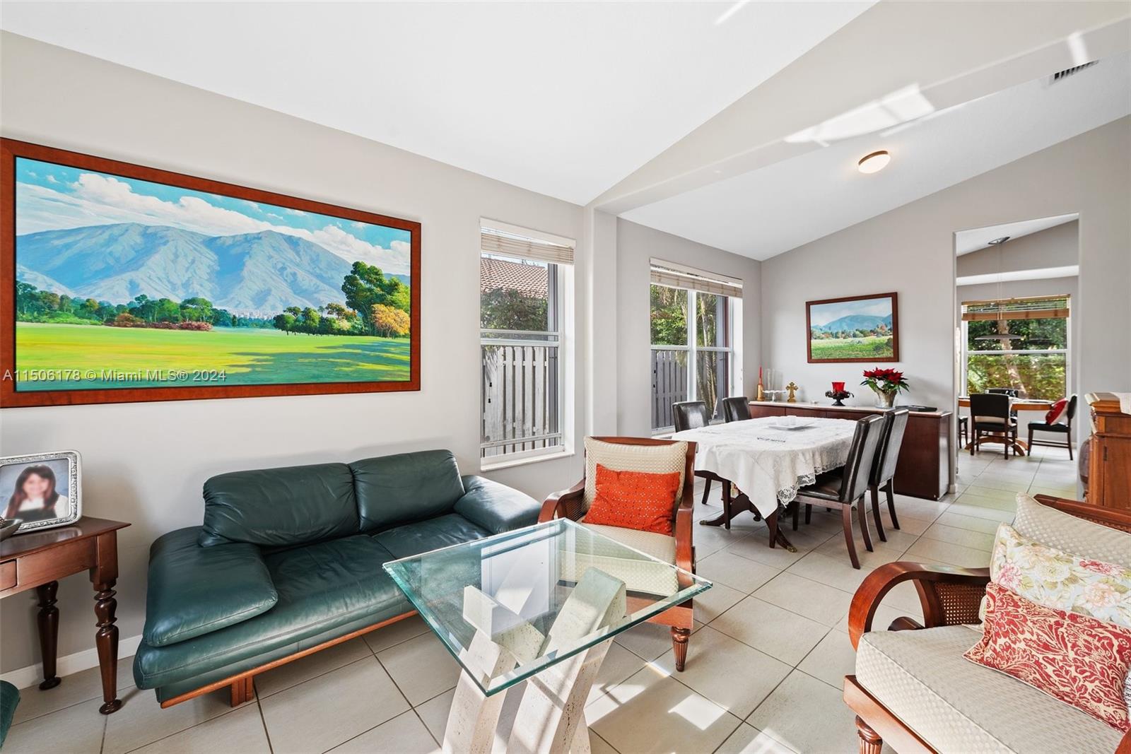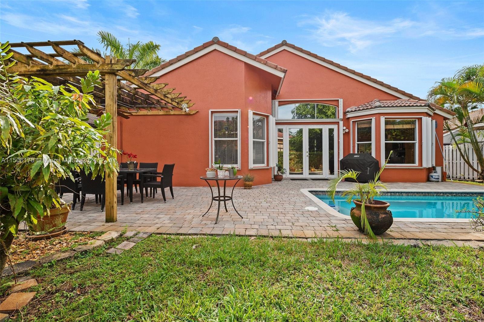 Welcome to this beautiful one-story, 3-bedroom, 2-bathroom home located in the gated community of Sunset Lakes at Miramar. Open concept design with high ceilings creates a bright and inviting atmosphere full of natural light, beautiful kitchen with a cozy breakfast area bathed in sunlight, formal dining room. Outside, the fenced patio is a private retreat, featuring a refreshing pool and a charming pergola for outdoor dining. Living in this gated community means you'll have access to resort-style amenities, including tennis courts and fitness center. HOA Fee includes Cable Tv, Internet and Alarm.