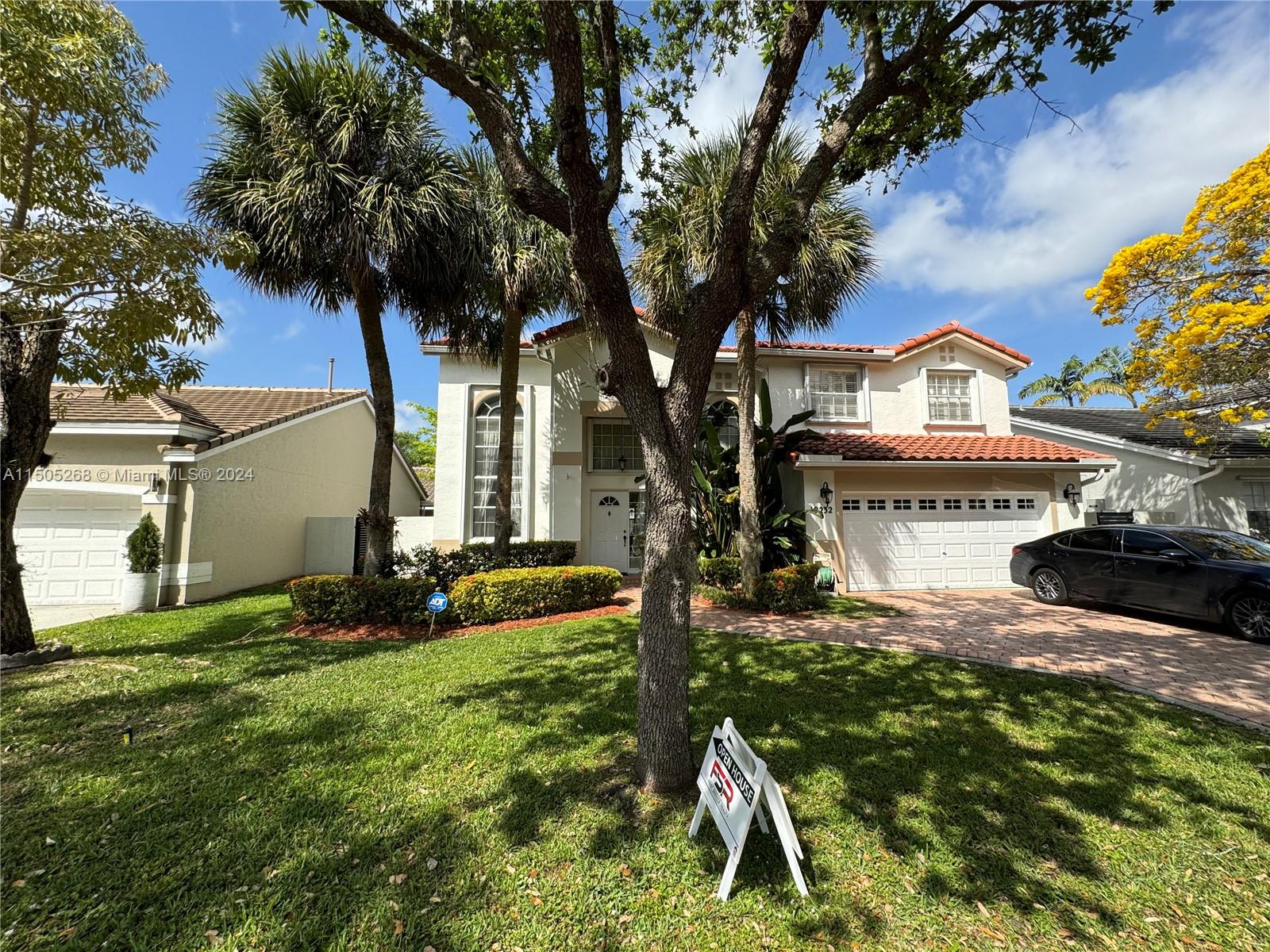Welcome home to Lakes on the Green a private gated community with 24/7 security and a guard house. Step inside this beautiful two-story home featuring 3 bedrooms and 2.5 bath with a 2 car garage. Well maintained home, all bedrooms up stairs, carpet floors upstairs, tile floor downstairs. Kitchen features stainless-steel appliances opens up to the family room. Fenced in backyard - spacious - perfect for entertaining family and friends. New Roof installed in 2021. New water heater, Newer A/C, Hurricane shutters all around- Hurricane Impact garage door. Easy access to major highways I-75 and Turnpike, Excellent schools, Shopping center, Park and Restaurants less than 5 min away. Low HOA $185 includes cable. Come see this beautiful home in the sought-after community of Lakes on the Green!!