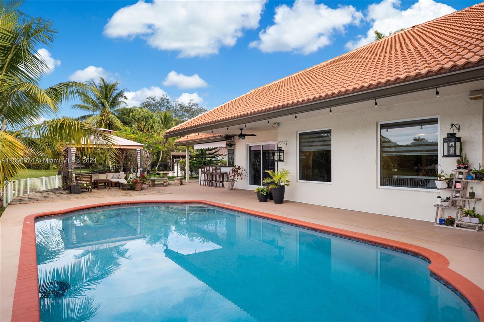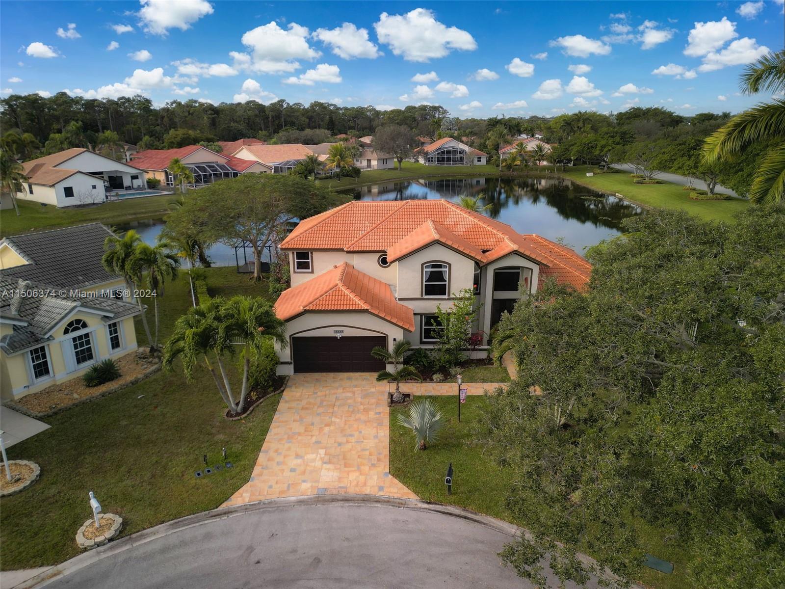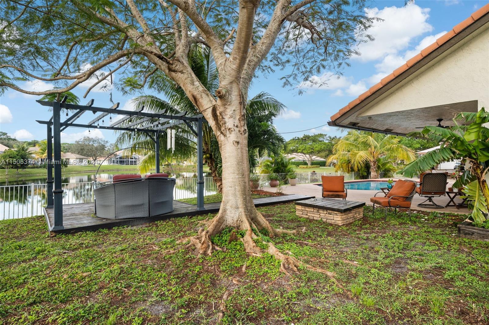 Upgraded & Spacious 4 Bed, 3 Bath Lakefront Home in Coral Spring's convenient Carriage Pointe Estates. With one of the largest lots in this guard-gated community, you'll enjoy outdoor life with beautiful long lake views, a large fenced yard with pool, fire pit, outdoor serving bar, 2 pergolas and plenty of space for outdoor playtime. Inside you'll appreciate the comforts and security of a newer impact windows and doors, rich look bamboo floors, Stainless Steel appliances including Smart Fridge, Smart Thermostat, and a smartly designed first floor primary suite with large bathroom, quite ample closets, and calm aura. With a bright yet large laundry/utility room, even work can be a pleasure. Two car garage, long flagstone drive, & cul-de-sac, there's room for guests to join in the fun.