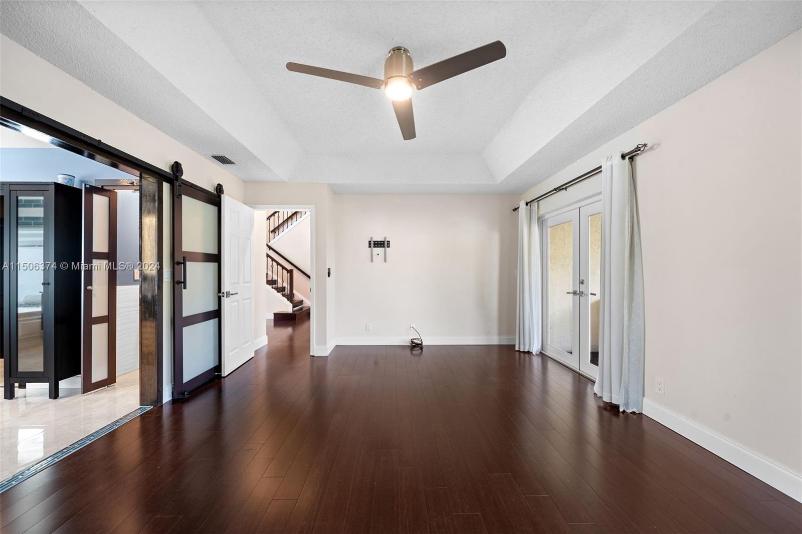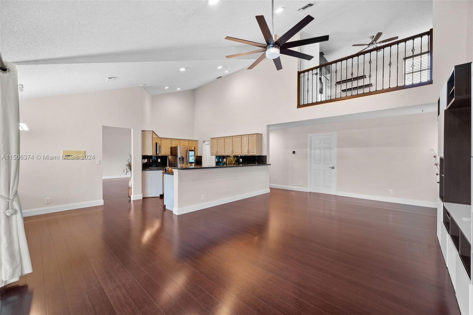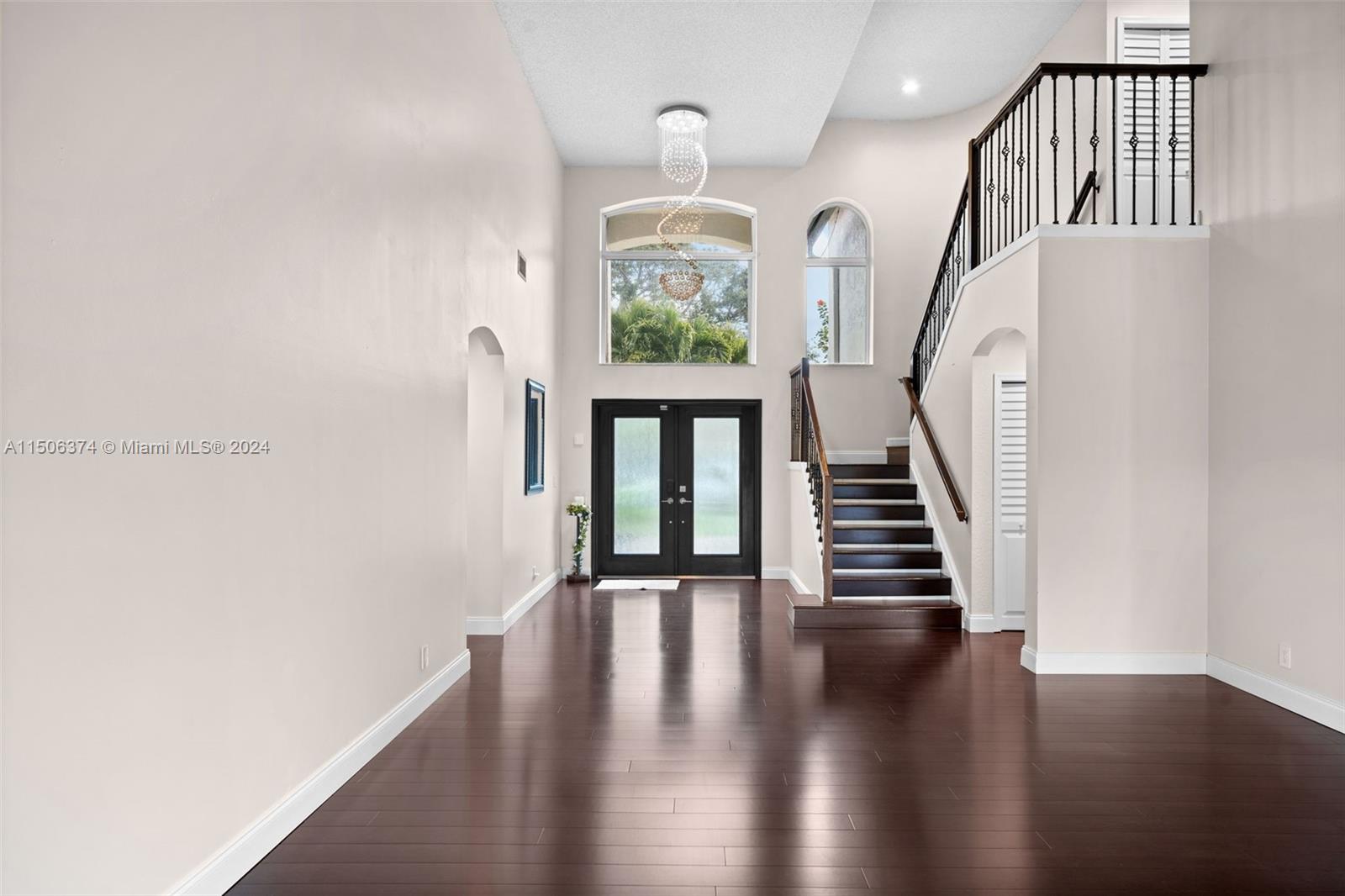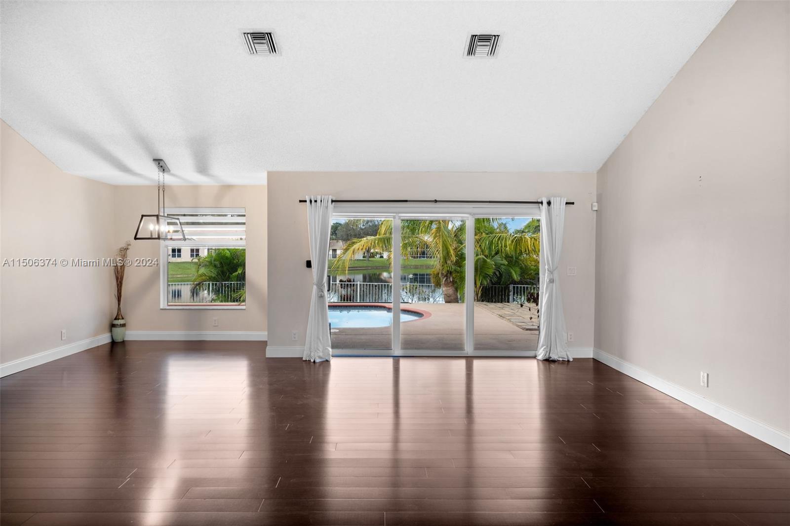 Upgraded & Spacious 4 Bed, 3 Bath Lakefront Home in Coral Spring's convenient Carriage Pointe Estates. With one of the largest lots in this guard-gated community, you'll enjoy outdoor life with beautiful long lake views, a large fenced yard with pool, fire pit, outdoor serving bar, 2 pergolas and plenty of space for outdoor playtime. Inside you'll appreciate the comforts and security of a newer impact windows and doors, rich look bamboo floors, Stainless Steel appliances including Smart Fridge, Smart Thermostat, and a smartly designed first floor primary suite with large bathroom, quite ample closets, and calm aura. With a bright yet large laundry/utility room, even work can be a pleasure. Two car garage, long flagstone drive, & cul-de-sac, there's room for guests to join in the fun.