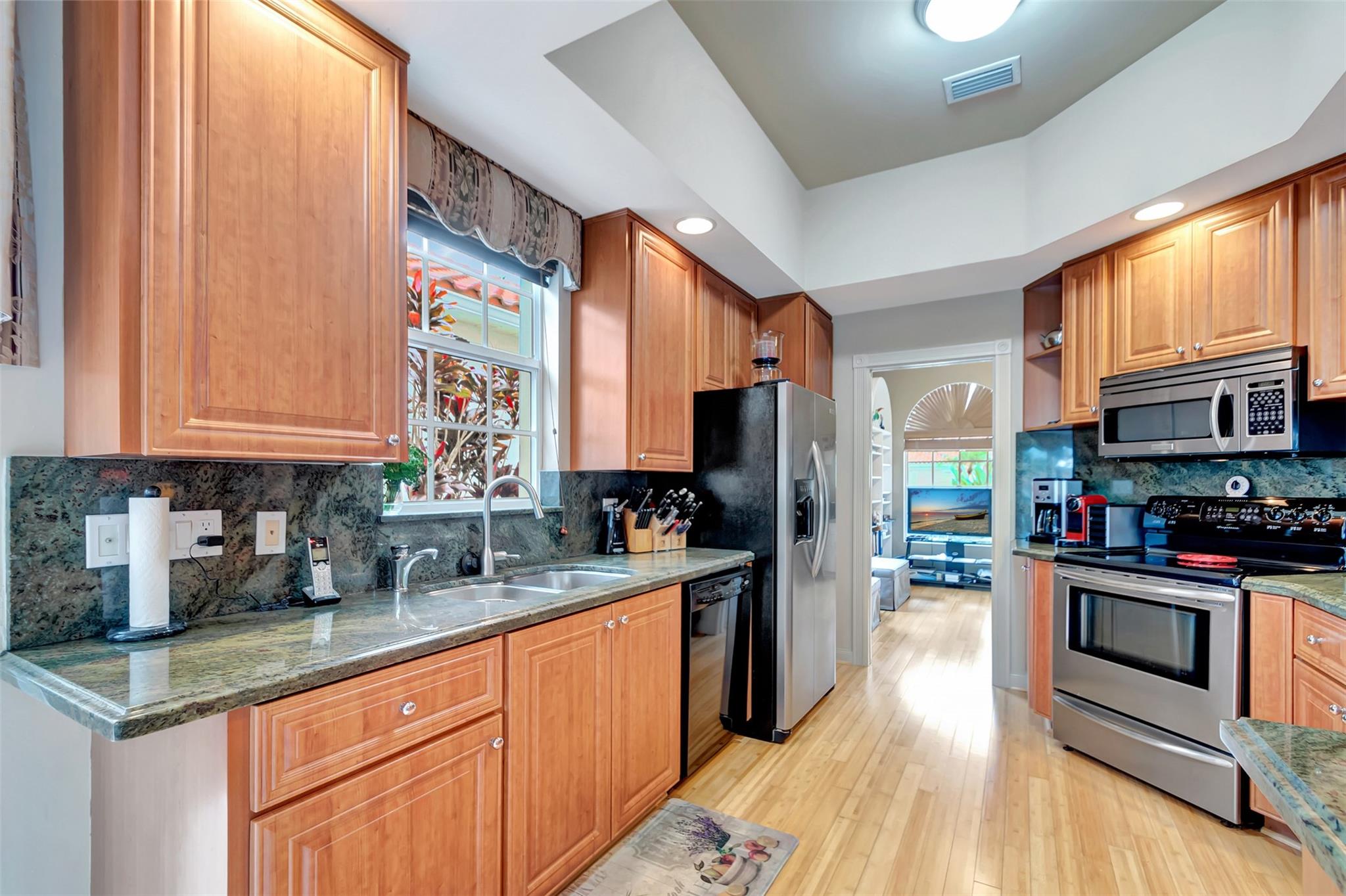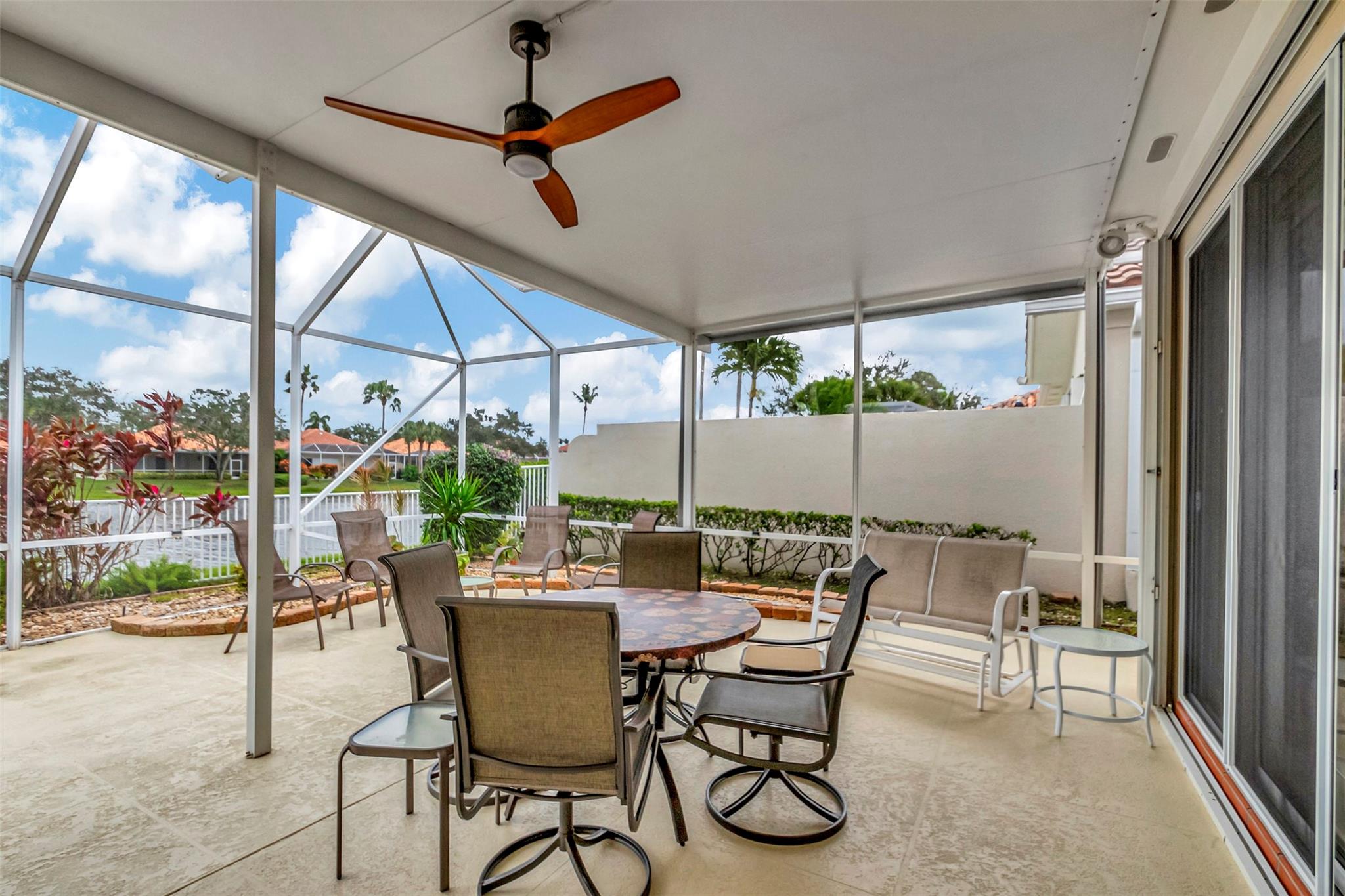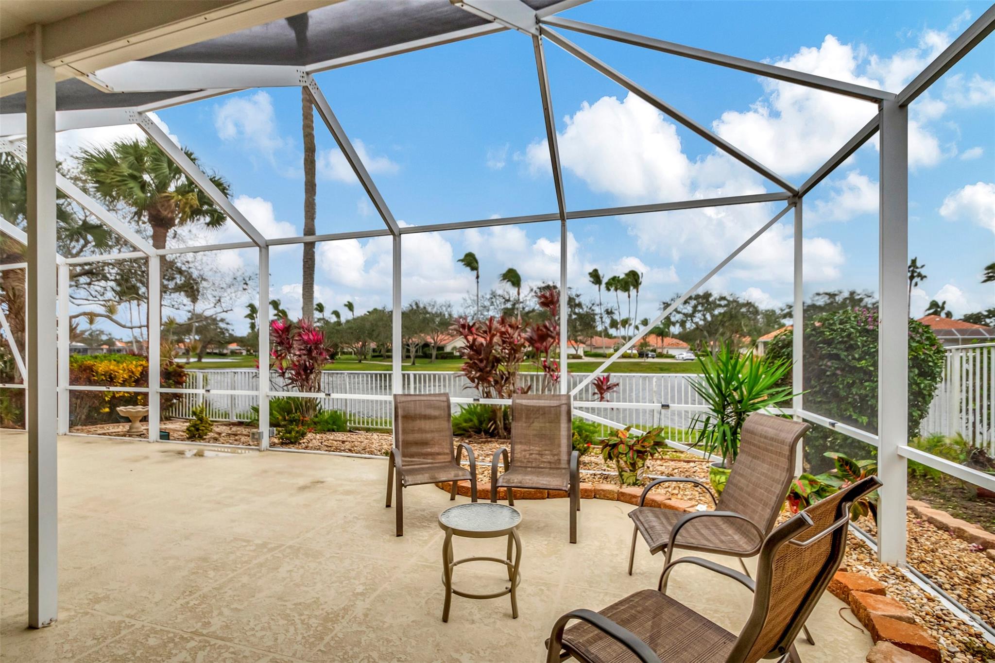 The wildly elusive EXTENDED Oakmont is ready to be yours. This home has STUNNING VIEWS & is well appointed with no backyard neighbor. !8 ft of pocket sliding doors welcomes the outdoors in with a huge screened patio & extended overhead roof to enjoy rain or shine. The large "bird cage" extends around the side of the home from the generous lanai to the kitchen sliders, truly opening the entire home. Freshly painted & immaculately kept, new LVT flooring in the Primary suite, with an enormous amount of closet space. Riverwalk is a piece of paradise hidden within a preserve in the highly desirable city of West Palm Beach. Location & Lifestyle without a membership fee. Enjoy the restaurant, the Fitness Center, Yoga, Tennis, Pickle Ball, 12 miles of trails, picturesque lakes close to everything!
