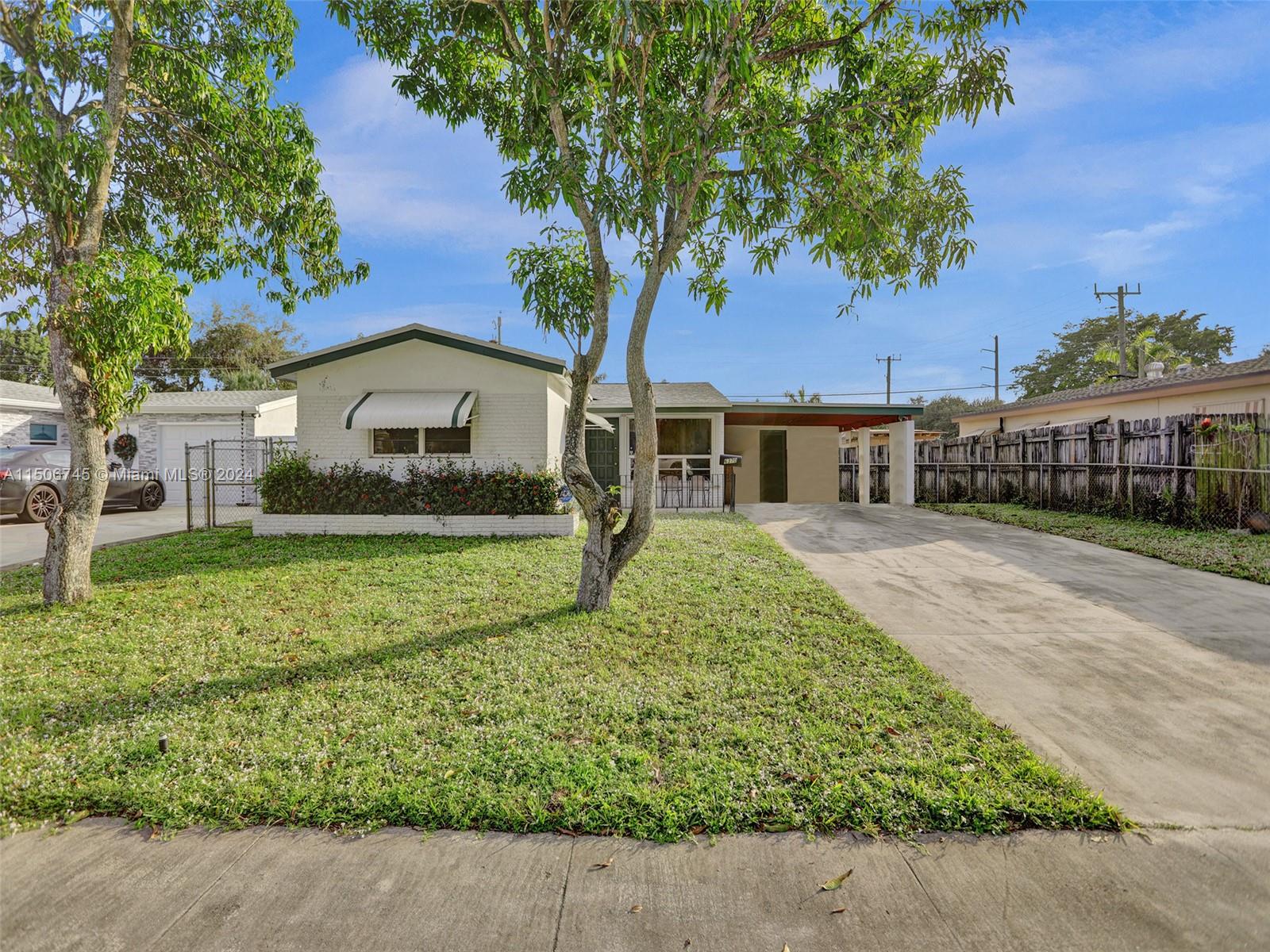 This classic 3 bedroom 2 bath in Hollywood, FL is the perfect single family home. The interior features a welcoming living room with decorative fireplace, wood laminate flooring, stainless appliances, bonus Florida room and 2 car carport with large utility/laundry room. Roof September 2019. Nice size fenced yard with storage shed and fruit trees. No HOA! Very quiet neighborhood and minutes from the Seminole Hard Rock Casino, shopping, schools, and easy access to highways. Previous buyer could not obtain financing to close. Don't miss this great opportunity for first time buyers or investors!