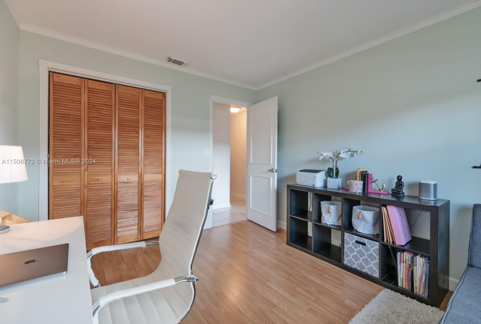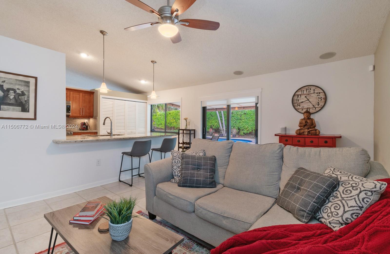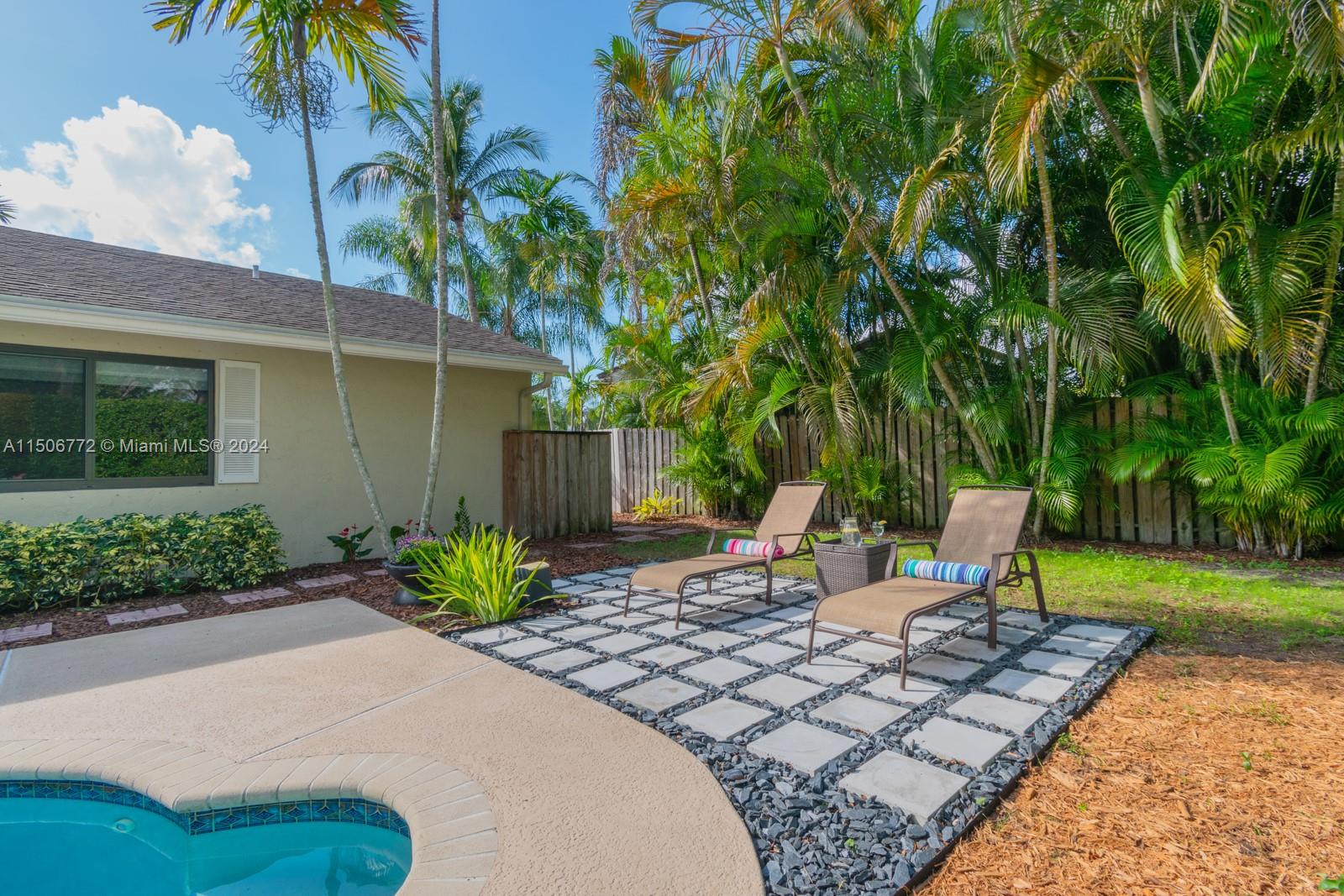 YOUR FUTURE HOME AWAITS! Spectacular 4b/2b split floorplan with LOW HOA! NEW impact windows, doors & garage. Free-form pool & deck, awning for shade, hedge along back, landscaped surroundings & fenced yard for private outdoor escape. French doors lead to primary suite with custom wood built-ins for DREAM closet. 2 separate vanity areas & step-down shower in main bath. Chef's kitchen features wood cabinets, stainless steel, granite counters & backsplash, generous pantry & recessed lights. Grand window & sliding doors for seamless interior & outdoor transition. Freshly painted accent walls & sloped ceilings enhance living atmosphere. Laminate flooring & new window treatments. Updated 2nd bath has tub/shower combo, glass sliding door, white vanity, granite top. AC 2019, Water H 2020, W/D 2021