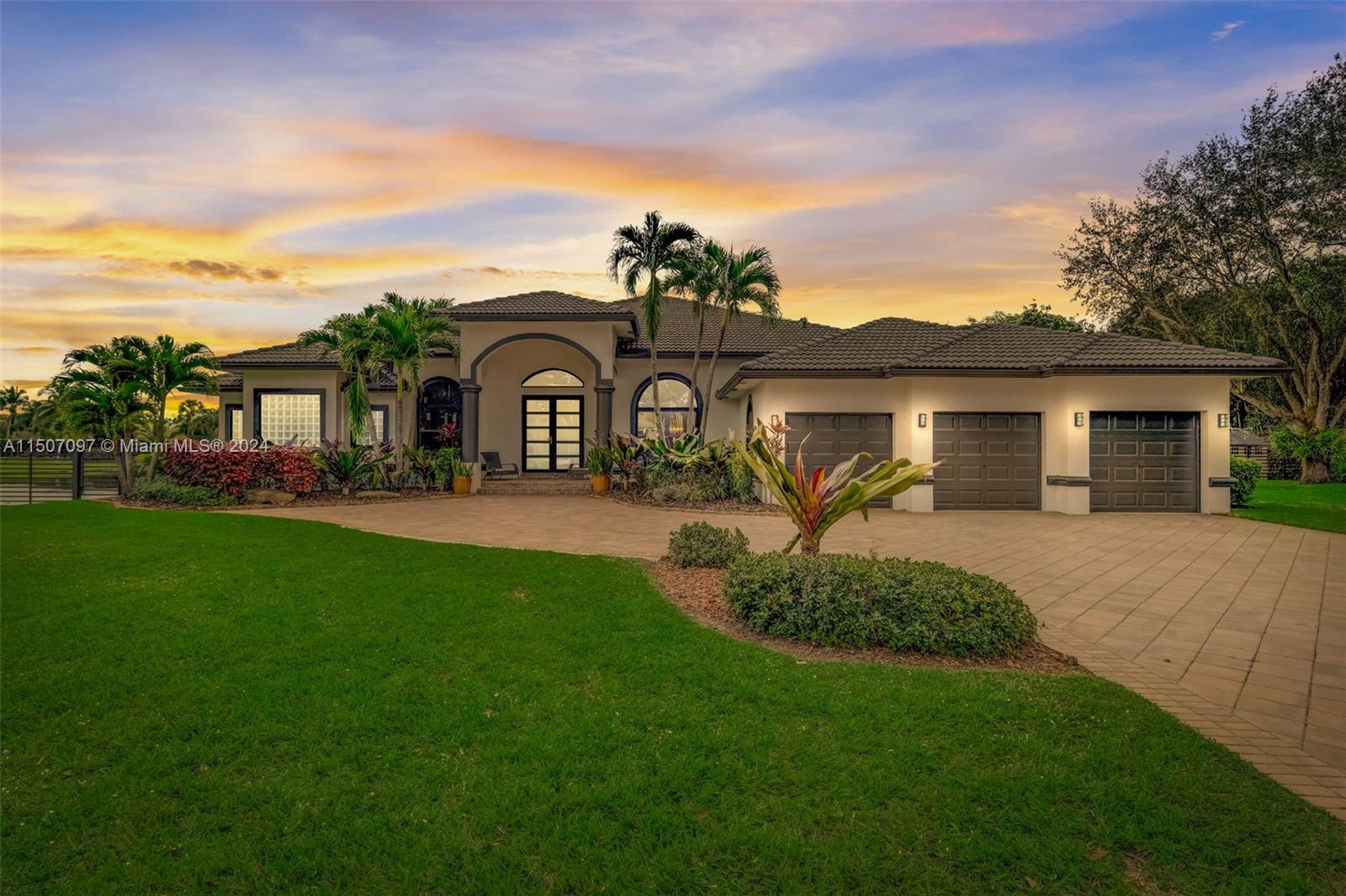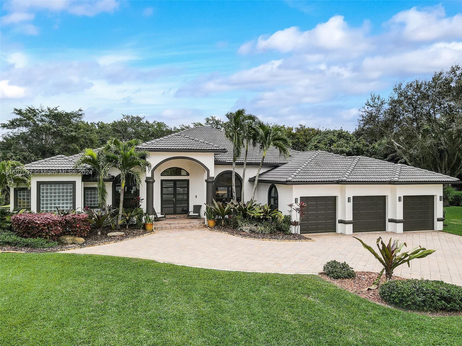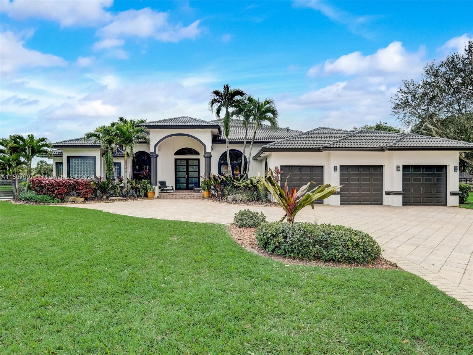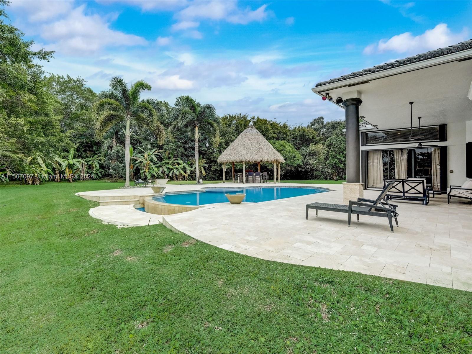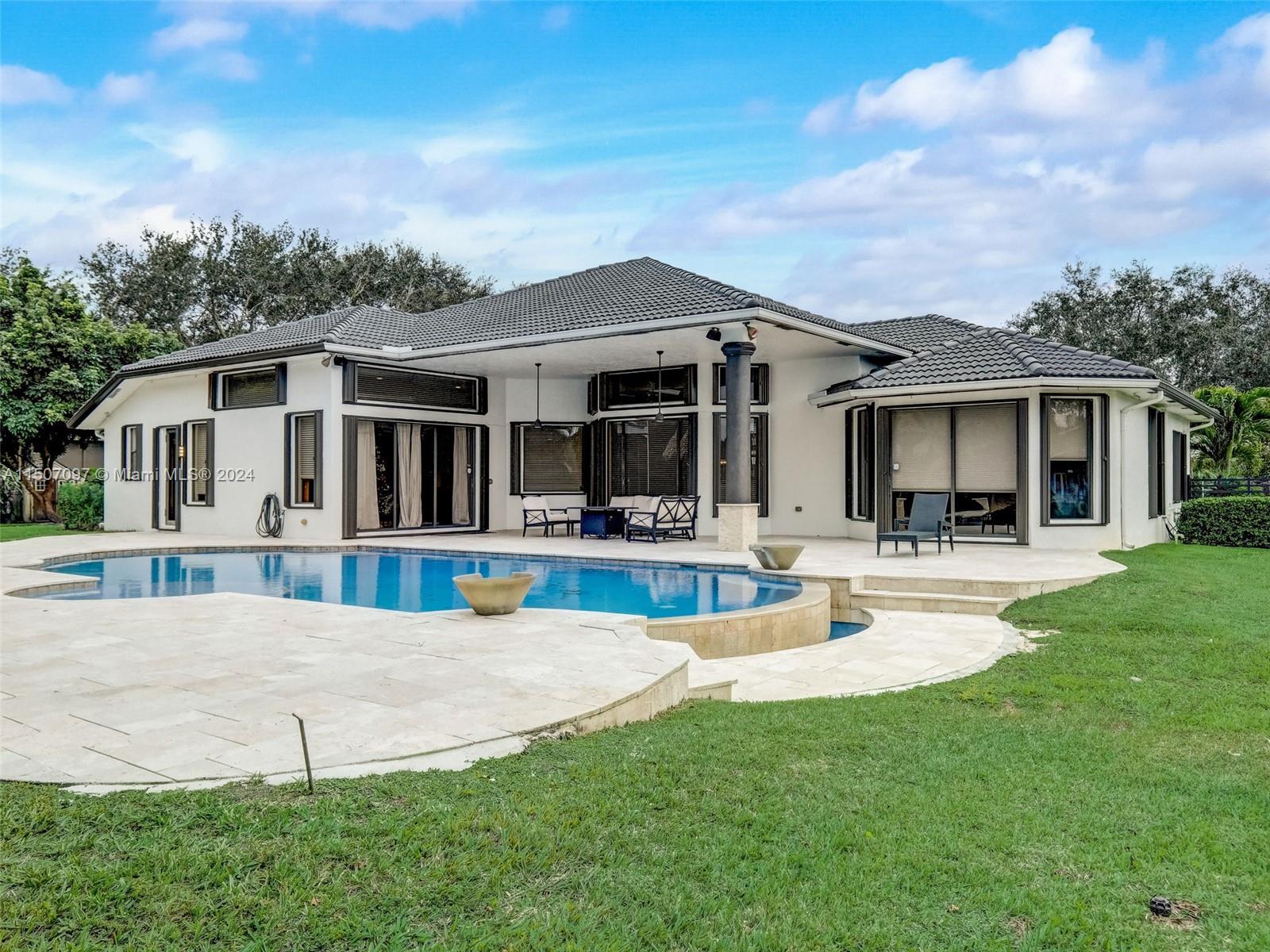 Welcome to Westridge in Davie! This 5 bed/3 bath lakefront home is a haven of sophistication and privacy, perfectly situated on a cul-de-sac.The upgraded kitchen boasts granite countertops, white cabinetry, and top-notch stainless steel appliances.The master retreat features auto remote-controlled blackout shades, walk-in closets, bamboo hardwood floors, and a dedicated water heater.Outside, an oversized patio with a covered seating area leads to the infinity-edge pool surrounded by travertine marble, fire accents and a Tiki Hut with a concrete/marble bar, brand new built-in BBQ, and 2 mini-bar refrigerators.Entertainment abounds with surround sound, a jet ski dock, and a boat ramp. Enjoy lake activities like jet-skiing or fishing in your backyard. Your Private haven awaits!