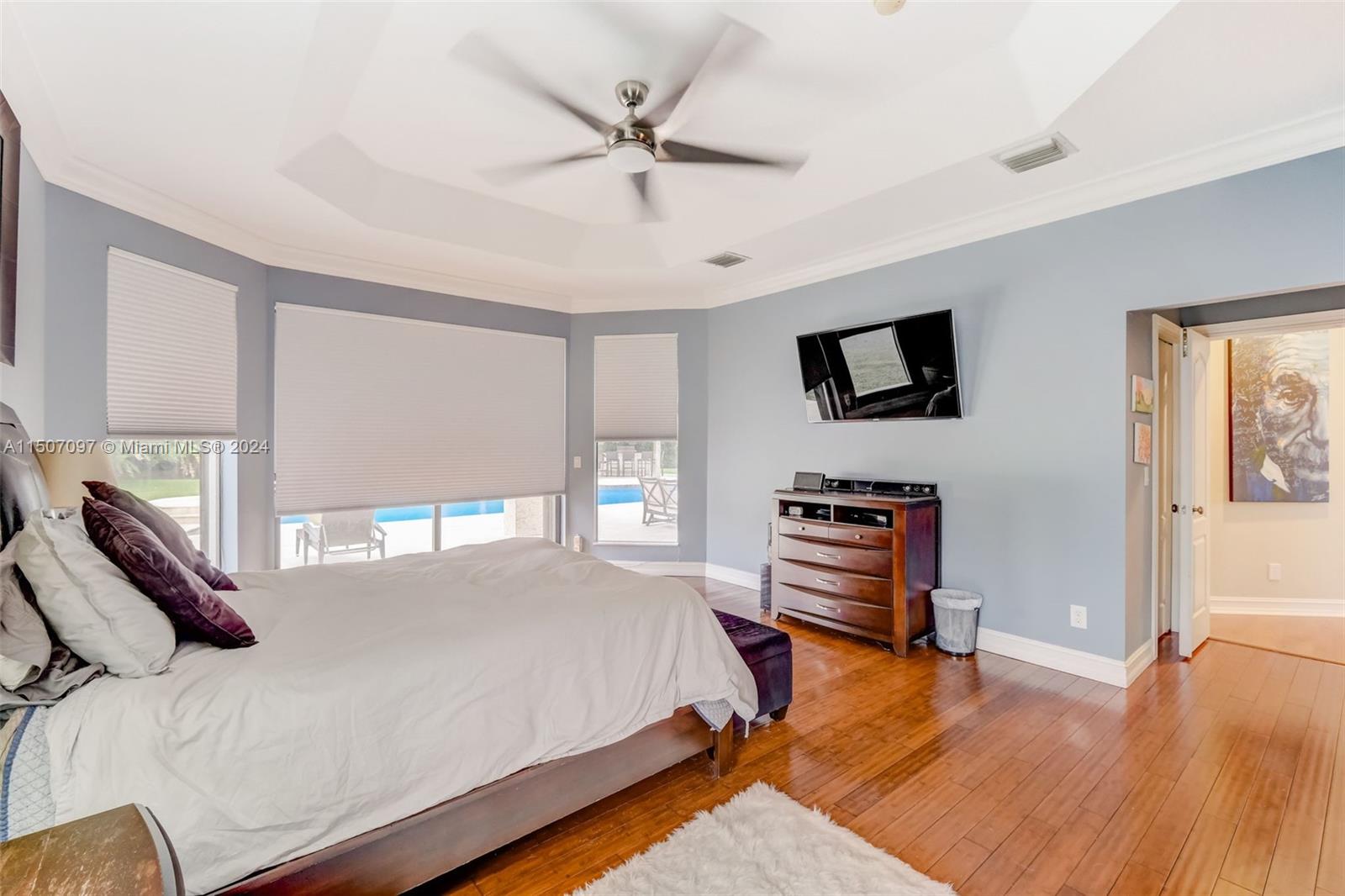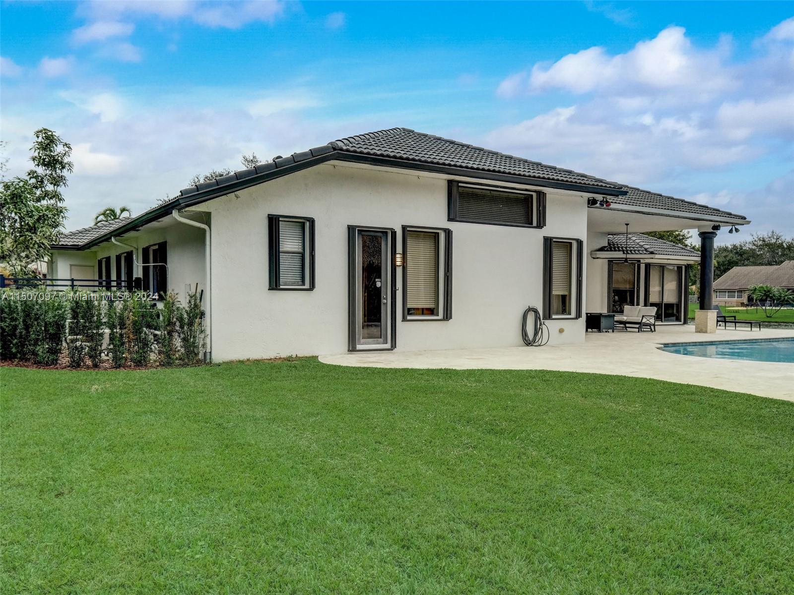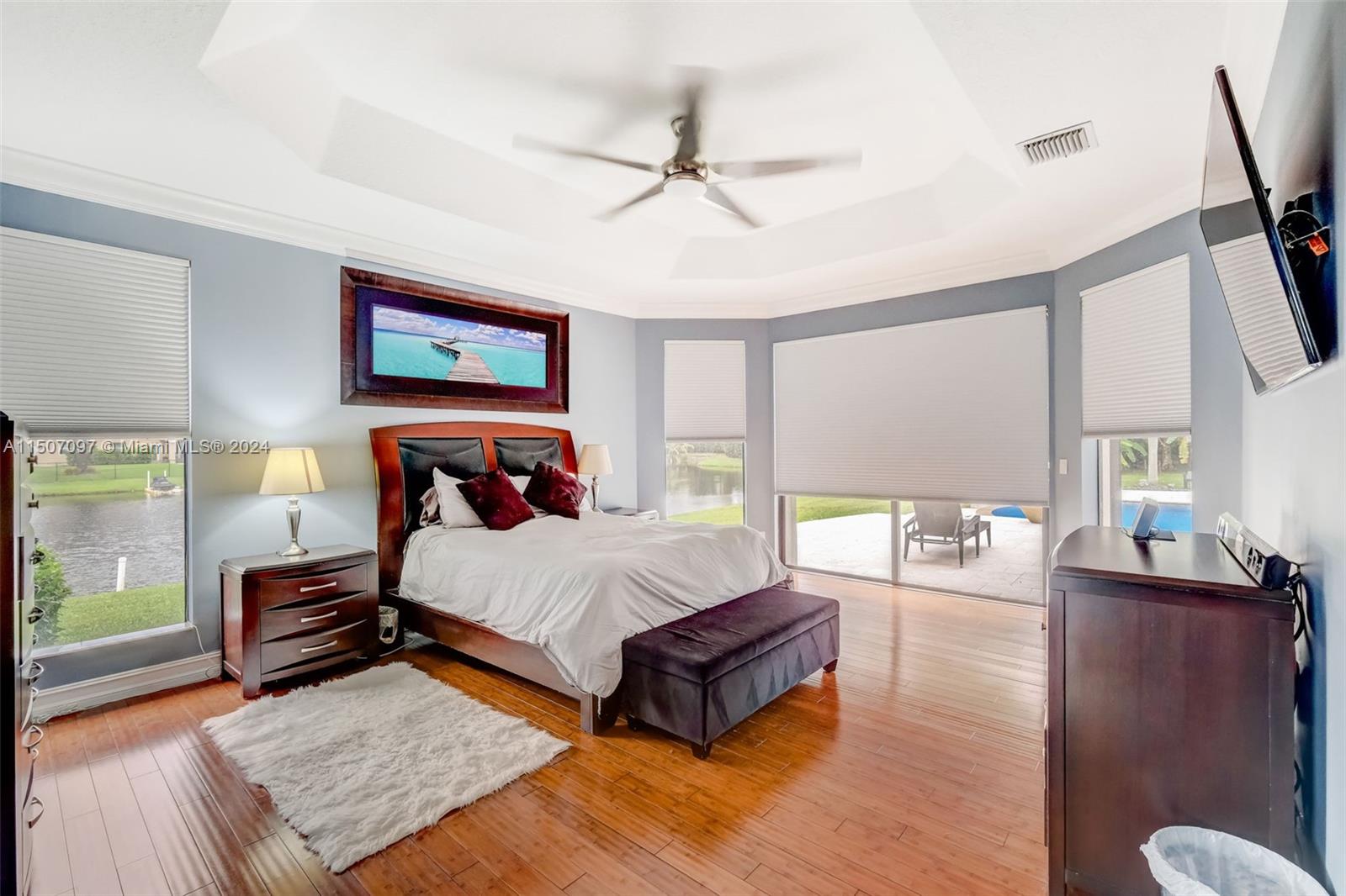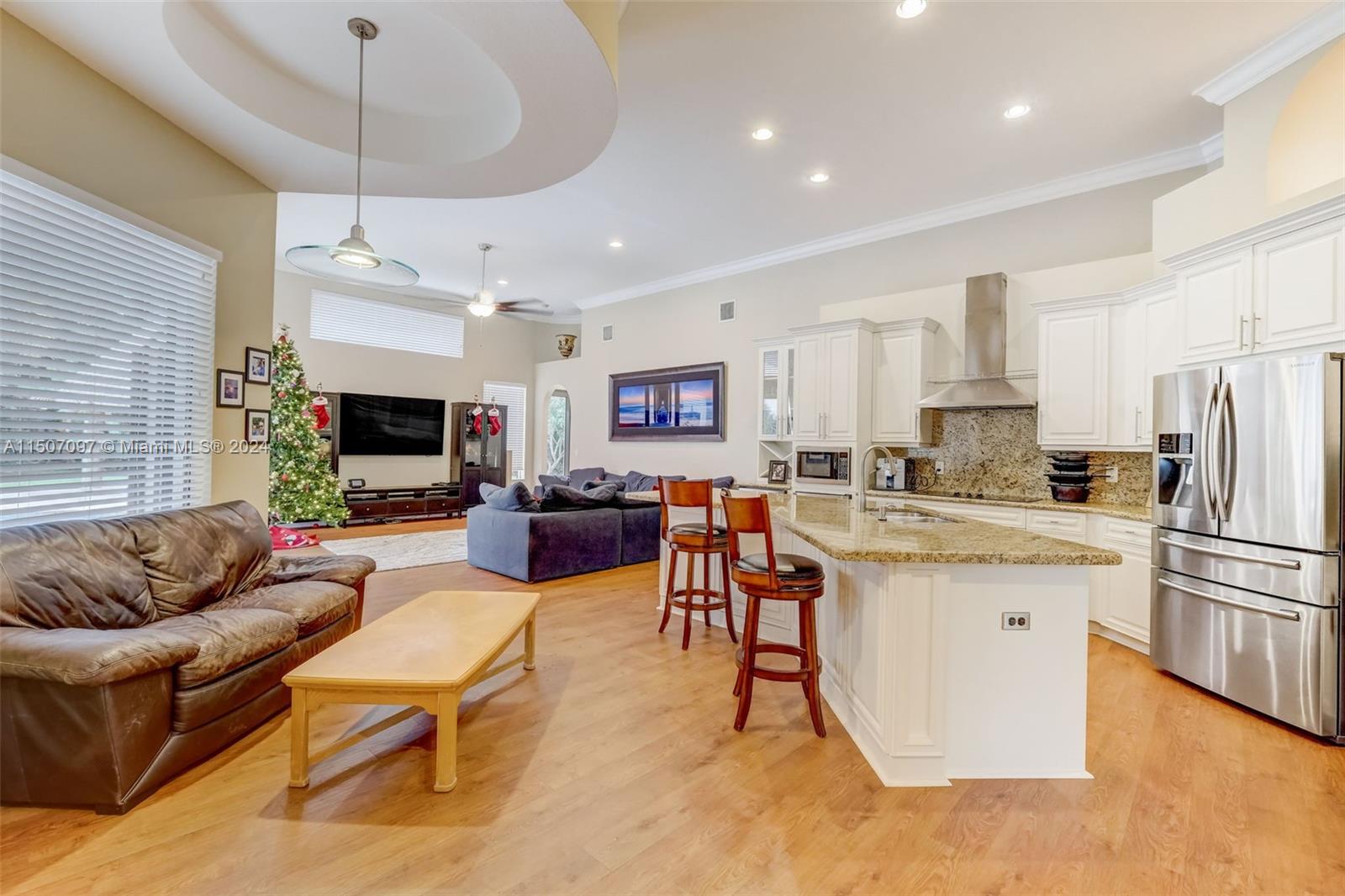 Welcome to Westridge in Davie! This 5 bed/3 bath lakefront home is a haven of sophistication and privacy, perfectly situated on a cul-de-sac.The upgraded kitchen boasts granite countertops, white cabinetry, and top-notch stainless steel appliances.The master retreat features auto remote-controlled blackout shades, walk-in closets, bamboo hardwood floors, and a dedicated water heater.Outside, an oversized patio with a covered seating area leads to the infinity-edge pool surrounded by travertine marble, fire accents and a Tiki Hut with a concrete/marble bar, brand new built-in BBQ, and 2 mini-bar refrigerators.Entertainment abounds with surround sound, a jet ski dock, and a boat ramp. Enjoy lake activities like jet-skiing or fishing in your backyard. Your Private haven awaits!
