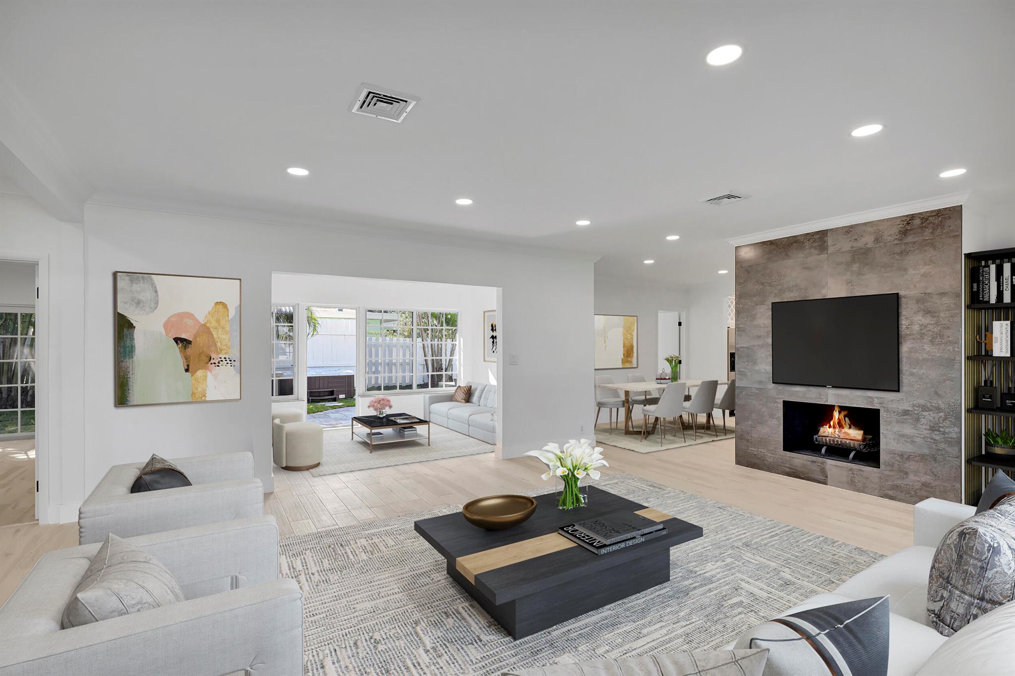 Welcome to this exquisite beachside retreat in Pompano Beach, Florida! This residence is a beach lover's dream, located just over a half-mile stroll from the sandy shores. The interior showcases beautiful porcelain wood-look tiles, creating a cohesive and stylish atmosphere. The exterior has been thoughtfully refinished and painted, enhancing the curb appeal. This stunning home boasts over 1900 sq. ft. of meticulously reimagined living space, featuring three bedrooms and two bathrooms. The coastal ambiance is enhanced by light and bright impact windows, providing a seamless connection to the outdoors. Enjoy the convenience of a whole house generator and indulge in the brand new Jacuzzi, creating a perfect oasis. (MORE)