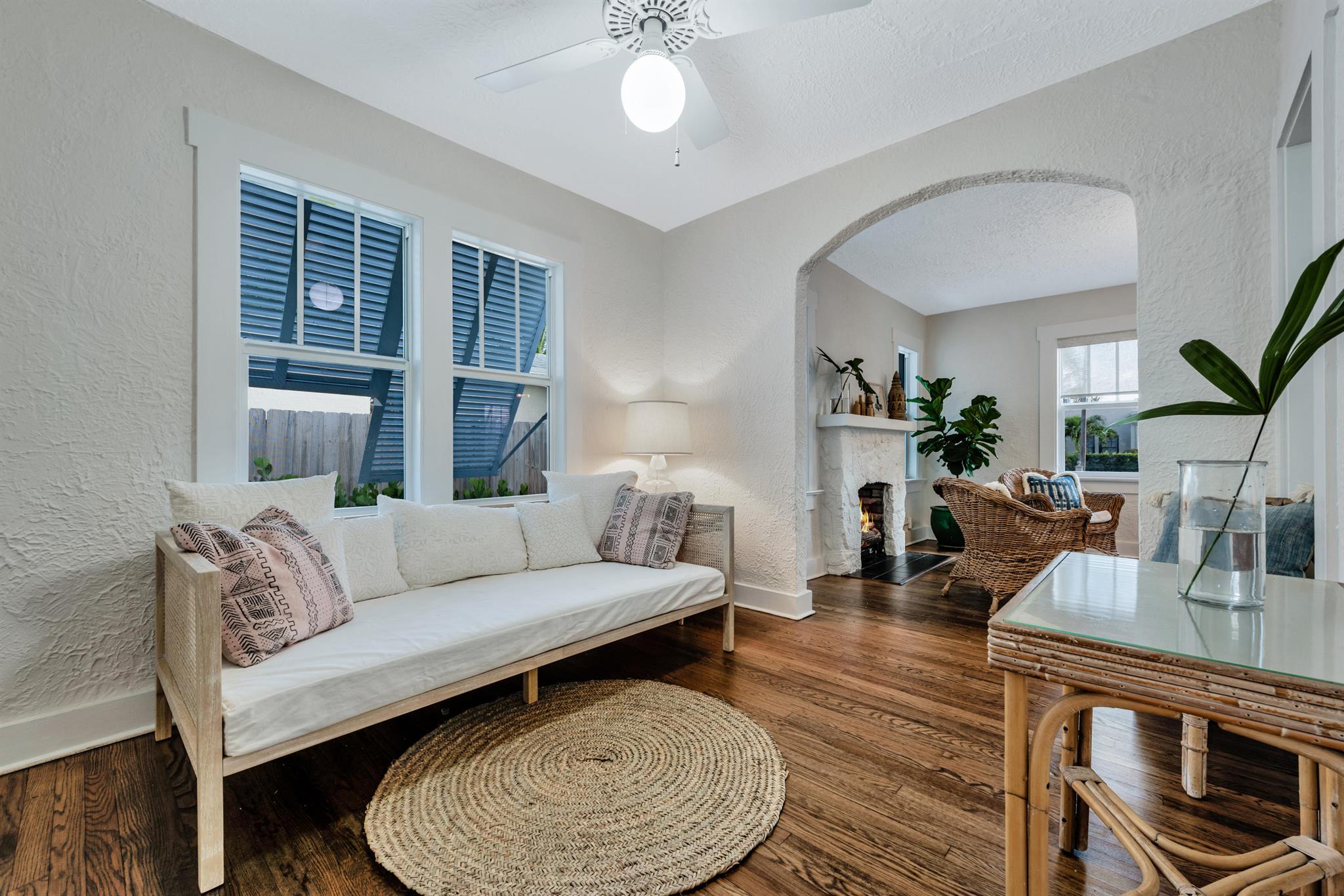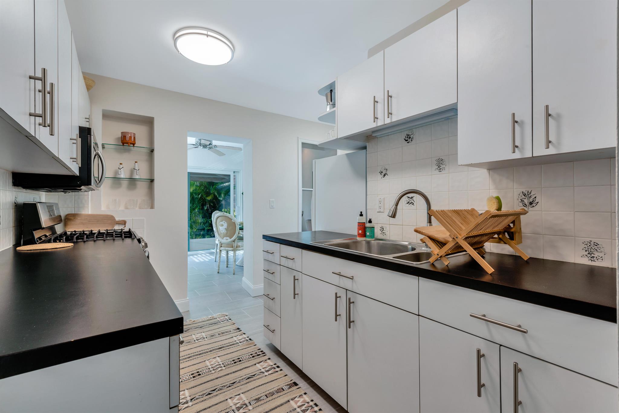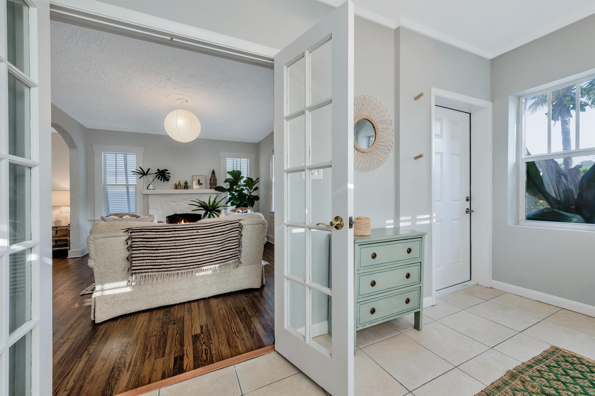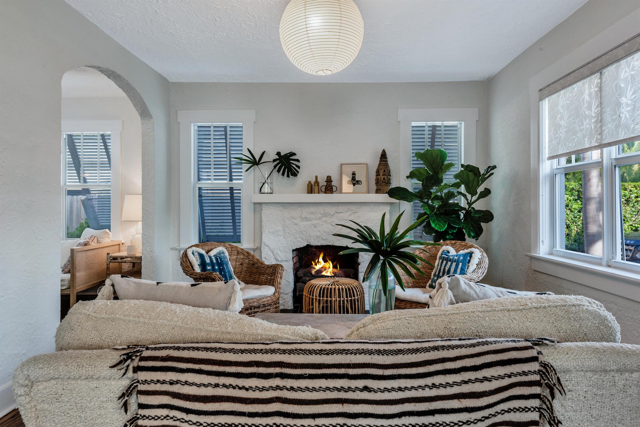 Charming West Palm Beach bungalow. Located in the heart of SoSo, this impeccably maintained 2 bedroom/1 bath home includes impact windows, large backyard deck, coquina gas fireplace, formal dining room, living room and bright sun-room. Located close to the Intracoastal Waterway, downtown West Palm Beach and PBI Airport. Furniture negotiable.