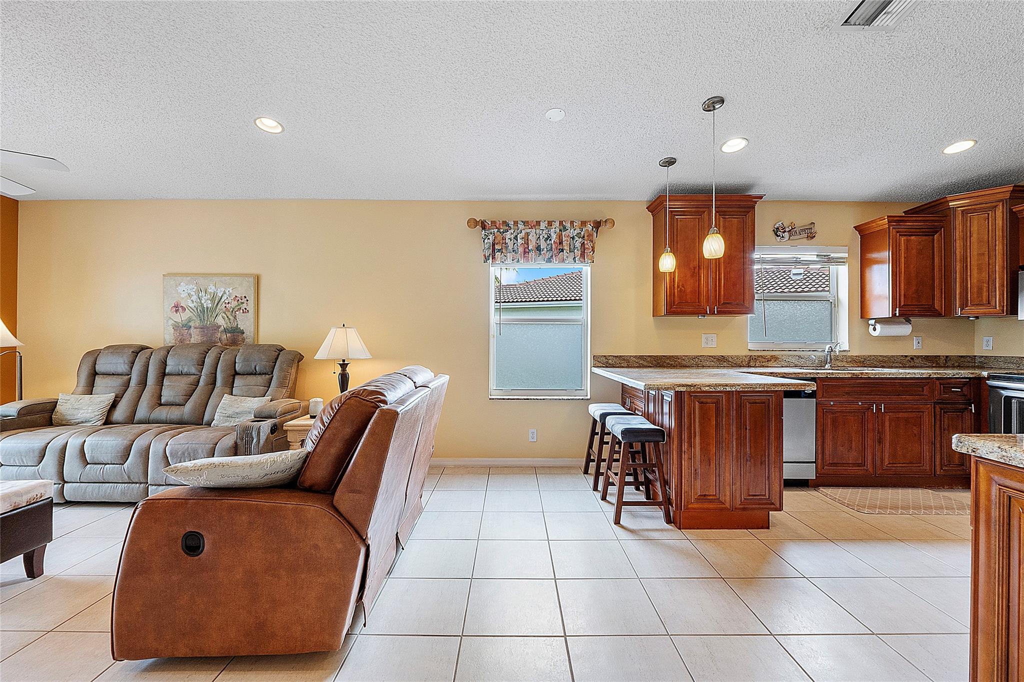 True Pride of ownership! This contemporary masterpiece nestled in the prestigious Villages of Renaissance gated community in West Miramar boasts a 3 large bedrooms with laminated floor, 2 remodeled bathrooms, a remodeled kitchen w/ granite and spacious cabinets, stainless steel appliances, 2 car garage with hurricane proof door, accordion shutters and is surrounded by a serene lake view. This state of the art sits on a large and private corner lot w/ an expansive fenced-in backyard which is a true oasis for a future pool or for family entertainment. Newer Tile Roof, gutters, insulation 2018, newer AC system 2017, newer washer & dryer 2019. Community features: swimming pool, playground, tennis courts & guard gate. Very low HOA. Easy commute to I75 & Turnpike. Close to Miramar Town Center.