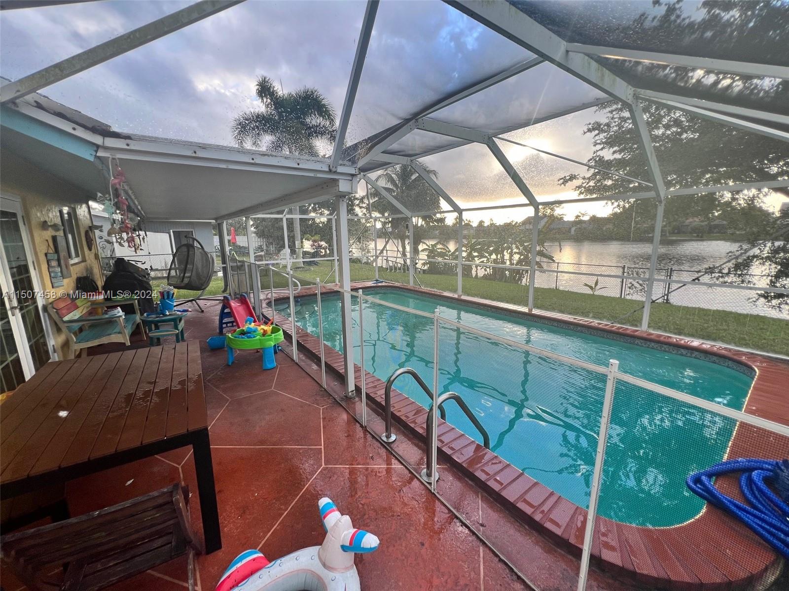 Breathtaking lake view from the screened pool area. Newer kitchen cabinets and refrigerator, hurricane proof windows, interior recently painted, bathroom shower, tub and toilets replaced, vaulted ceiling in living room and dining room, 6 ceiling fans, pool safety gate, outside shed, fenced yard, 1 car garage converted to an extra bedroom (4th), extra refrigerator staying.. Perfect location to watch the sunsets!