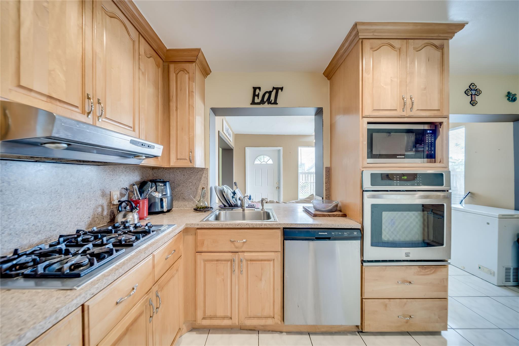 Brilliantly Spacious and Charming Home with Fenced-In Backyard! Tucked away in a sought-after area, this 3BR/2BA, 1,432sqft residence captures attention with a classic stucco exterior, beautiful driveway, and neighborly sidewalks. Impressively maintained, the interior features gleaming tile flooring, soft natural light, luminous sunroom, sizeable living room, and an updated kitchen with stainless-steel appliances, stylish counters, gas range, and wall oven. Thoughtfully fenced-in for ultimate privacy, the backyard oasis boasts a concrete patio, greenspace, mature trees, and a built-in BBQ All three bedrooms are perfectly sized, while the primary bedroom also has an en-suite. Other features: attached garage, laundry area, near schools, shopping, and restaurants, and more! Call for a tour!