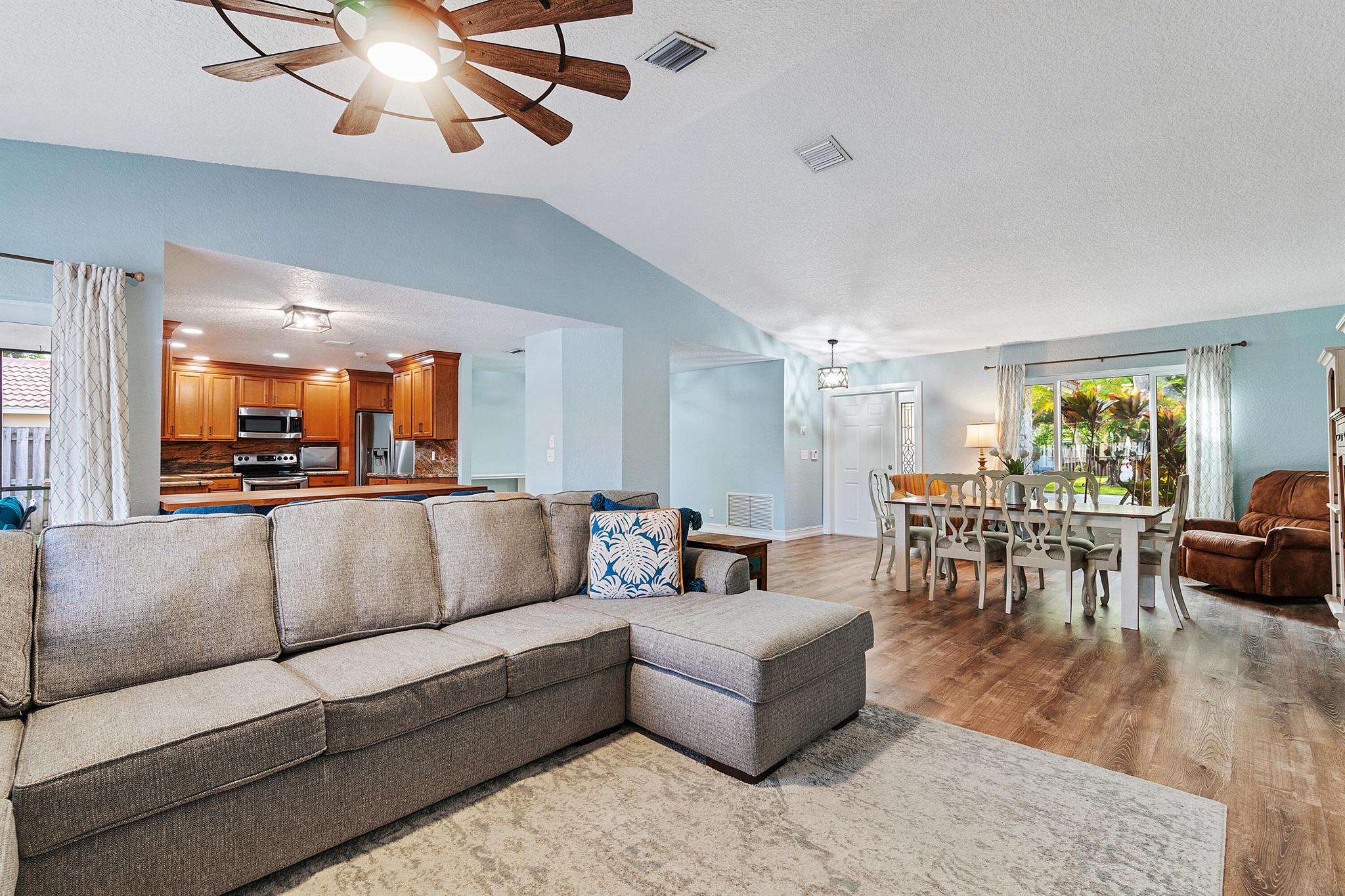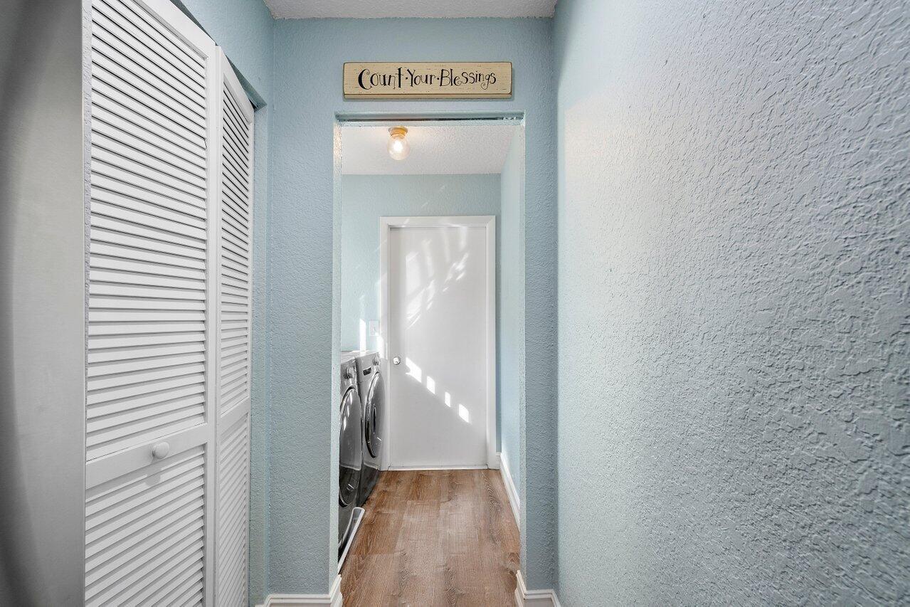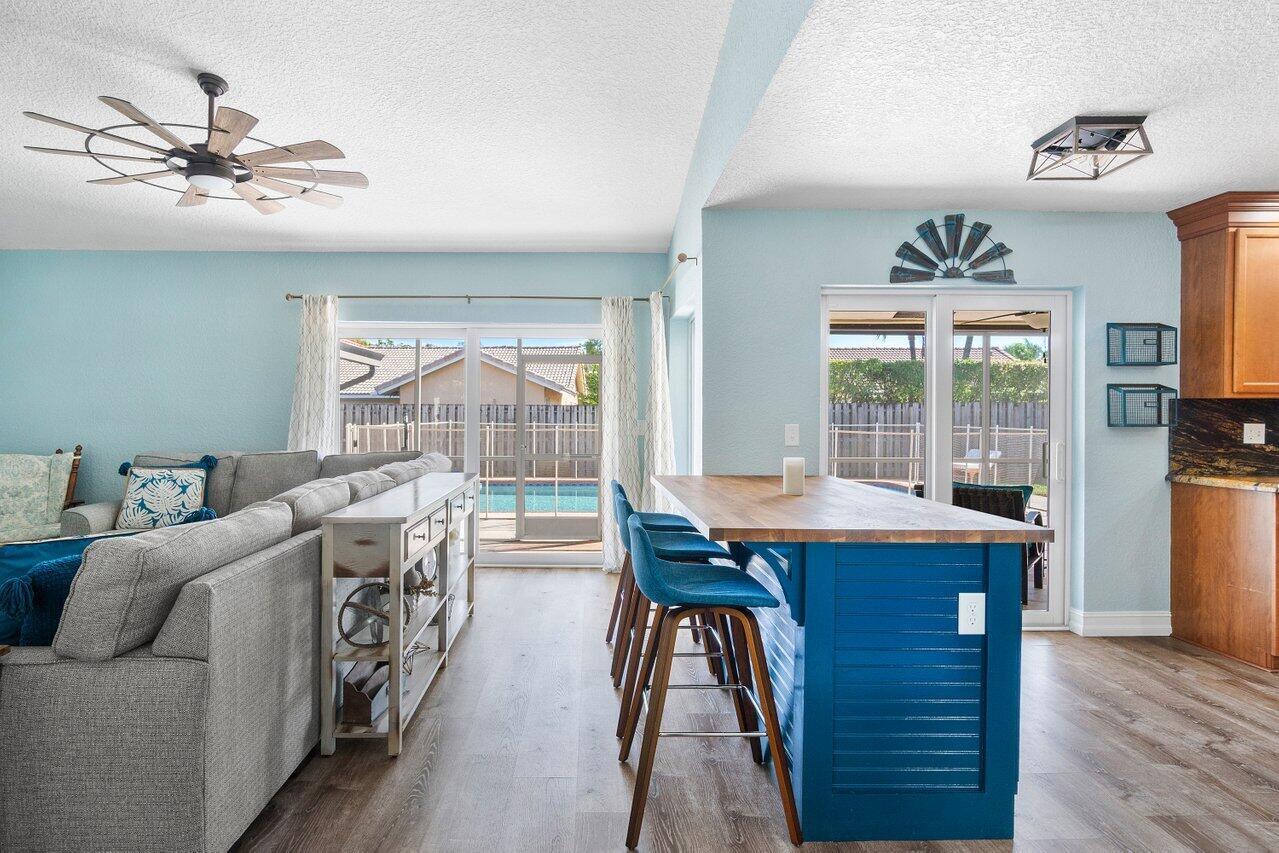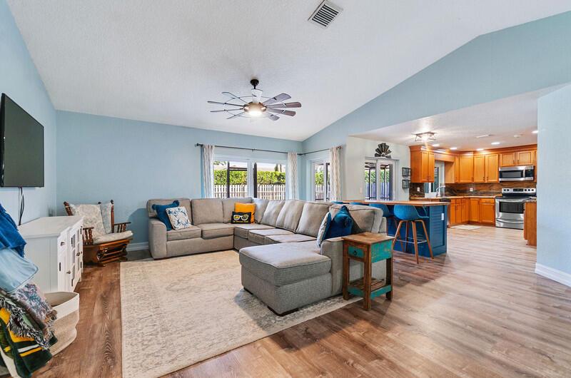 This stunning 4 bedroom, 2 bathroom single family home is located in a peaceful non-HOA community on a tranquil street. As you approach the property, you'll be greeted by a spacious driveway that can easily accommodate multiple vehicles.Step inside and be amazed by the updated flooring that flows throughout the home, creating a modern and inviting atmosphere. The kitchen is a true chef's delight, boasting sleek counter tops, stainless steel appliances, and ample cabinet space for all your culinary needs.Custom made butcher block peninsula built in closets in every room and pantry. As well as, hurricane proof windows and sliders throughout the home. Cozy up in the master bedroom which features a cabana bath and sliders!