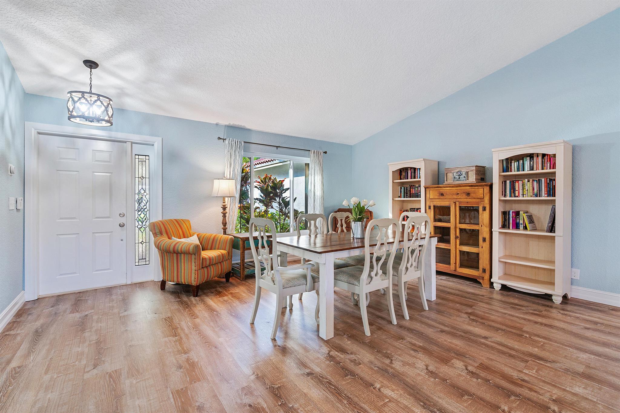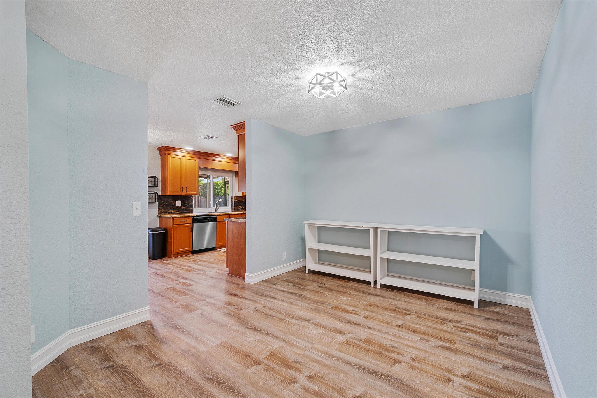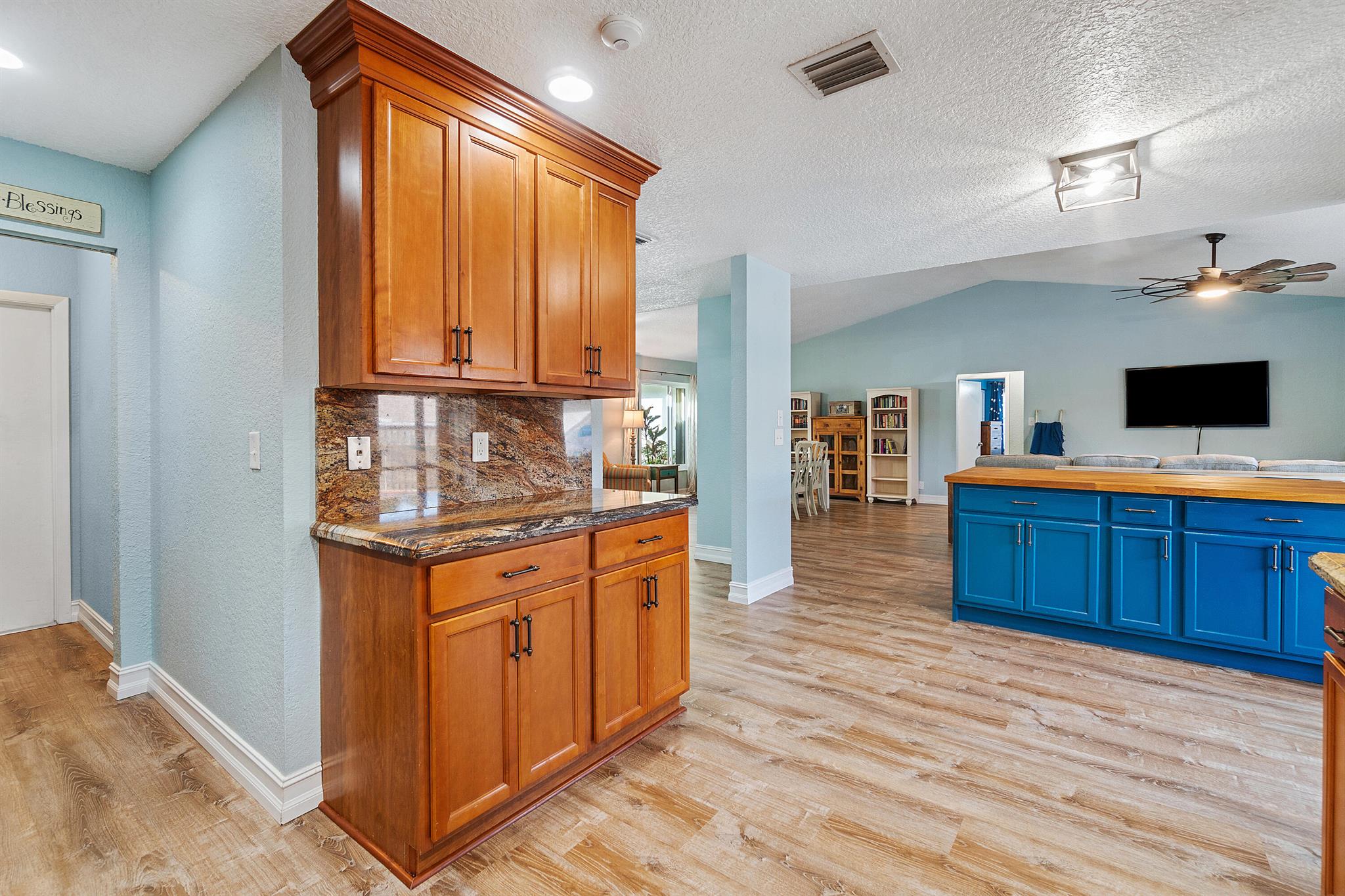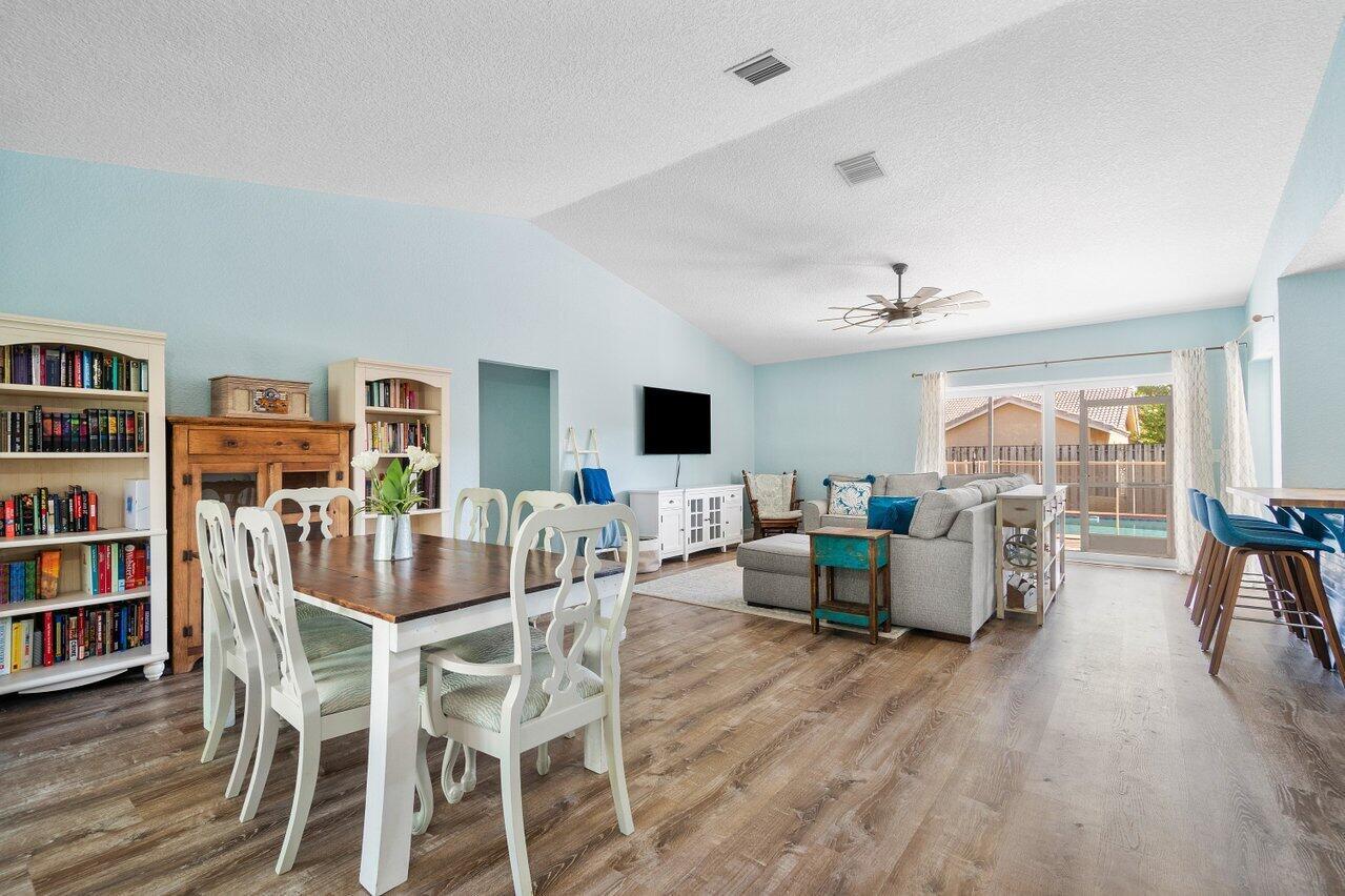 This stunning 4 bedroom, 2 bathroom single family home is located in a peaceful non-HOA community on a tranquil street. As you approach the property, you'll be greeted by a spacious driveway that can easily accommodate multiple vehicles.Step inside and be amazed by the updated flooring that flows throughout the home, creating a modern and inviting atmosphere. The kitchen is a true chef's delight, boasting sleek counter tops, stainless steel appliances, and ample cabinet space for all your culinary needs.Custom made butcher block peninsula built in closets in every room and pantry. As well as, hurricane proof windows and sliders throughout the home. Cozy up in the master bedroom which features a cabana bath and sliders!