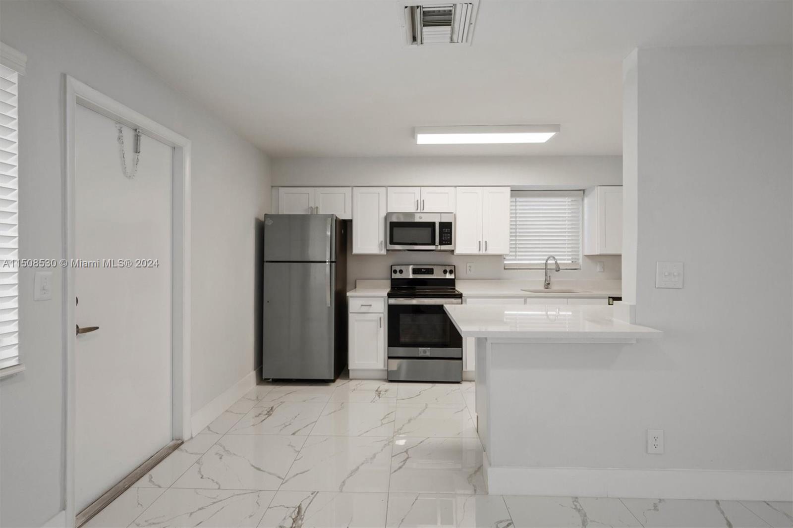 Remodeled home where every detail has been meticulously updated. Upon entering, you are greeted by a bright & airy open floor plan. The living room flows seamlessly into dining area, making it an ideal space for entertaining. The floors throughout the home have been upgraded with new porcelain tiles. Kitchen is equipped with brand new stainless steel appliances & ample cabinet space. White quartz countertop adds a modern touch. The two bedrooms are generously sized & bathroom has been tastefully updated with modern fixtures & finishes. The home also features a separate laundry & storage room. Fresh paint & updated lighting fixtures create a warm & inviting atmosphere throughout the home. Large yard for outdoor activities. Carport provides covered parking. Pictures are Virtually staged