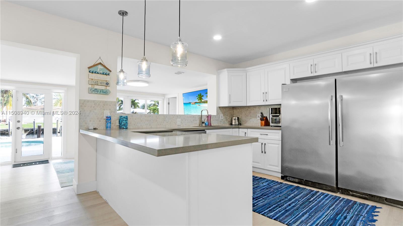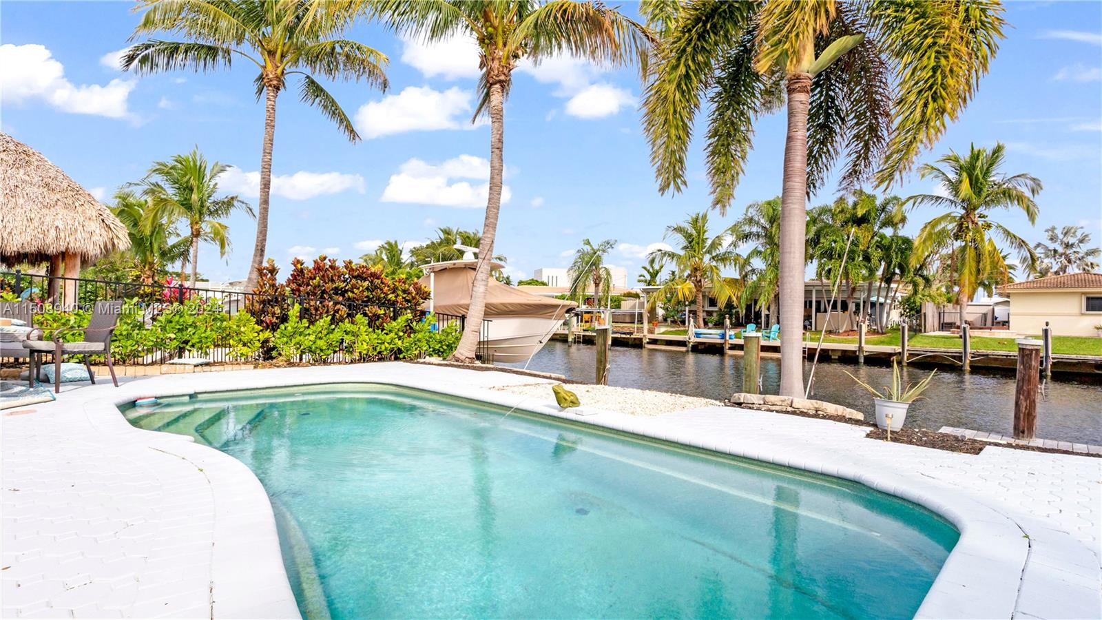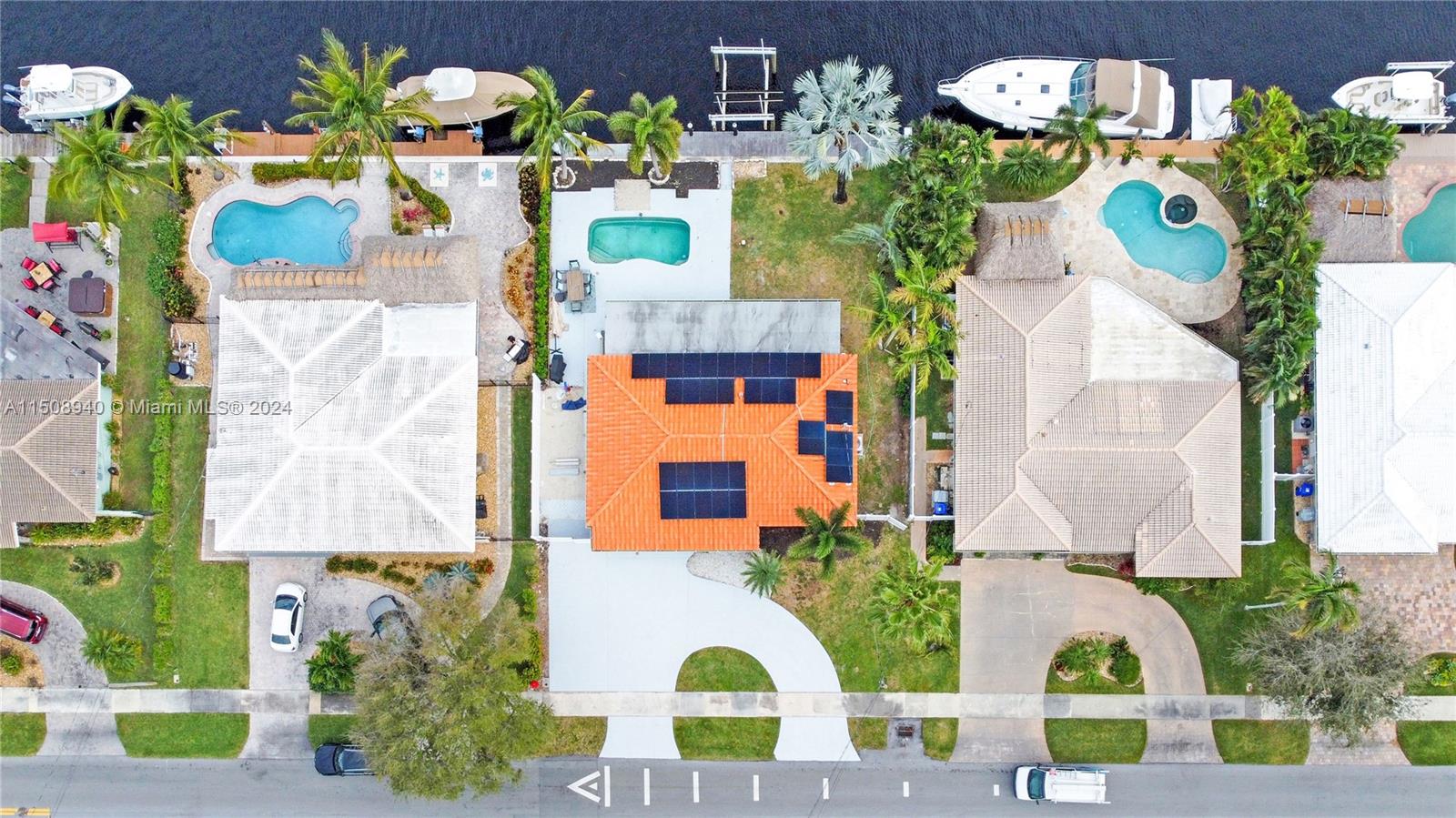 TOTALLY REMODELED OCEAN ACCESS WATERFRONT MASTERPIECE! 10 mins to the intercoastal on your large boat! This spectacular home features 4 BDRMS, 2 BATH, garage, pool and 70 ft of waterfront with ocean access. Solar panels, brand new boat lift for up to 16K lbs,. New impact windows, new ceilings with beautiful lighting, new pvc flooring, & new paint job in interior & exterior. Remodeled baths with designer touches. Kitchen boasts quartz counters, wood cabinets and even a large commercial refrigerator & freezer. New electric window treatments and spectacular view of the pool and water from the dining area. Updated circular driveway, with pvc fencing throughout. Plenty of space for parking additional toys. Pool has salt chlorinator. 1 fixed bridge with space for larger vessels. NO HOA