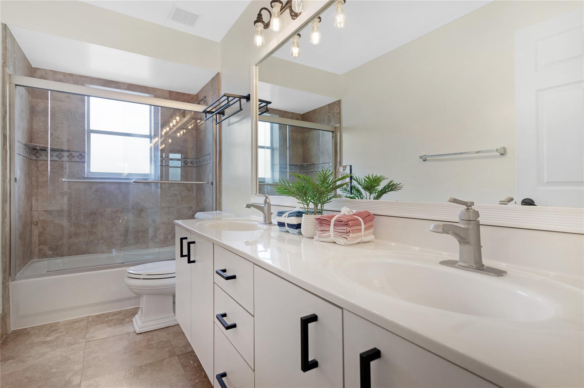 Welcome home! This 5/3 beauty in Boca Winds is not to be missed! This move in ready home has an open floor plan with breathtaking views of the pool and lake. There is a full bathroom and bedroom on the first floor. 4 bedrooms, 2 full bathrooms on the second floor. The newly resurfaced pool, pavers and new screened enclosure complete the outdoor living space. New impact front door and rear sliders. New washer/dryer combo. New second floor air handler. New nest thermostats. Roof was done in 2018. Accordion shutters on all windows. Some of the new furniture is negotiable. Formal living and dining rooms. Open kitchen with island seating and dining area. Enjoy the amenities at Boca Winds including community pool and playground. Waters Edge Elementary, Loggers Run Middle and West Boca high.