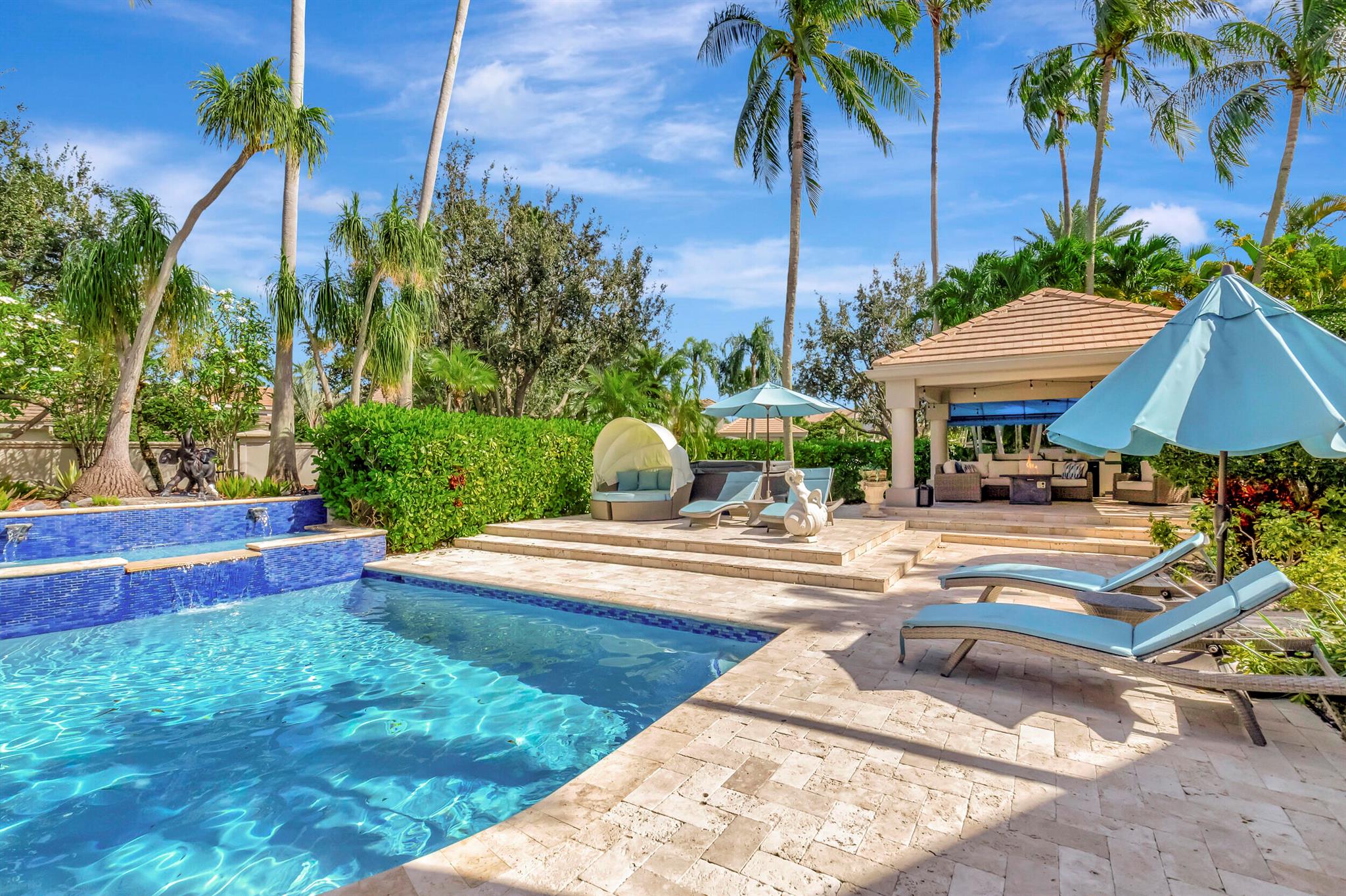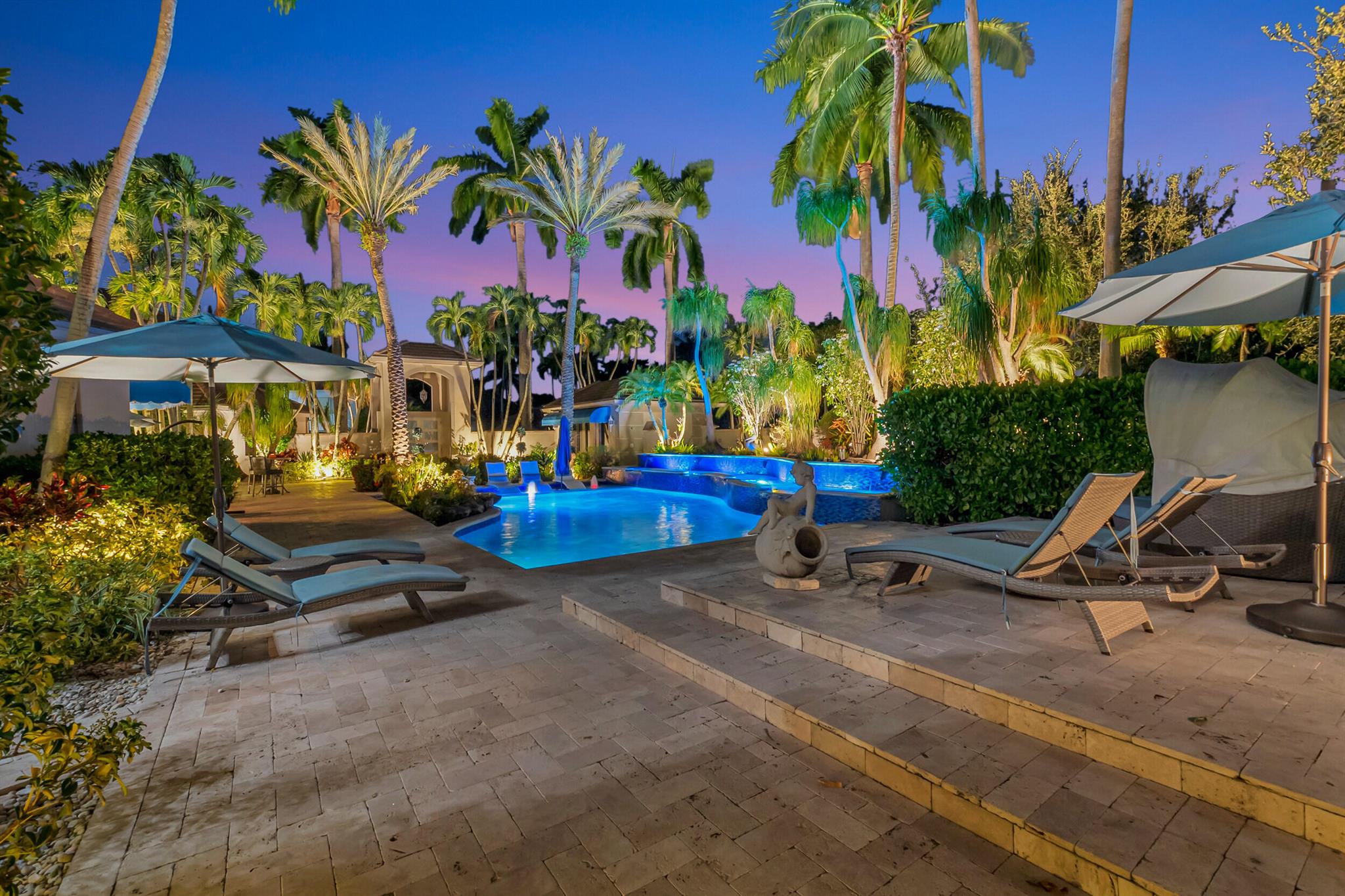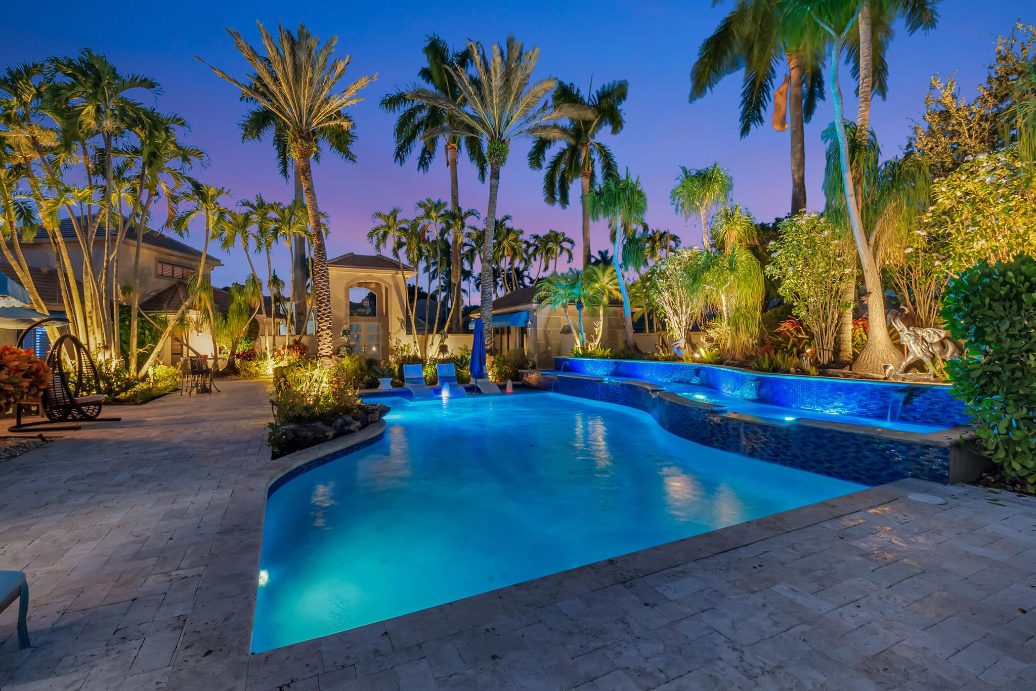Spectacular Double Lot Courtyard Estate, Massive Outdoor Resort Style Living and Patio space with Resort Style Pool and Spa and Gazebo. Separate Guest House, Luxurious Master Suite on the first floor, gorgeous master bathroom, soaring ceilings throughout the main family room, kitchen, living room, gorgeous real fireplace in the living room overlooking the dining room with natural light all over, custom wall unit with electric fireplace in the family room with 80'' TV and surround sound, all new 36'' marble floors throughout. Full suite above garage, full gym and half bath 2nd level, Guest House 1BR/1BAAbsolute showplace! Must see to appreciate! Please see Club Amenities, Fees and Dues in document section.