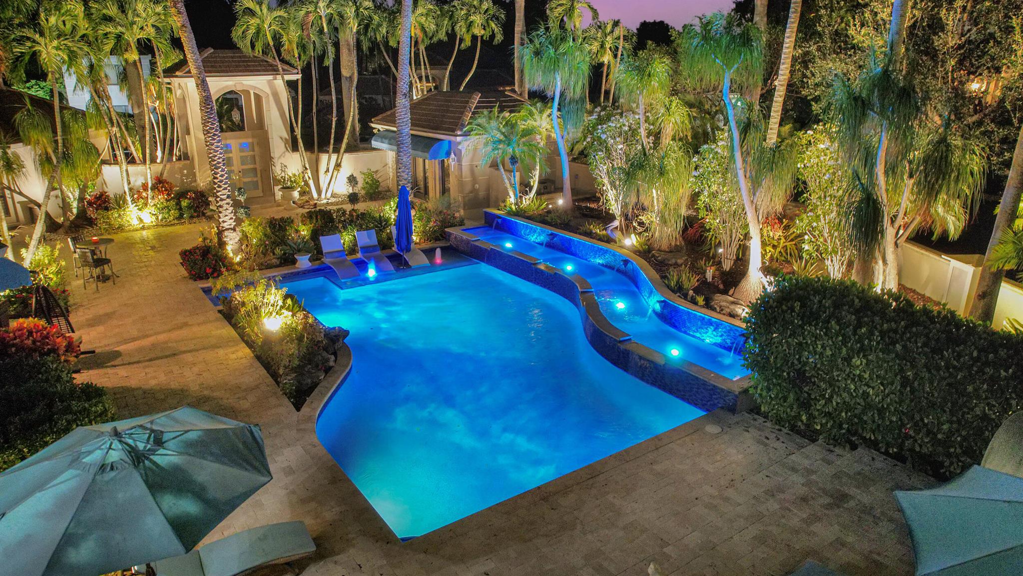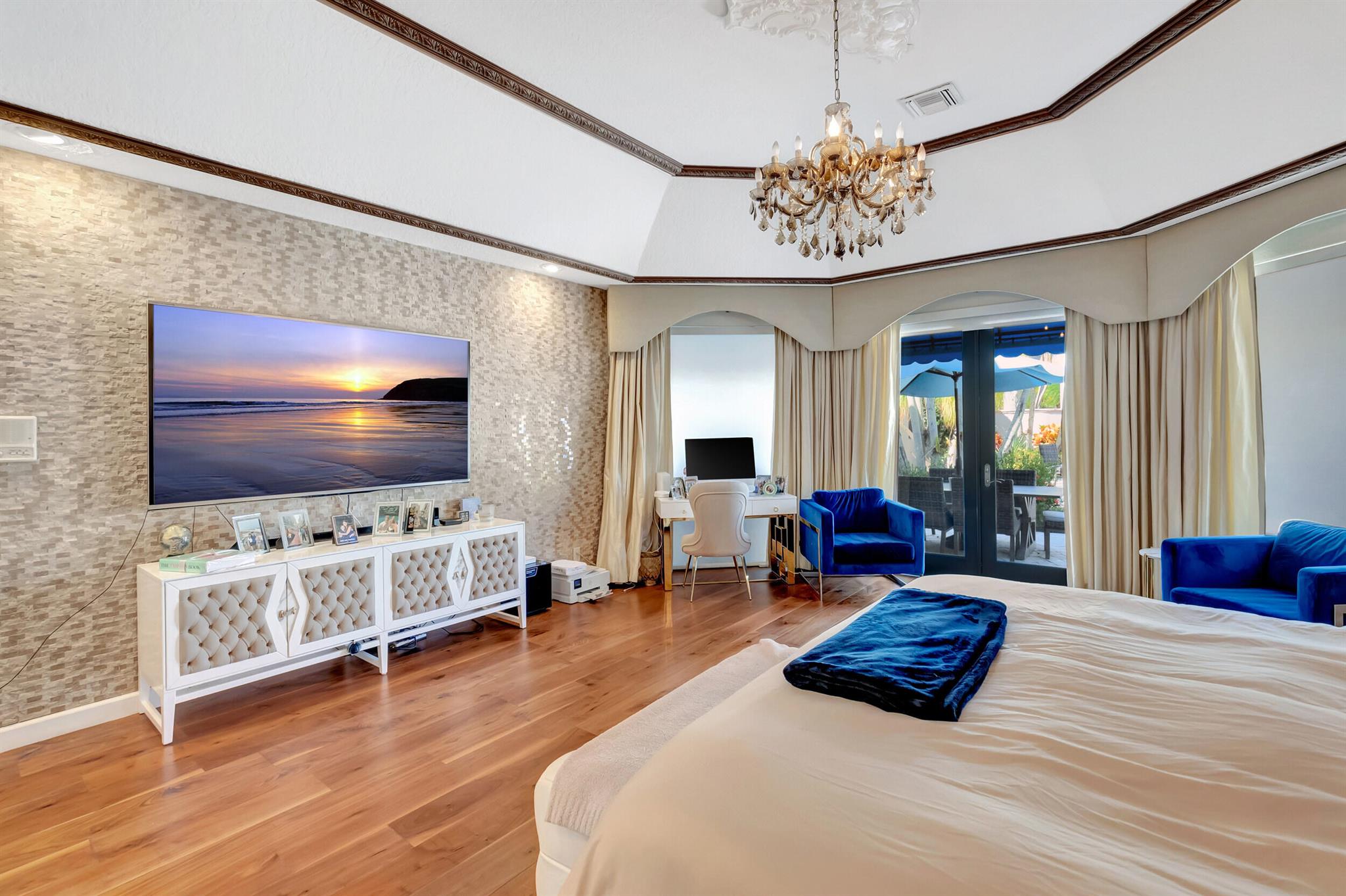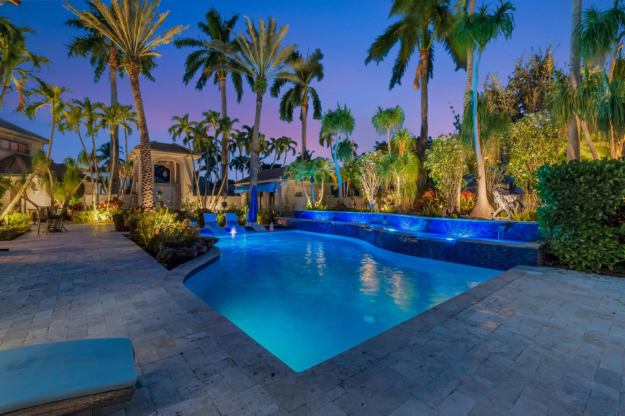 Spectacular Double Lot Courtyard Estate, Massive Outdoor Resort Style Living and Patio space with Resort Style Pool and Spa and Gazebo. Separate Guest House, Luxurious Master Suite on the first floor, gorgeous master bathroom, soaring ceilings throughout the main family room, kitchen, living room, gorgeous real fireplace in the living room overlooking the dining room with natural light all over, custom wall unit with electric fireplace in the family room with 80'' TV and surround sound, all new 36'' marble floors throughout. Full suite above garage, full gym and half bath 2nd level, Guest House 1BR/1BAAbsolute showplace! Must see to appreciate! Please see Club Amenities, Fees and Dues in document section.