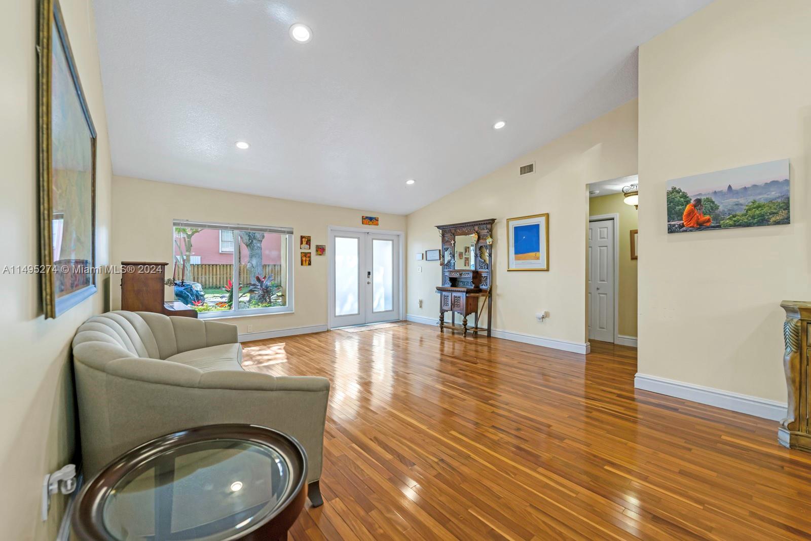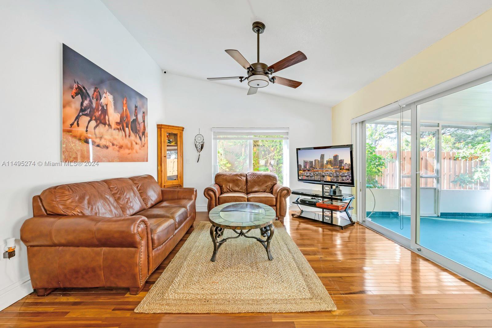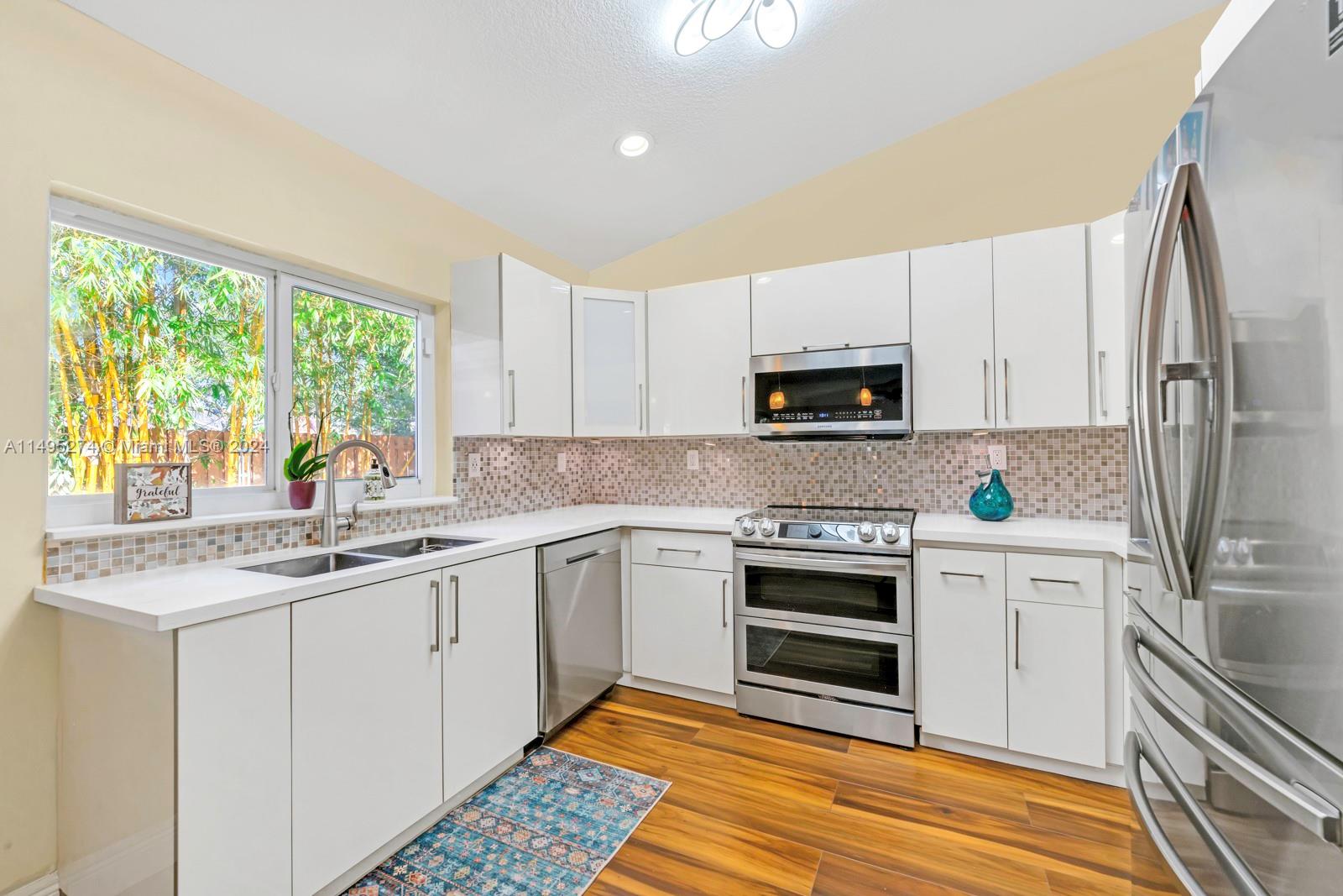 Beautiful 3 bedrooms, 2 remodeled bathrooms, 2 car garage 1800 sq. ft., one story single family home. Step inside and be greeted by a spacious living area that flows to the gorgeous updated kitchen. The kitchen is equipped with stainless steel appliances and ample storage. The master bedroom boasts an en-suite bathroom, featuring handcrafted vanities with marble counter tops. Fenced backyard oasis with screened in covered porch, beautiful bamboo landscaping and space for a pool. Brazilian hardwood flooring, impact windows and doors throughout. Located within a gated community ensuring privacy and with 24-hour security. The community also features low HOA fees, offering clubhouse amenities.