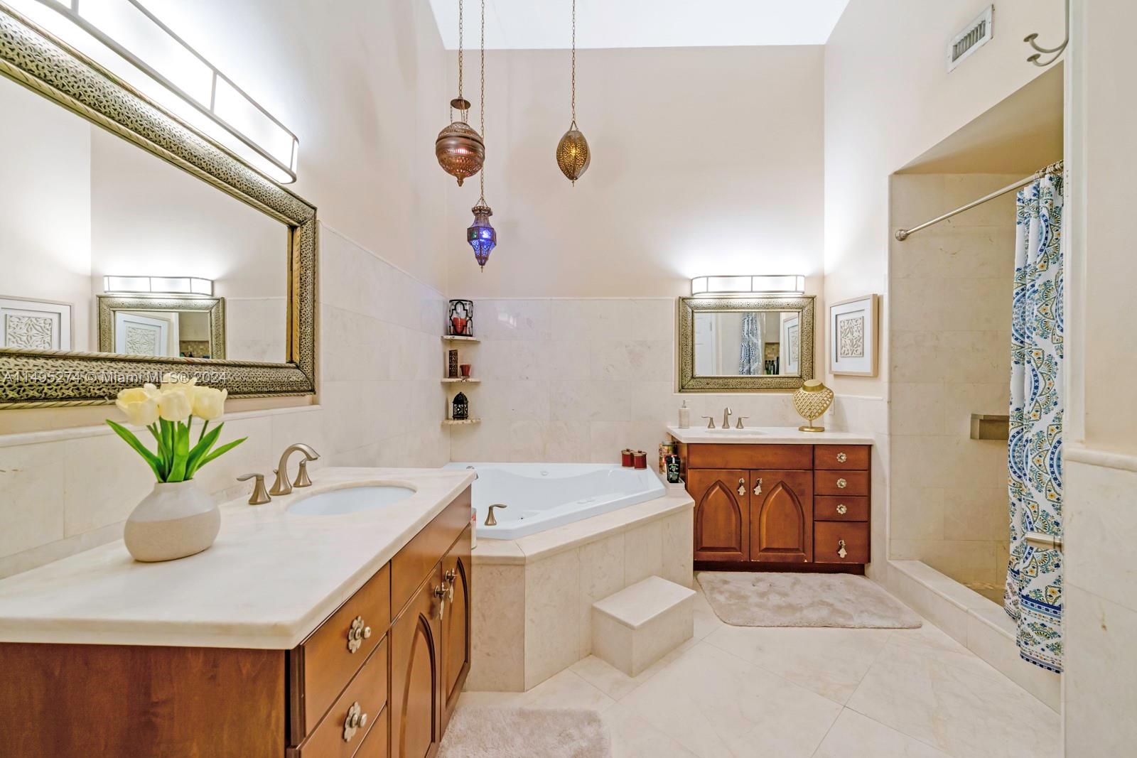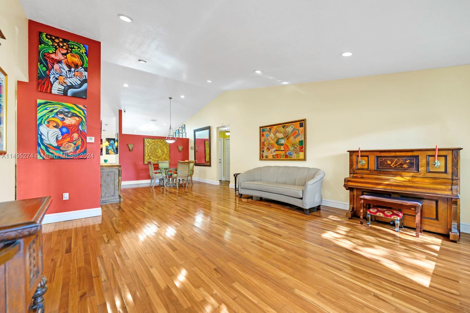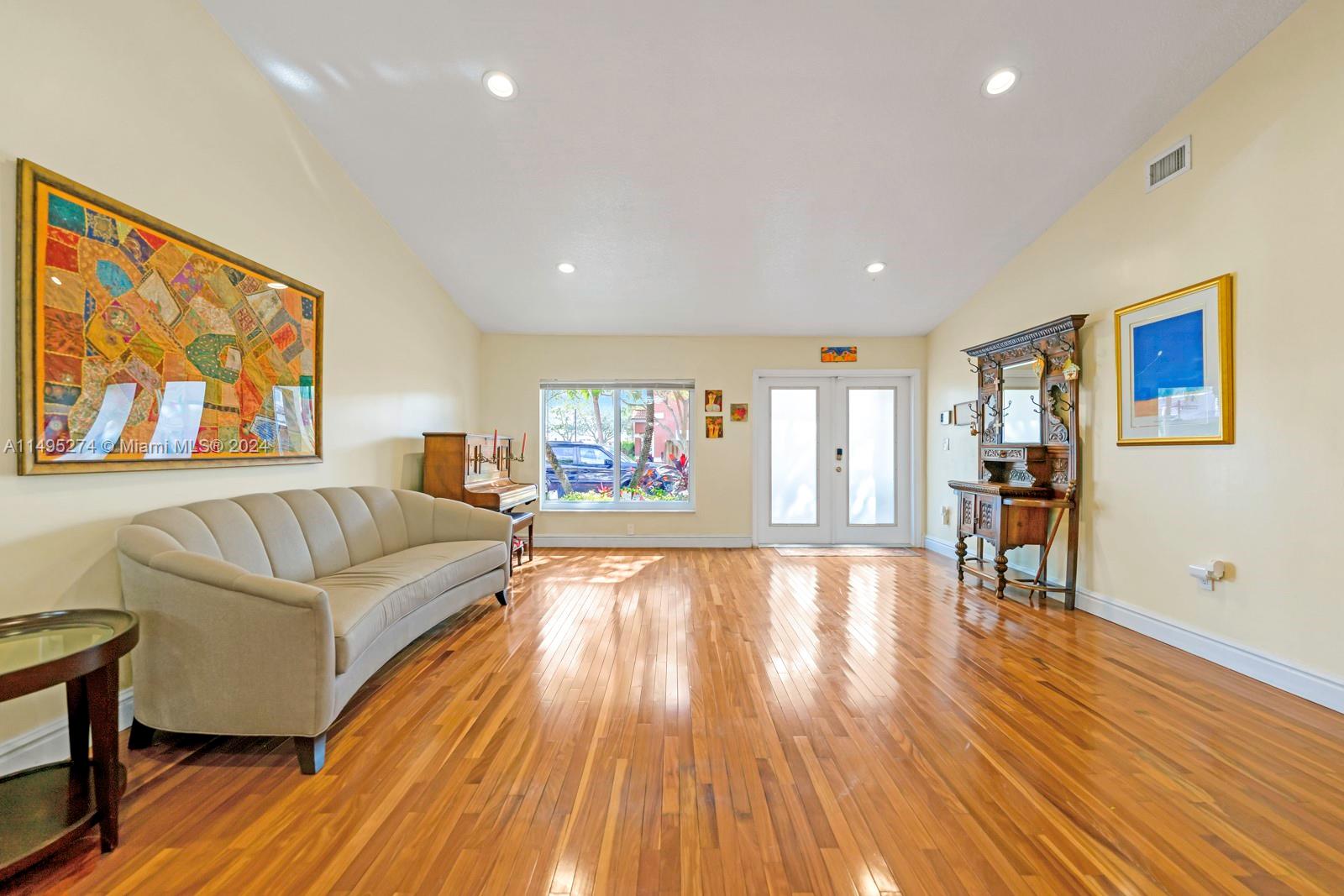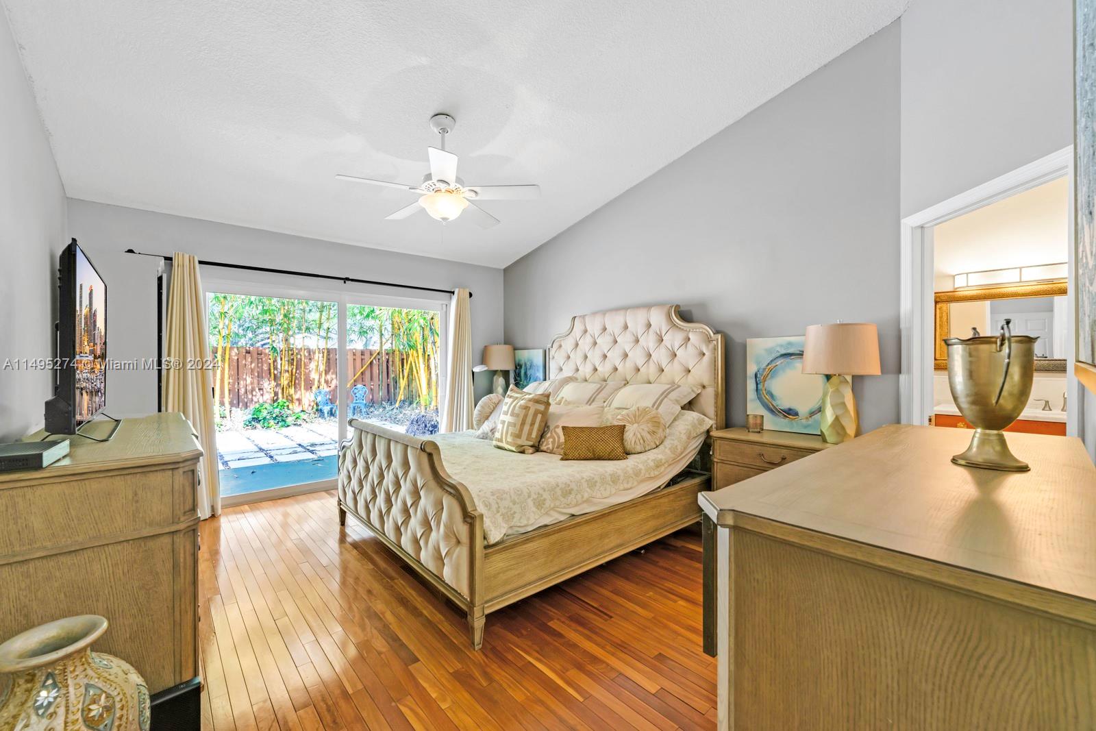 Beautiful 3 bedrooms, 2 remodeled bathrooms, 2 car garage 1800 sq. ft., one story single family home. Step inside and be greeted by a spacious living area that flows to the gorgeous updated kitchen. The kitchen is equipped with stainless steel appliances and ample storage. The master bedroom boasts an en-suite bathroom, featuring handcrafted vanities with marble counter tops. Fenced backyard oasis with screened in covered porch, beautiful bamboo landscaping and space for a pool. Brazilian hardwood flooring, impact windows and doors throughout. Located within a gated community ensuring privacy and with 24-hour security. The community also features low HOA fees, offering clubhouse amenities.