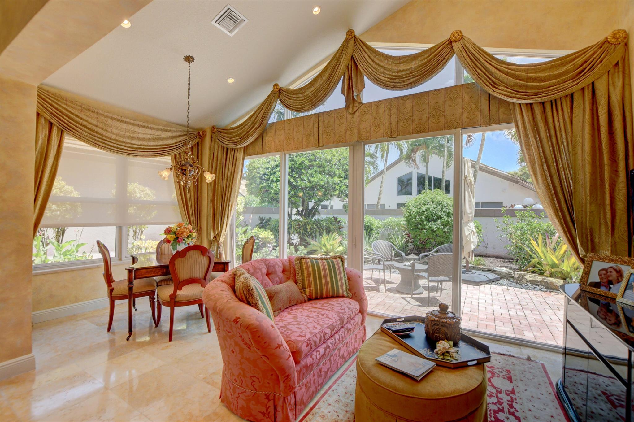 Fabulous community of Broken Sound. The contemporary design home features, 3b, 2 1/2 baths. Jerusalem stone flooring, updated kitchen with sub zero refrigerator, Bosh Dishwasher, all granite counters, custom designed cabinets, all with pull out drawers. Fabulous side glass window box that brings in natural light. The split floorplan has high ceilings thru-out. The family room has been extended to increase your overall living space to over 2,300 sf. The home has (2) a/c zones. Fabulous amount of fitted closets, not only in the primary room but through out the entire home. Primary bath is updated with dual sinks, new cabinetry, custom designed ''make up'' area. The 2 car garage has epoxy floors, plus custom built cabinetry. The lush landscaped backyard is wonderful for entertainment.