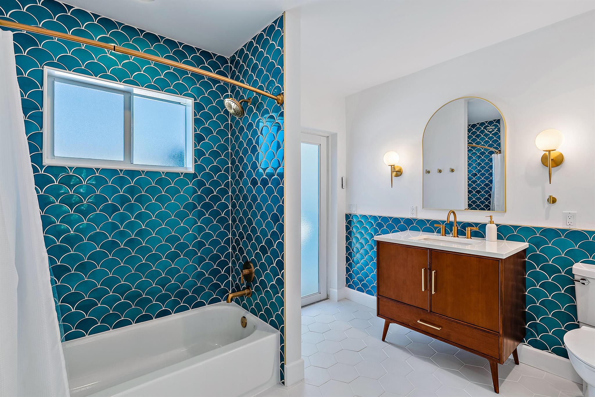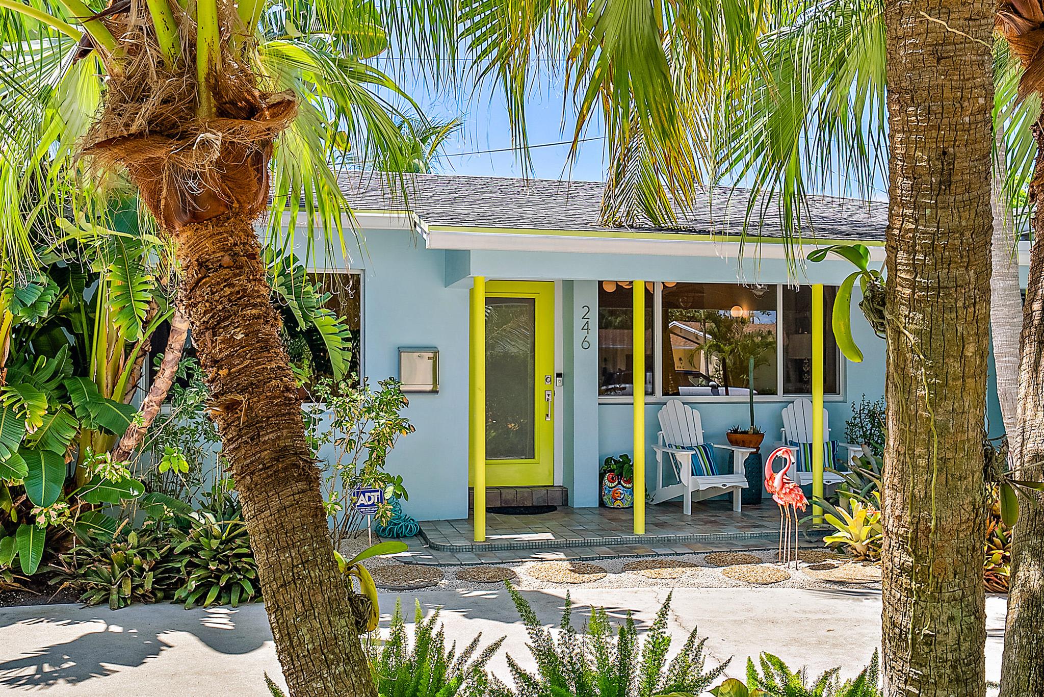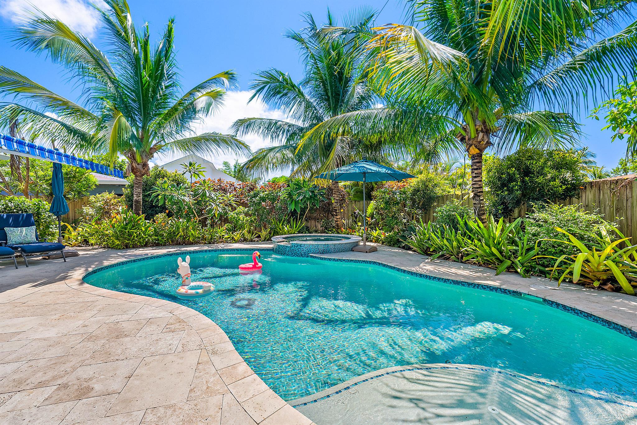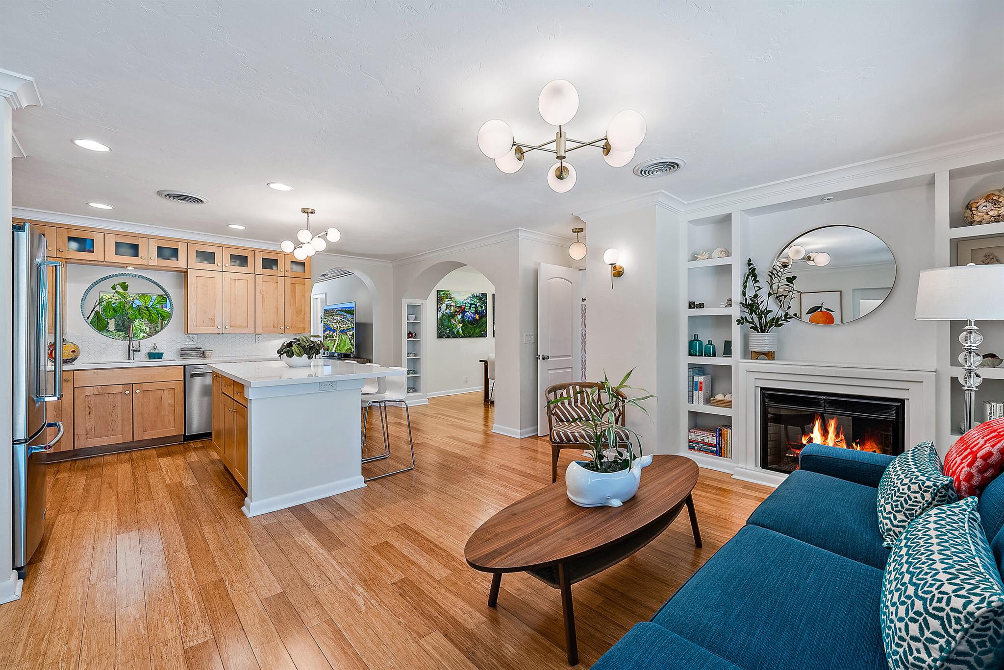 Introducing an exquisite 4 bed/2 bath 'SoSo' residence with Mid-Century Modern charm! Nestled in the desirable South of Southern neighborhood, this home boasts stunning updates & meticulous upkeep. Features: all impact windows/doors, beautifully renovated kitchen, bathrooms, & laundry room, engineered bamboo flooring, a tankless gas water heater & charming fireplace. Beyond the threshold lies an enchanting tropical paradise, complete with lush native plants. The fully fenced outdoor oasis beckons with a salt/heated swimming pool & spa. Ample space for grilling, entertaining, & lounging in the shade. Walk or ride your bike along the Intracoastal Waterway/Flagler Drive. This SoSo gem is truly a must-see for those seeking a harmonious blend of comfort, style, & convenience.