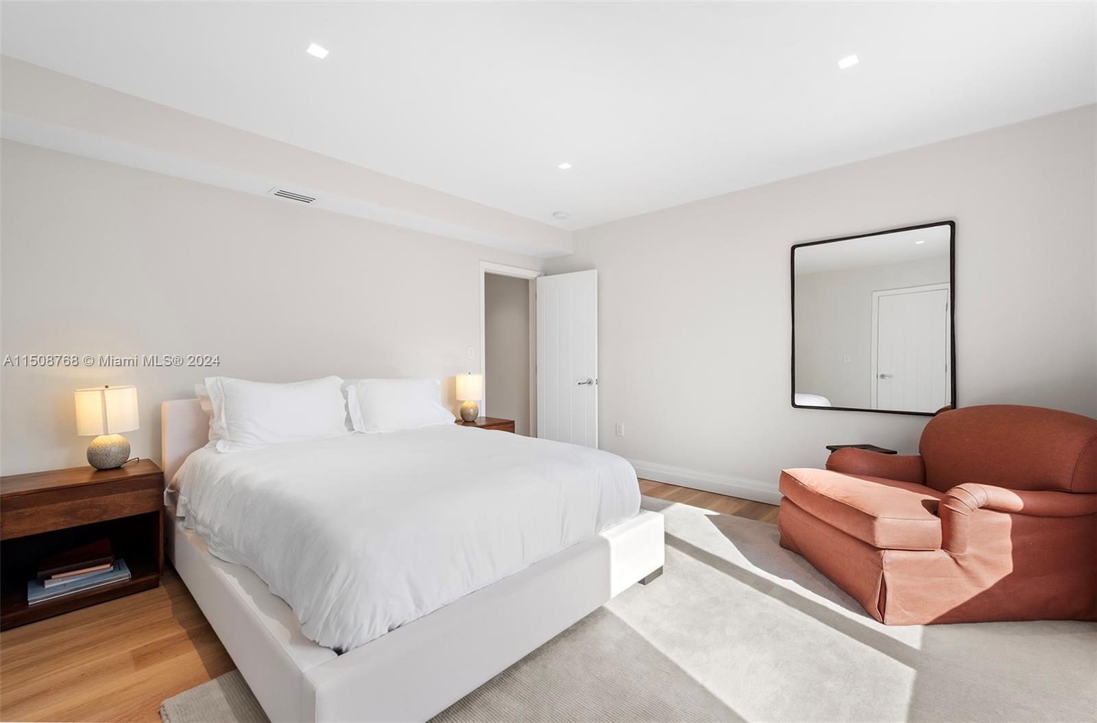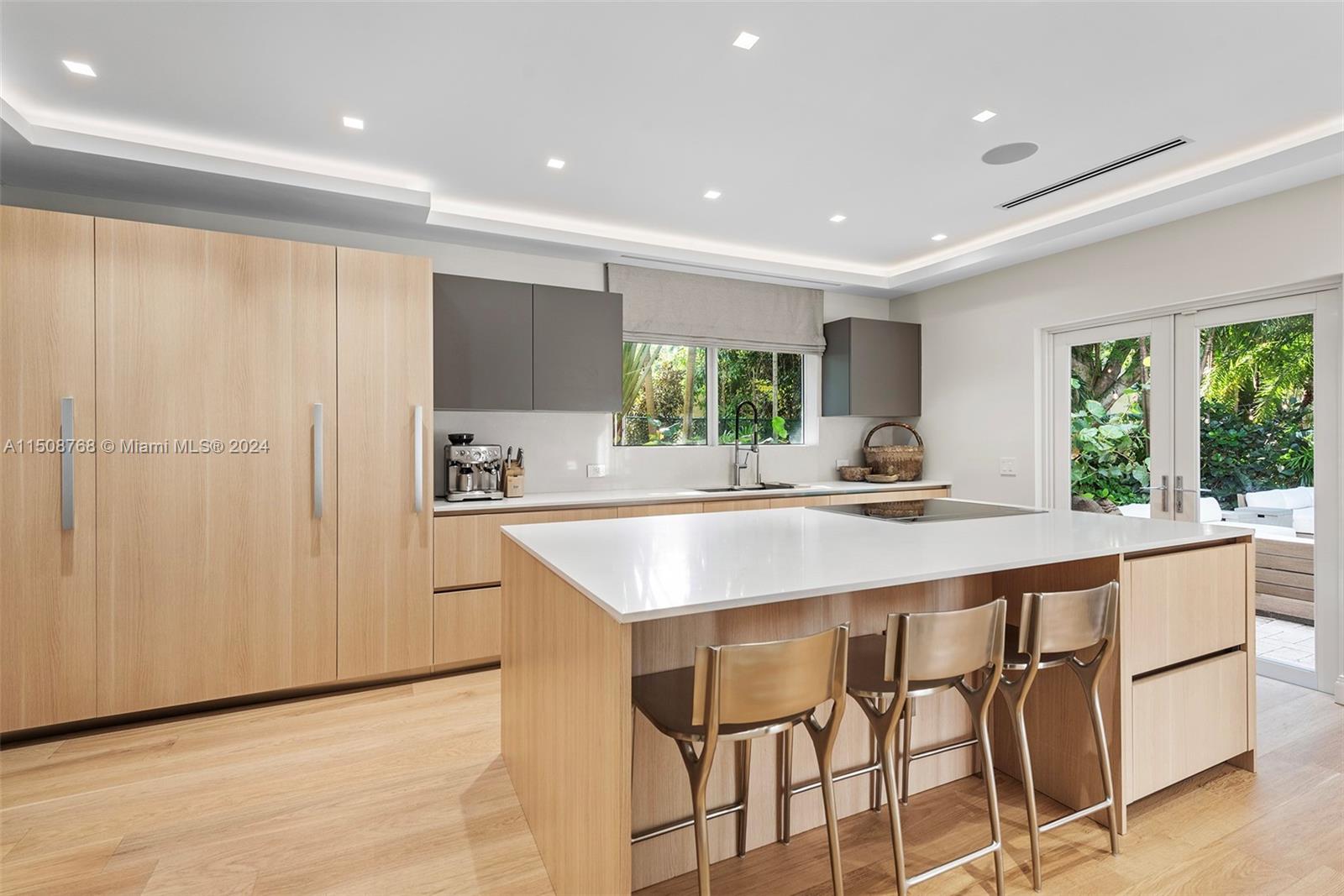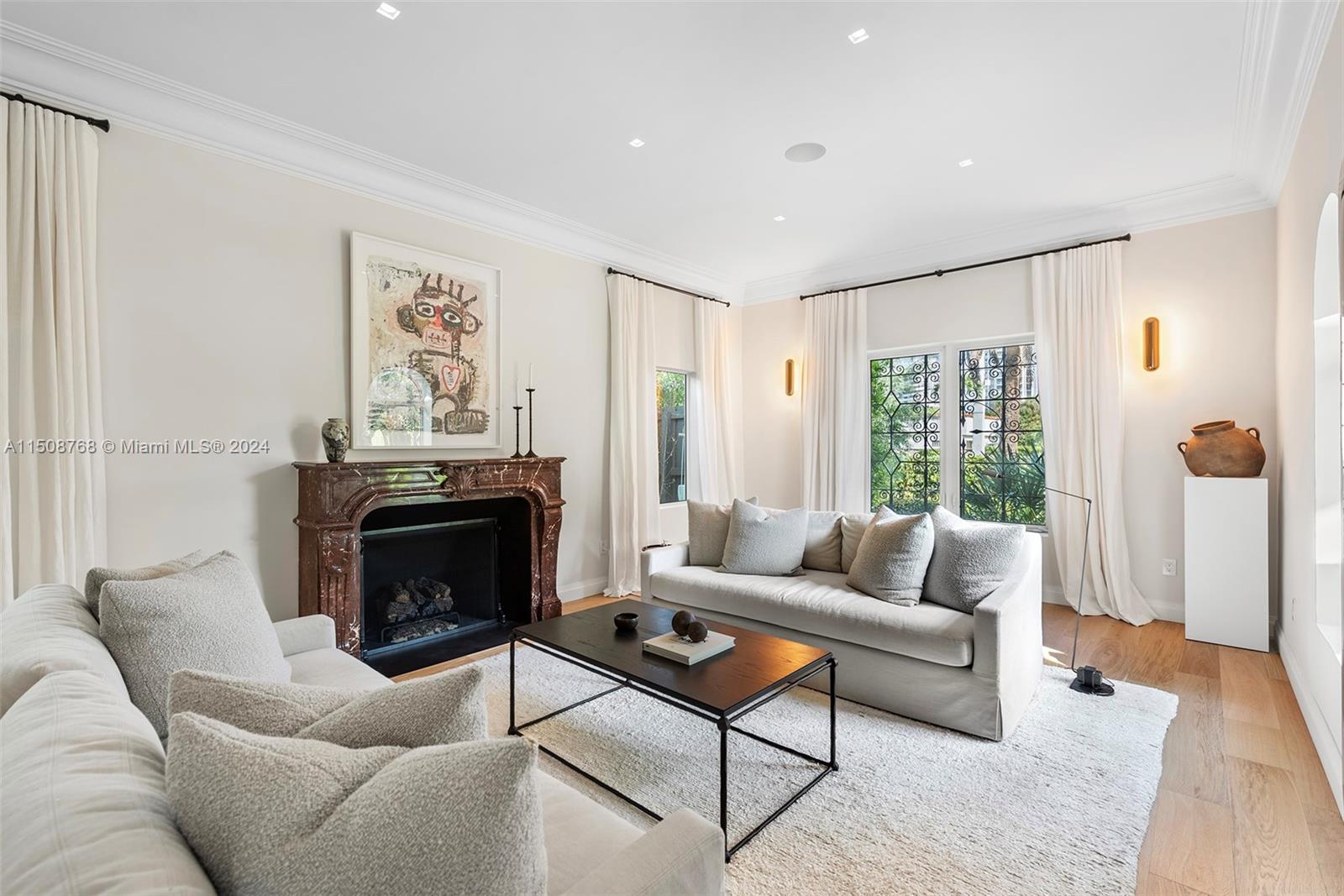 No expense was spared while remodeling this gated 2-story, 5-bed/ 3.5-bath home on prestigious Pine Tree Drive! Standout details include a large Arrital Italian kitchen w/ Miele and SubZero appliances, butler’s pantry, formal dining room, home theater, summer kitchen & stunning bath w/ book-matched Arabescato marble. Modern finishes include impact windows, new oak flooring, linear diffusers, Smart Home Crestron system controlling lighting, shades & 5 music zones, mosquito system and security cameras. A large living room w/ a Louis XV gas fireplace shipped from Europe & spacious backyard overlooking lushly manicured grounds. Oversized primary suite with a generous walk-in closet & marble bath exudes luxury. Premier neighborhood close to beach, A+ schools, La Gorce Country Club & top dining.