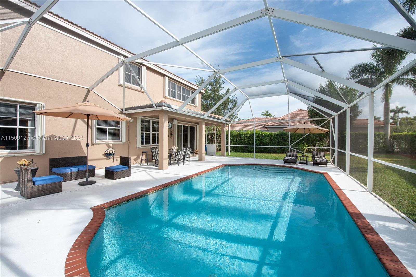 "Explore unparalleled living on this expansive property featuring a 6-bed, 4-bath corner unit with a screened pool area. Recently renewed kitchen, 2-car garage with 3 car parking driveway, and a bedroom downstairs offer both style and convenience. Located near Weston Public Library, Falcon Cove Middle School, and Cypress Bay High School, this residence boasts a clubhouse with pool, tennis court, and walking spaces. Enjoy a large master suite with a private dressing area, ensuring comfort and privacy. Notably, the house sits on a huge lot, providing ample outdoor space for your vision and lifestyle. Accordion hurricane shutters add an extra layer of security to this exceptional property."