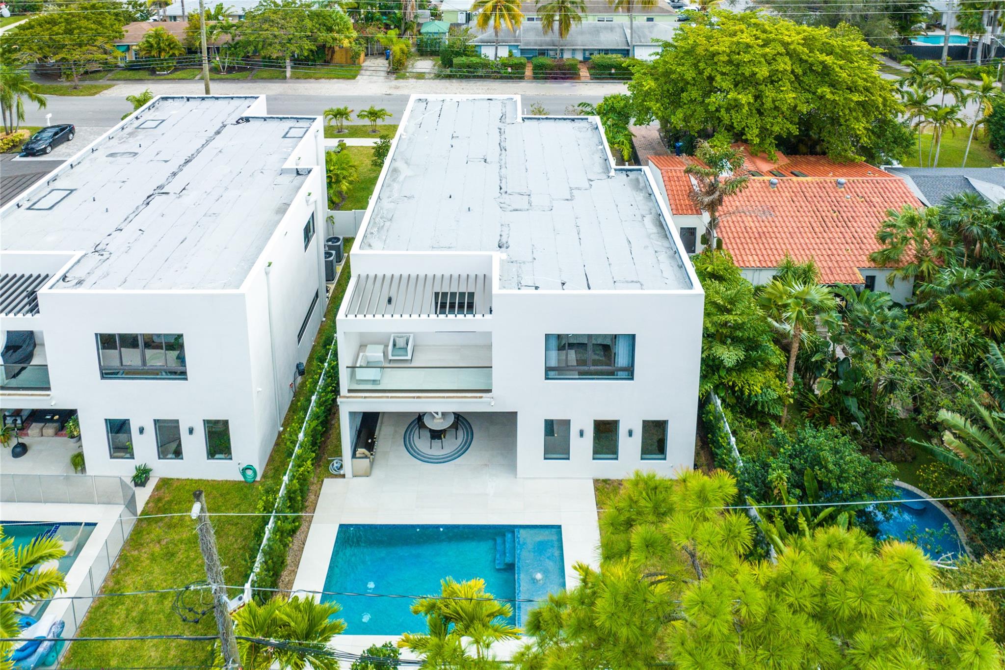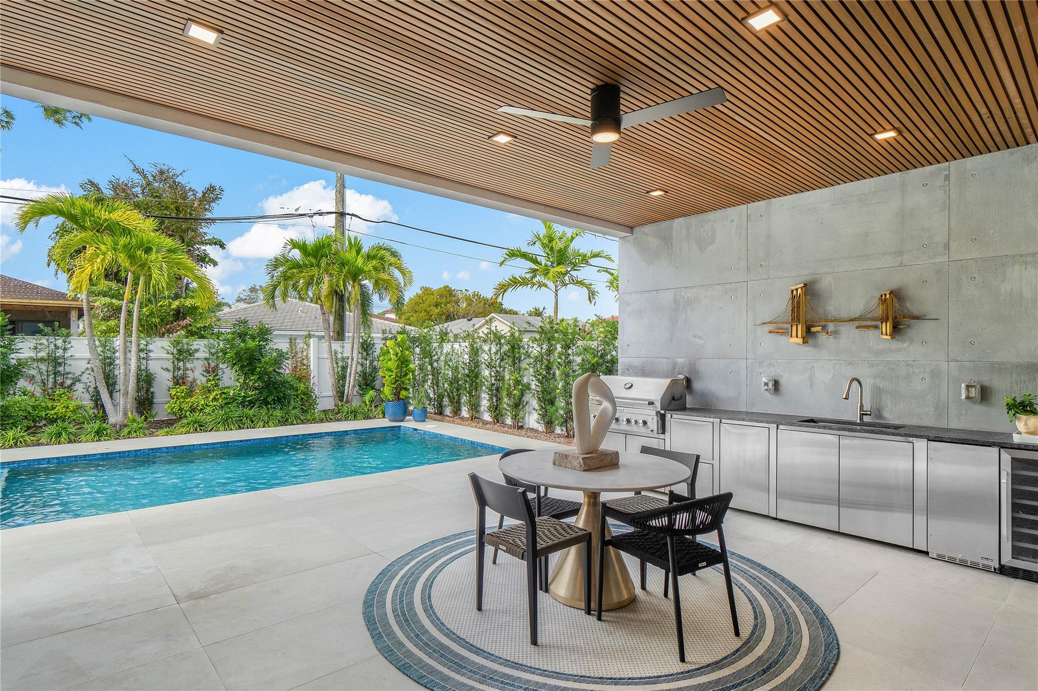 Victoria Park Perfection! This 2-story home redefines upscale living in Victoria Park. Spanning 3,756 sq ft under air, 4 large bedrooms and 4 1/2 bathrooms. The open-concept first floor features a chef's kitchen, a living and dining area that opens to a private yard with a heated saltwater pool, summer kitchen, and covered patio. The lower level includes one bedroom with a cabana bath, a half-bath, and a 2-car garage. Primary bedroom has balcony overlooking pool, double custom walk-ins and bathroom with double-sink floating vanity, soaking tub, and dual-head shower. Second floor has bonus room ideal for a den, office, or media room, along with a laundry room. High ceilings and impact windows offer natural sunlight, complemented by a dramatic floating staircase. Attached features sheet.