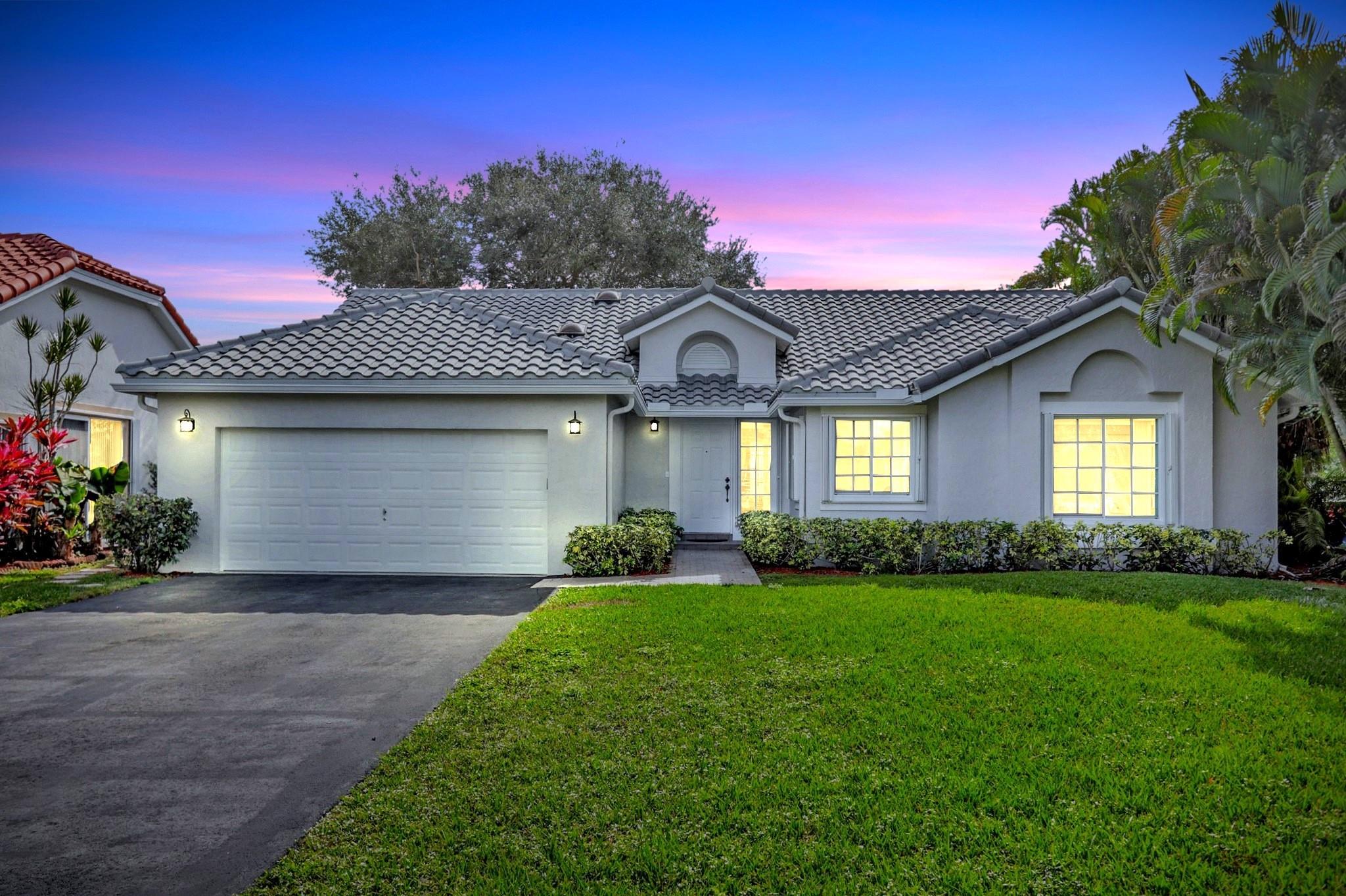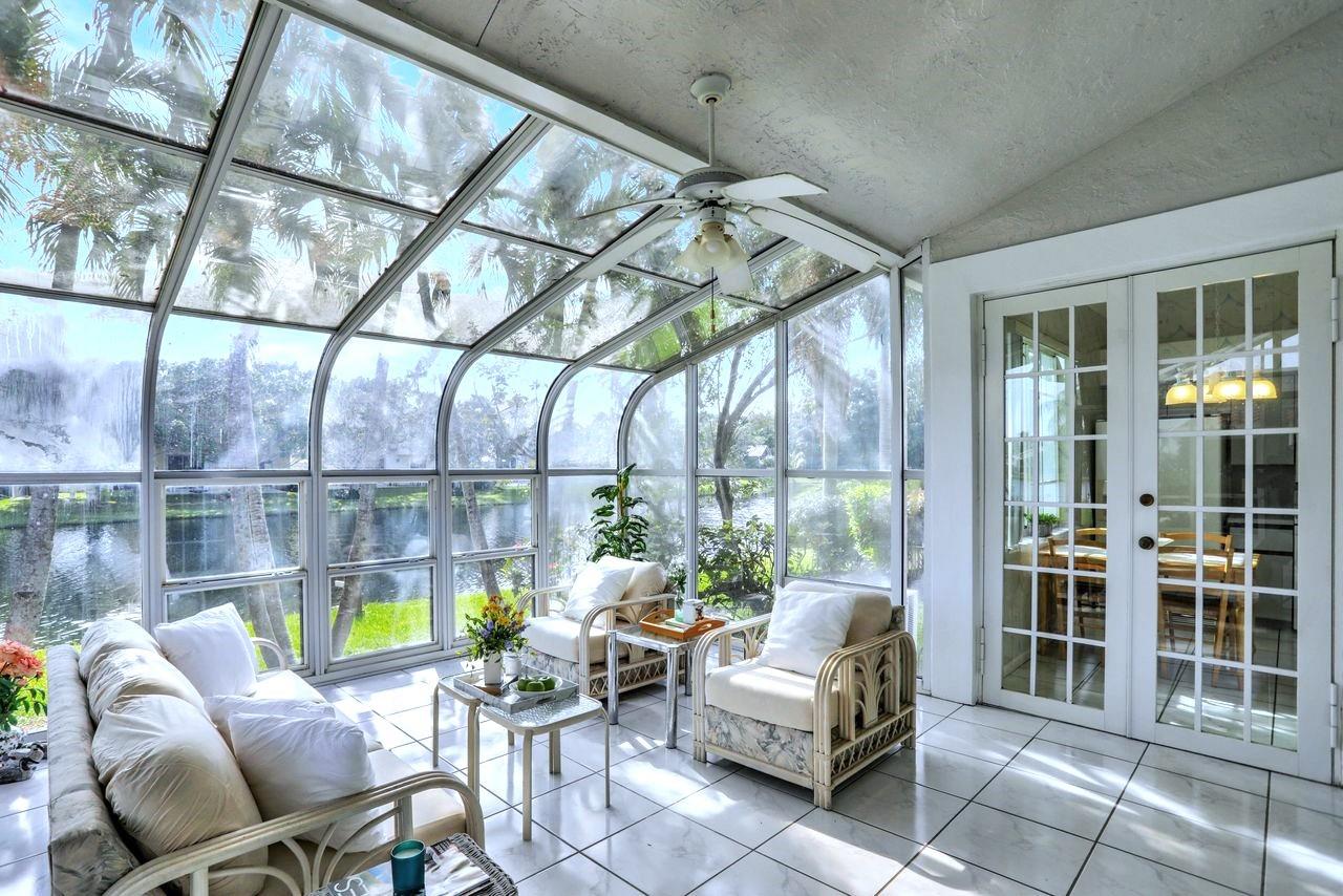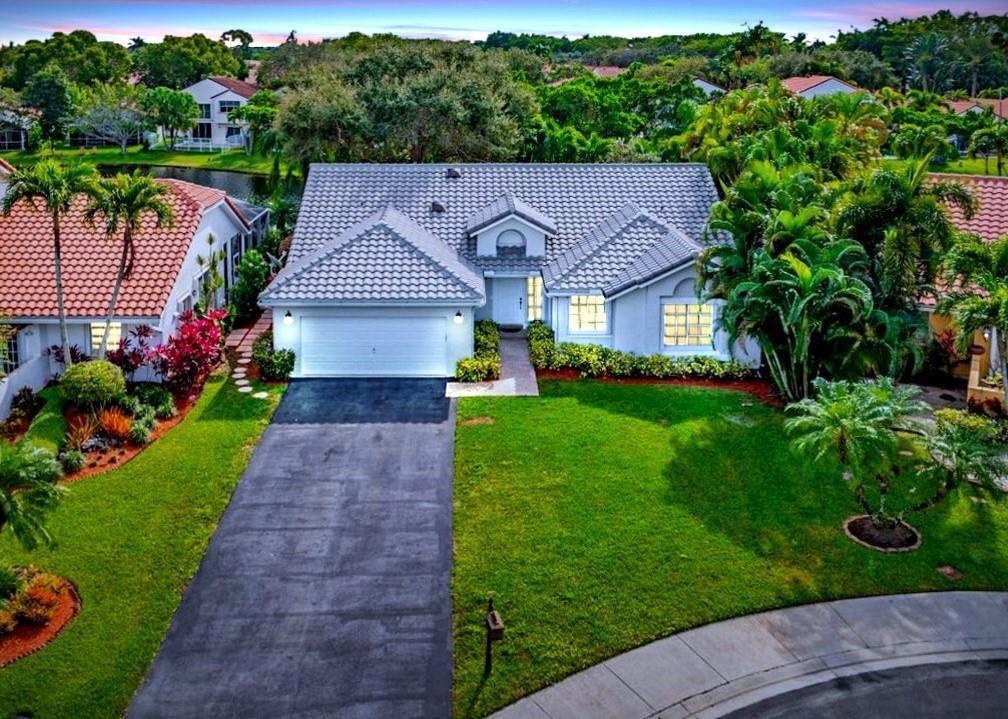 Nestled in a cul-de-sac niche on a gorgeous lakefront lot with picturesque water views, this charming single-story Weston home features a unique air-conditioned glass-enclosed tiled sunroom that extends the living area, plus an adjacent covered patio, screened for year-round outdoor comfort. The home is set back from the road with an expansive front lawn & long driveway that can accommodate multiple cars. The largely original interior is light & bright with a spacious split floor plan, high ceilings, huge arched windows & several sets of French doors that lead to the picture-perfect indoor-outdoor area. NEWER features include ROOF 2018, AC 2017, accordion shutters & wood-look porcelain floors 2021. Gated boutique comm, clubhouse w/pool. Near A+ schools, Houses of Worship, shops & parks.