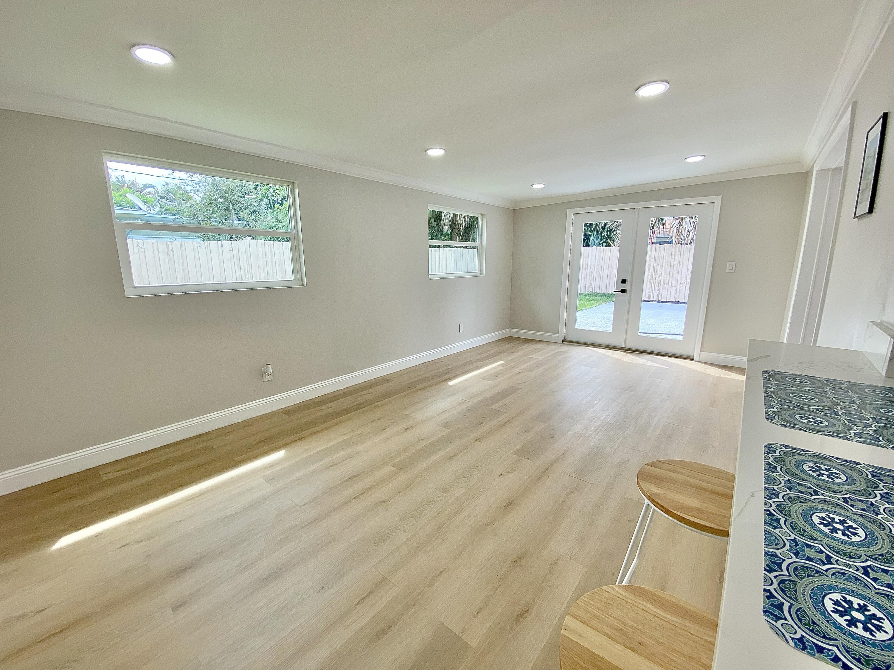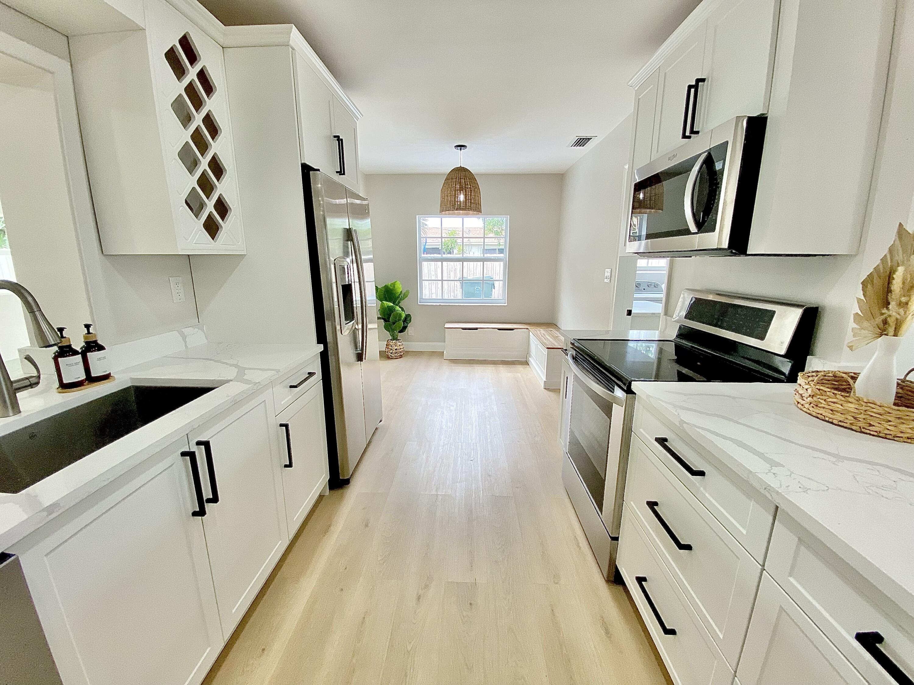 Incredible value & priced to sell! Absolutely stunning corner lot house in East Boca! This home boasts 4 Bed /2 Bath/ 1 CG. Interior professionally designed w/ high quality materials & finishes. Brand New Roof (July 2023). Full Impact Windows & Doors. PVC PIPES FROM ROAD TO THE HOUSE ($20k VALUE). Masterful eat-in kitchen complete w/ white cabinetry, quartz countertops, waterfall, & SS appliances. New Built-in sound system! Duralux waterproof flooring throughout. Spacious master suite has a frosted glass barn door & gorgeous bathroom. Guest bath has a coastal contemporary feel. Fully equipped & completed laundry room. Outdoor area has fresh grass, large patio space, & deck! Excellent location minutes from Brightline, Beach & DT. No HOA - Bring your boat.