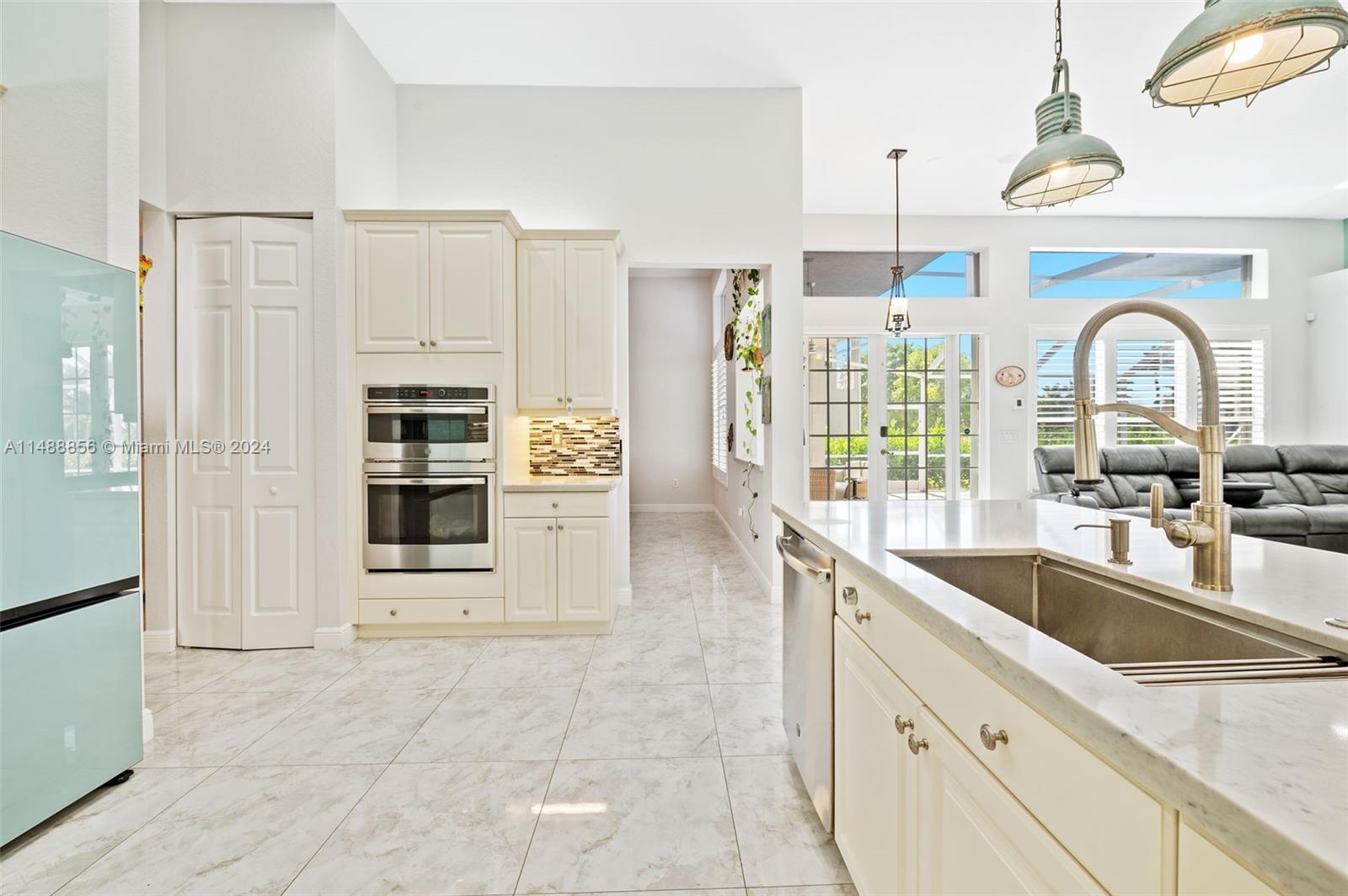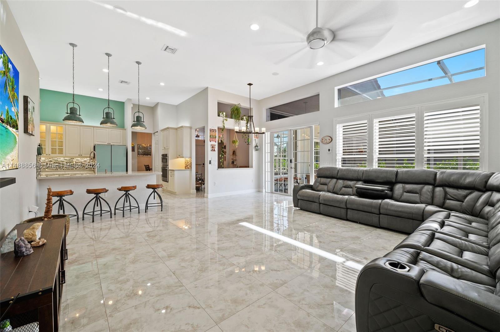 PRICED TO SELL! Welcome to this amazing home in Sunset Lakes, gracing just over a ¼ acre with a stunning view of the lake from the backyard. This home features endless upgrades with renovated kitchen & bathrooms, porcelain floors throughout, wood floors in the bedrooms, plantation shutters, new closets, SMART washer & dryer, security system and AC. New kitchen sink, new pool cleaning robot & storm protection accordion shutters. Artfully designed for entertainment, this home blends an open-concept interior with an alluring screened pool area & a meticulously crafted outdoor kitchen & grill great to enjoy with family & friends. The saltwater pool has recently received a makeover with resurfacing, new tile, pump & heater, automated Aqualine system, LED lighting, & refined travertine accents.