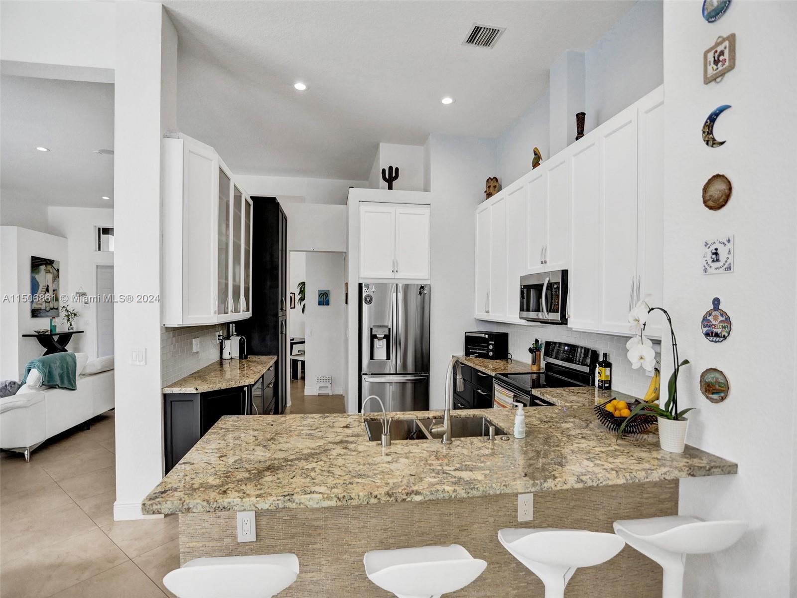 This stunning residence boasts a triple split floor plan with 5 bedrooms, 3 baths, and a 3-car garage, offering ample space for luxurious living in the prestigious Cove III neighborhood of Savana in Weston, where this spectacular dream home awaits you. As you step inside, you'll be greeted by 10-12 ft ceilings, custom made cabinetry, and elegant granite countertops. The kitchen features new appliances, including a fridge and microwave. Step outside to discover the inviting backyard, complete with a fully fenced pool area with lake view. The expansive outdoor space is ideal for entertaining. Located in a gated community, with access to resort-style amenities. A+ rated schools and minutes to parks, restaurants and shops. A+ rated schools. 2016 Roof. Schedule a showing today!