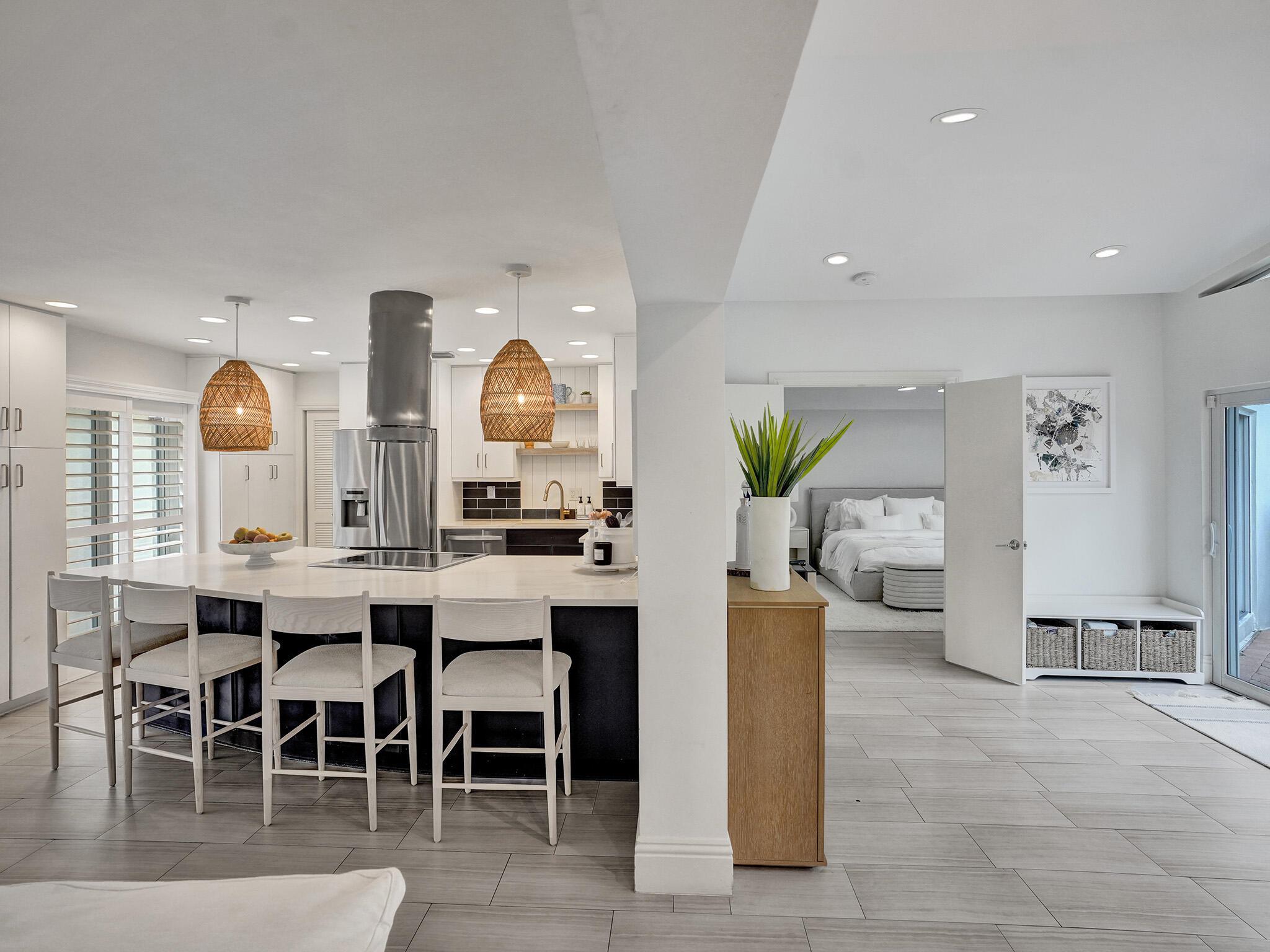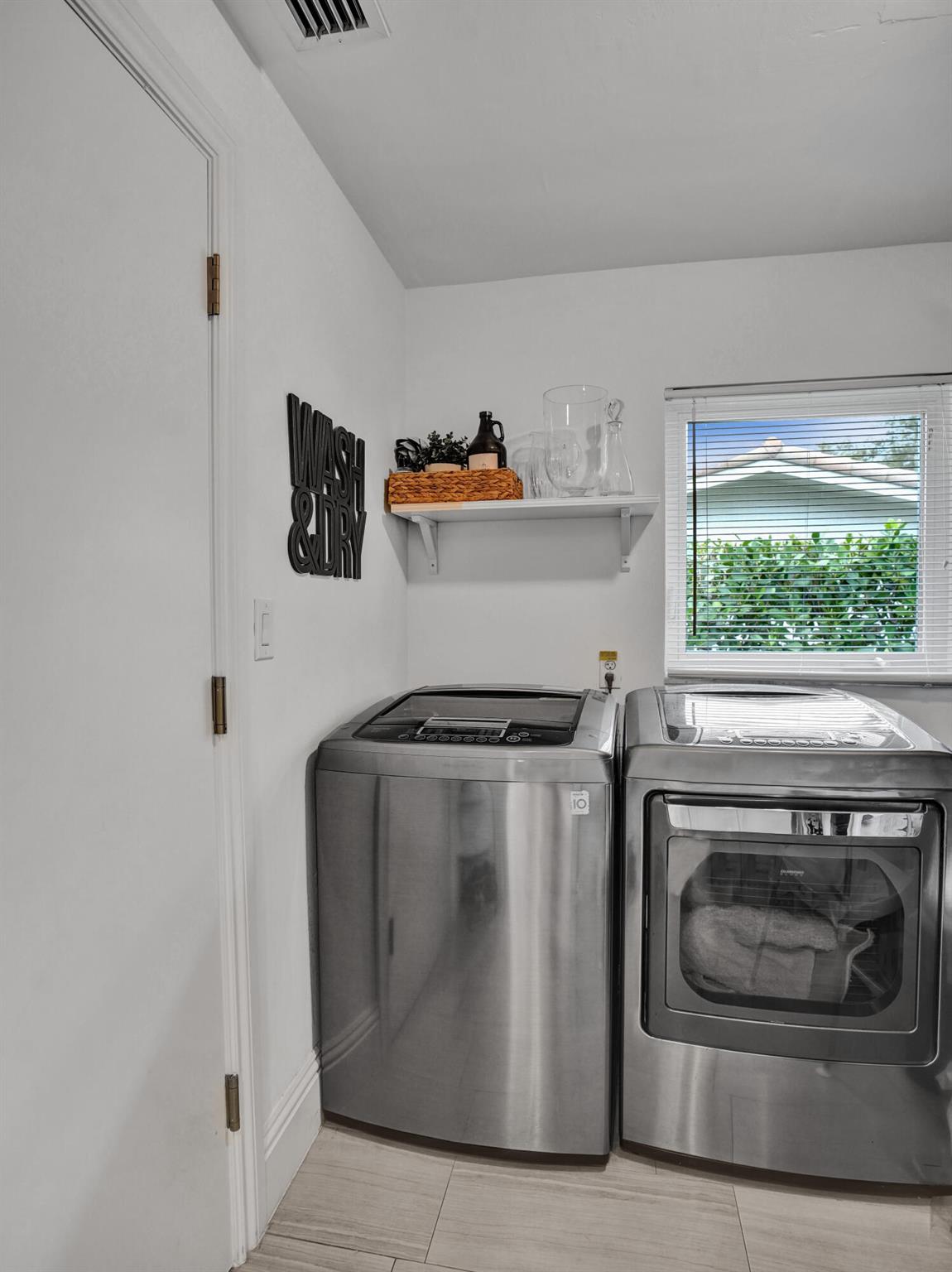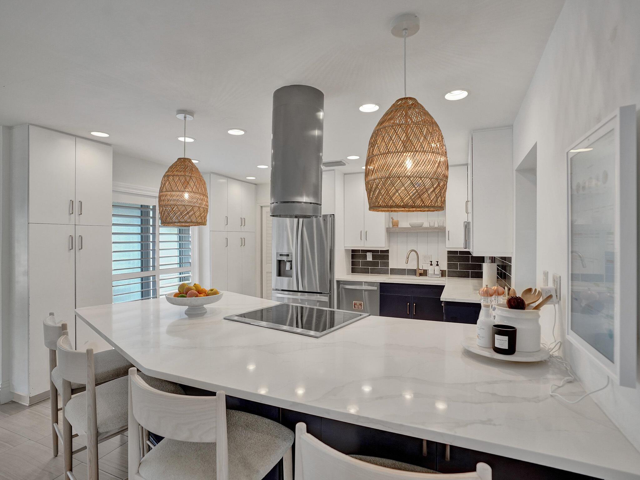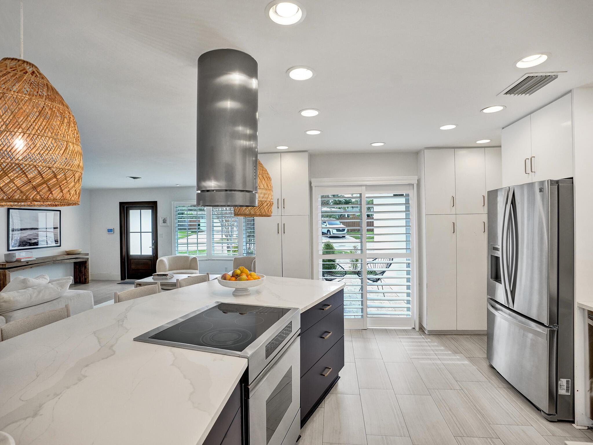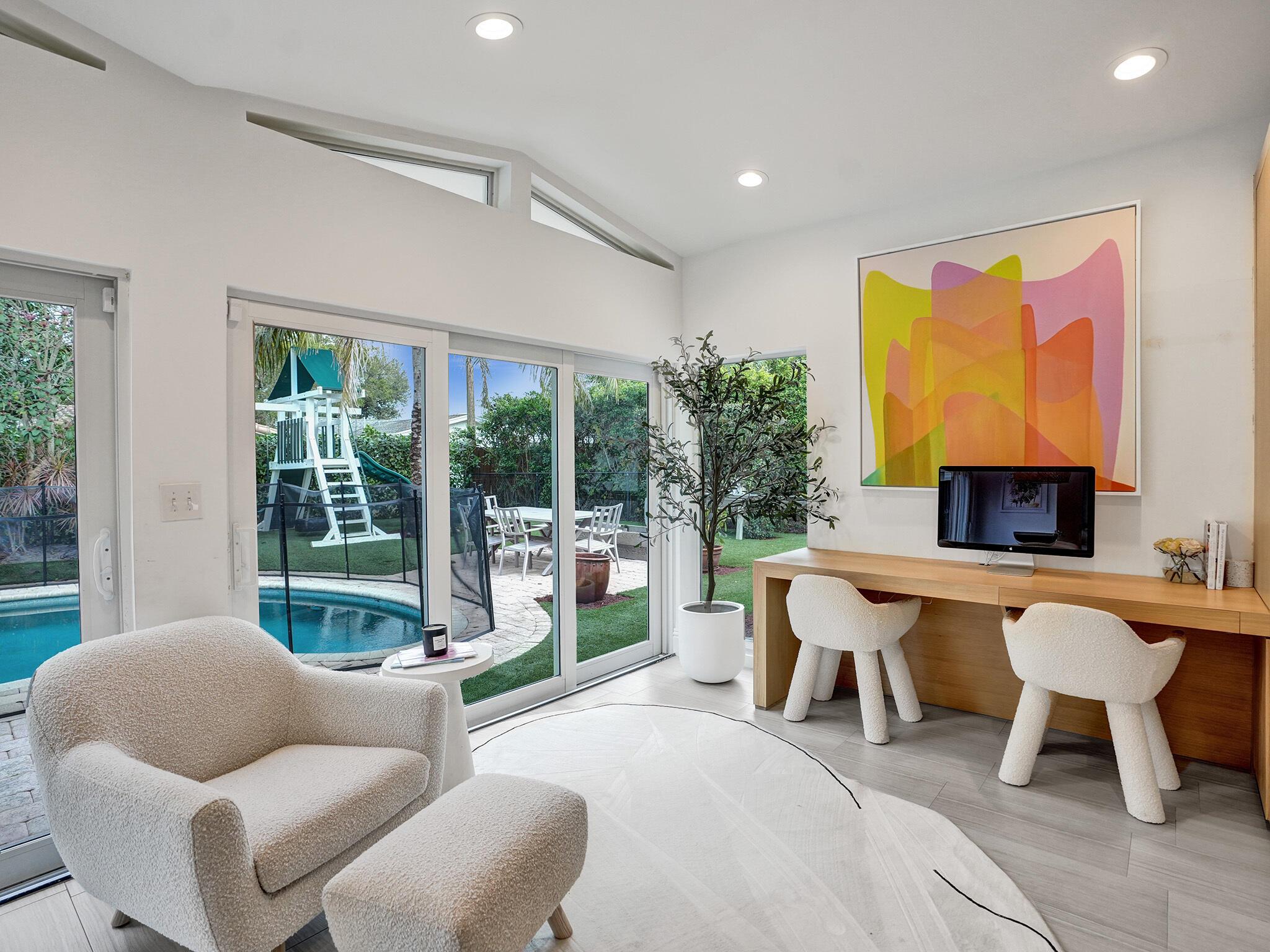 Step inside this oasis & notice the unique architectural design details. This home has been completely renovated from top (new tile roof 2022) to beautiful tile floors throughout, 3 full baths, large bedrooms with custom closets, & beautiful office space with tons of storage. The open floor plan is multi-functional & the kitchen is the hub of the home. Interior laundry room w/storage, 1 car garage w/newly coated floor & storage solution to maximize space (currently used as gym). The new front door, freshly painted exterior, & paver/circular drive make this home inviting. All impact windows & doors, 2 a/c units, alarm system & fully fenced yard. Freeform pool w/self cleaner & removable child safety fence. Turf in back & side yard, auto sprinklers for adda(tm)l landscape & paver patios