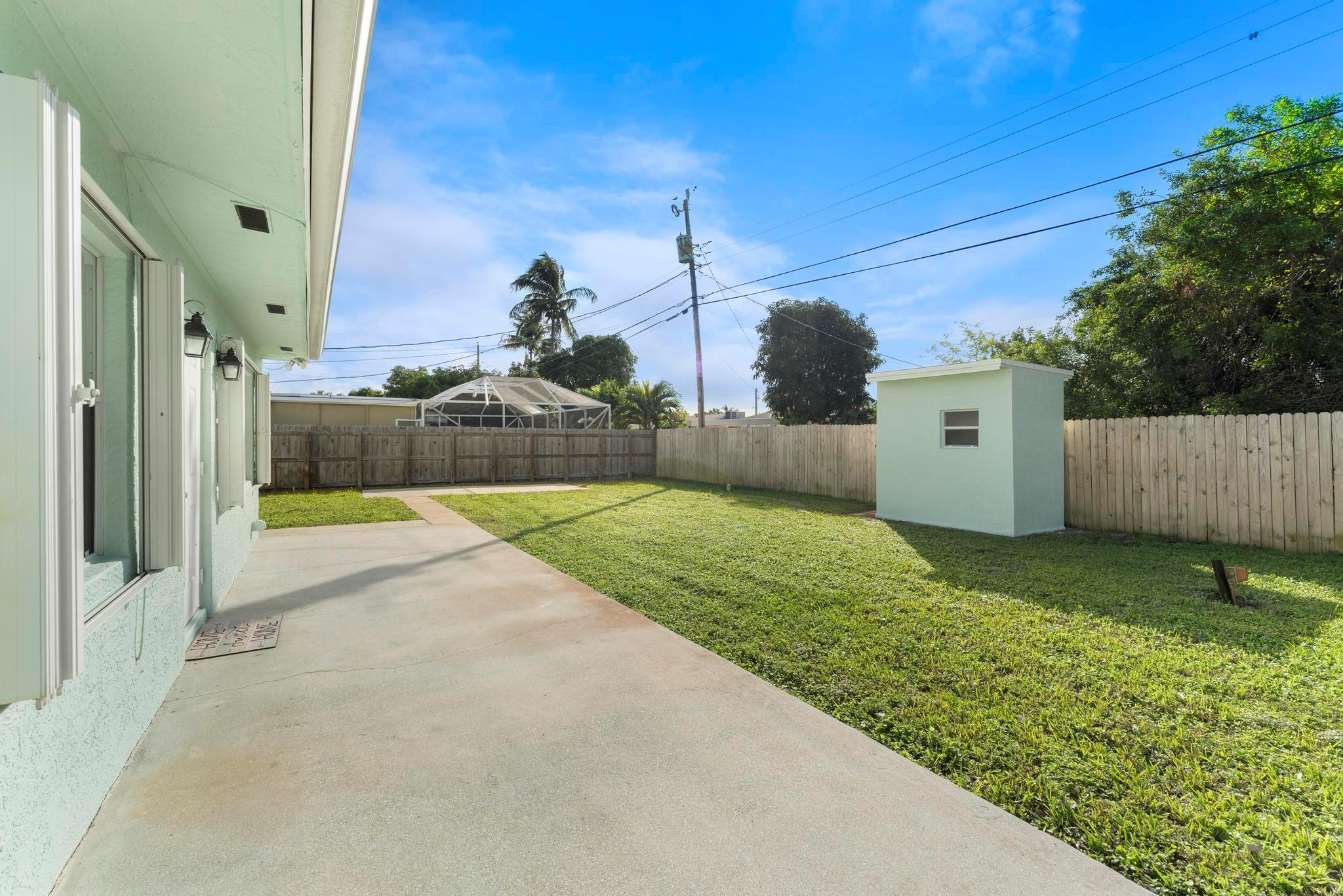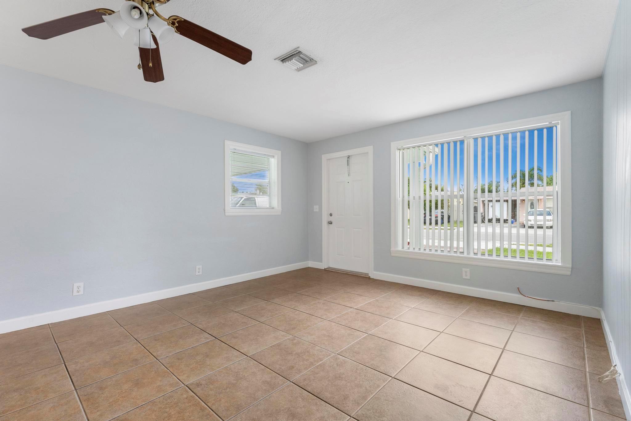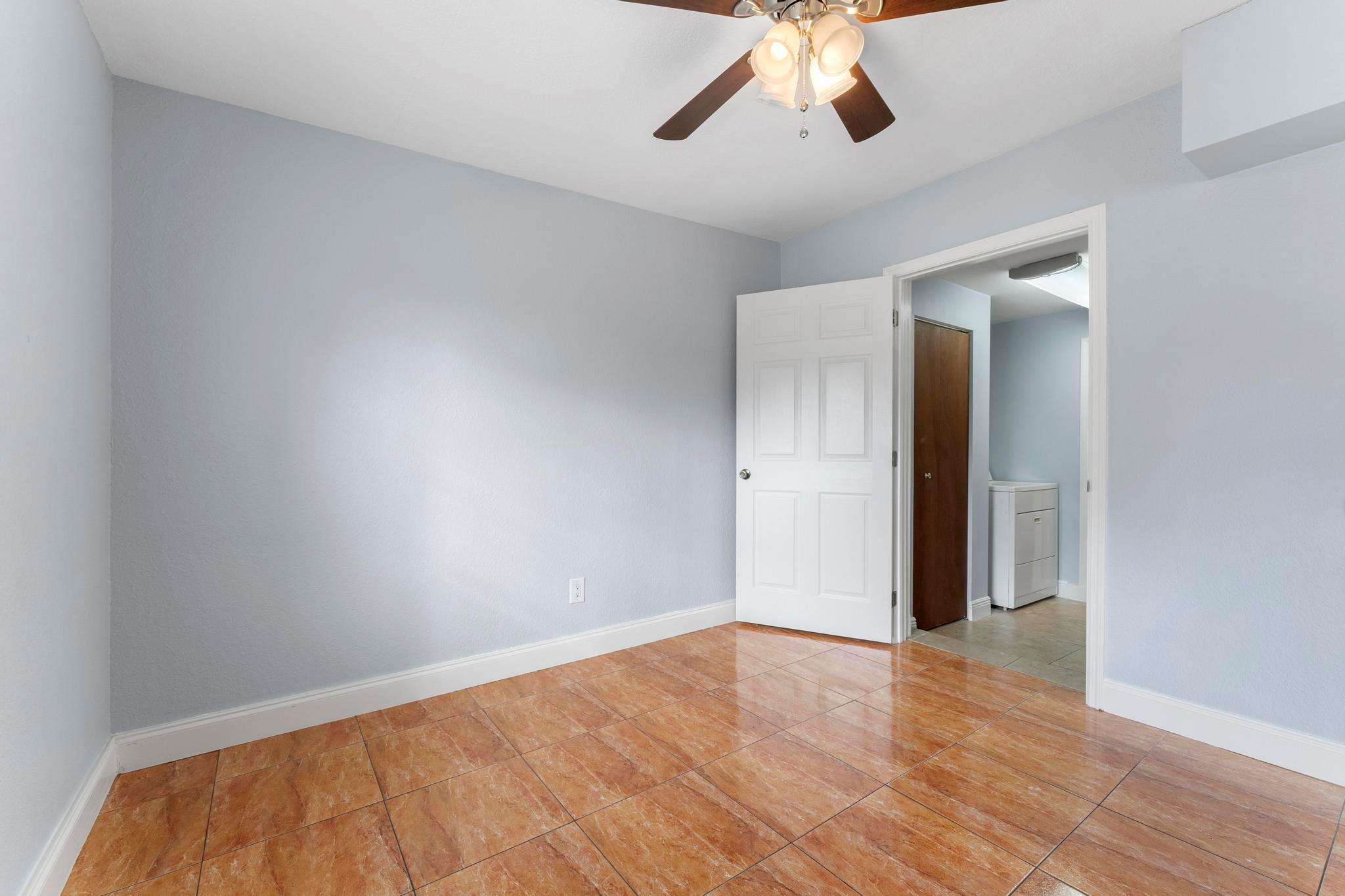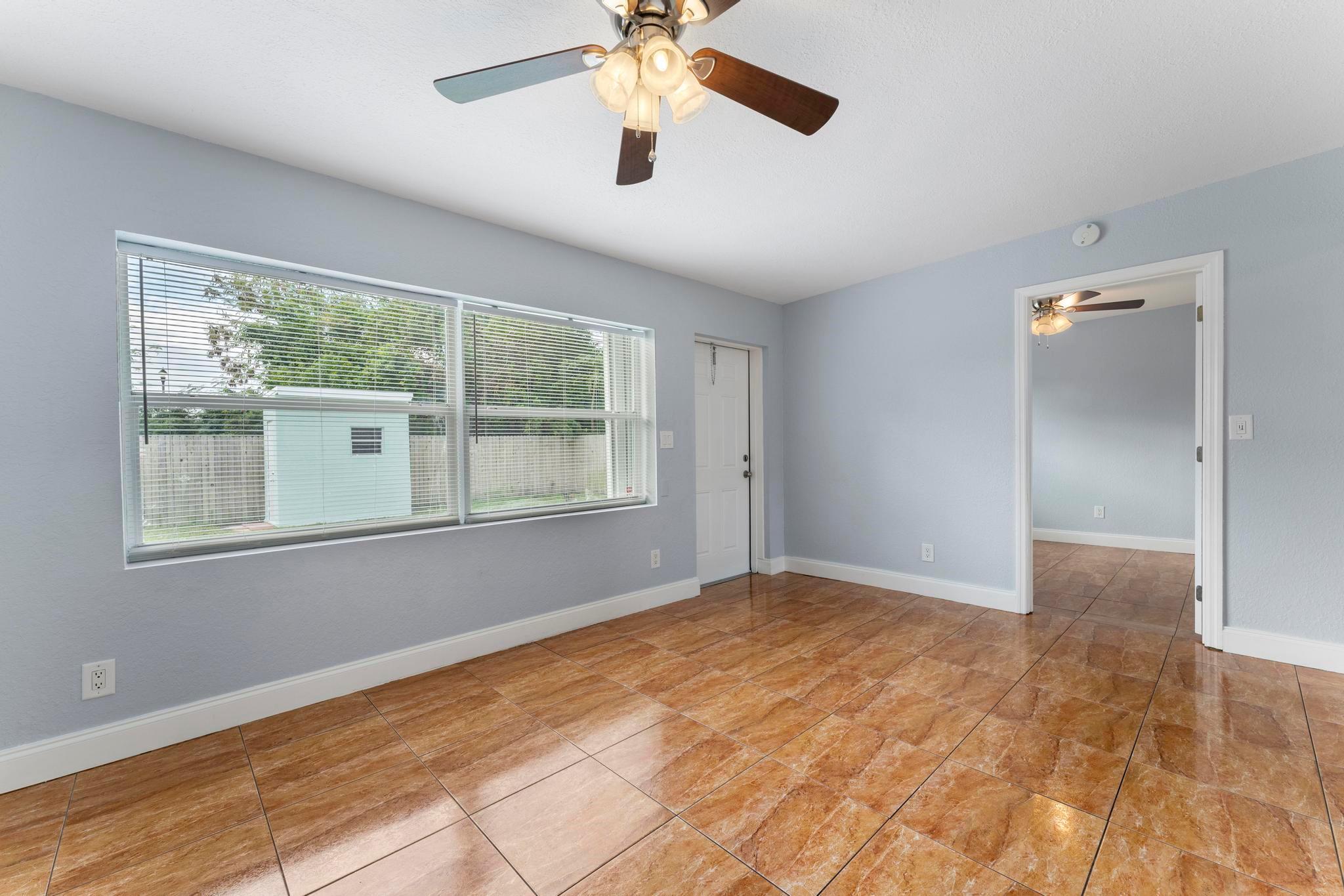 Step into this spacious 4-bedroom, 2-bathroom single-family home in the heart of West Palm Beach. The pavered driveway welcomes you to a move-in-ready haven. The split-bedroom floorplan ensures privacy, while two living areas offer versatility. Freshly painted interiors create a bright ambiance, and the kitchen, with a generous pantry, is both stylish and functional. The master bathroom is roomy, and the in-unit washer and dryer add convenience. Accordion shutters promise storm-ready security. Enjoy tile floors in the main areas and master bedroom, while the three additional bedrooms boast new carpeting. Step outside to the fenced backyard with a shed for extra storage. This home combines aesthetics with functionality, making it a perfect fit for your lifestyle. Schedule a viewing today.